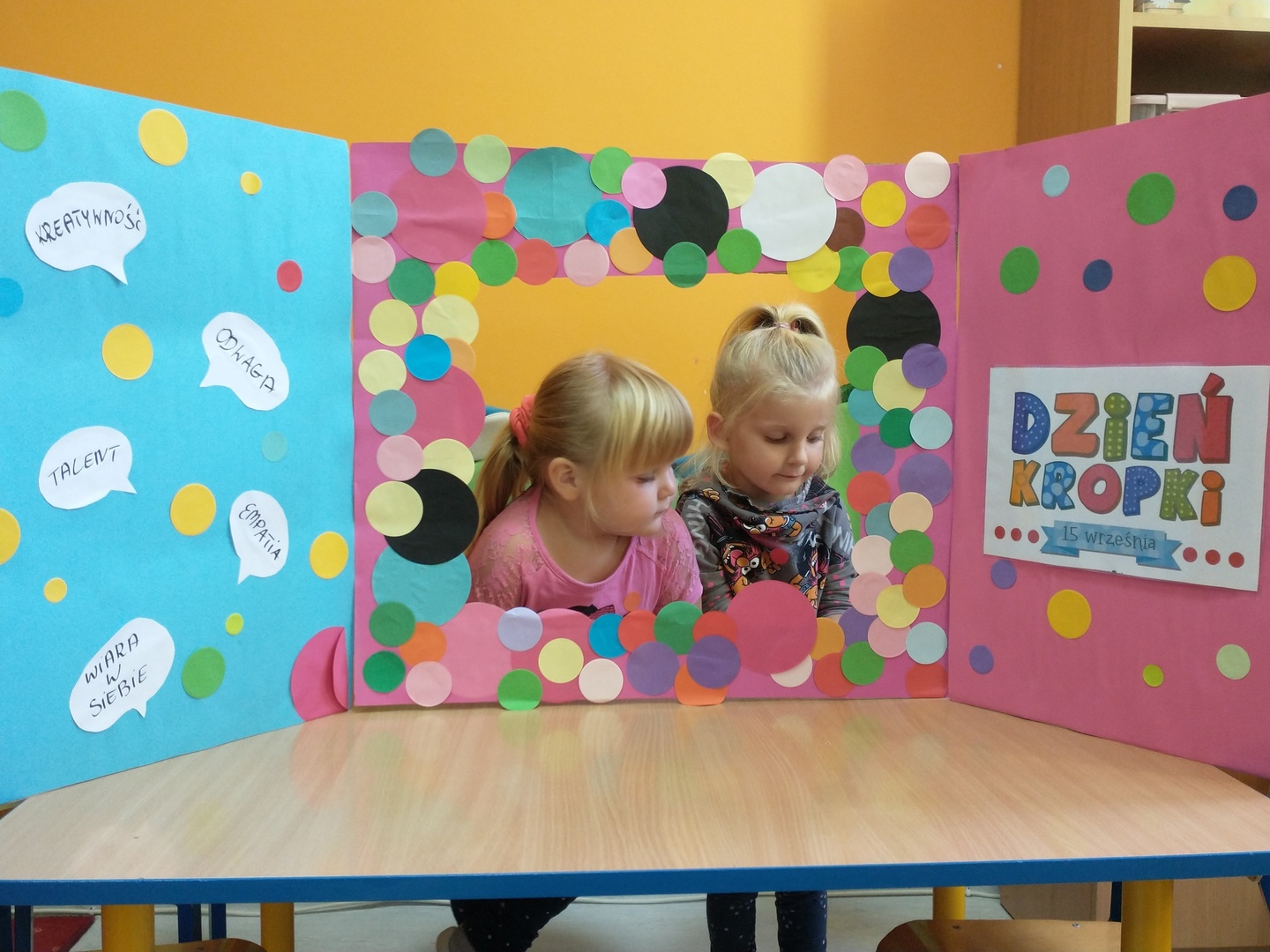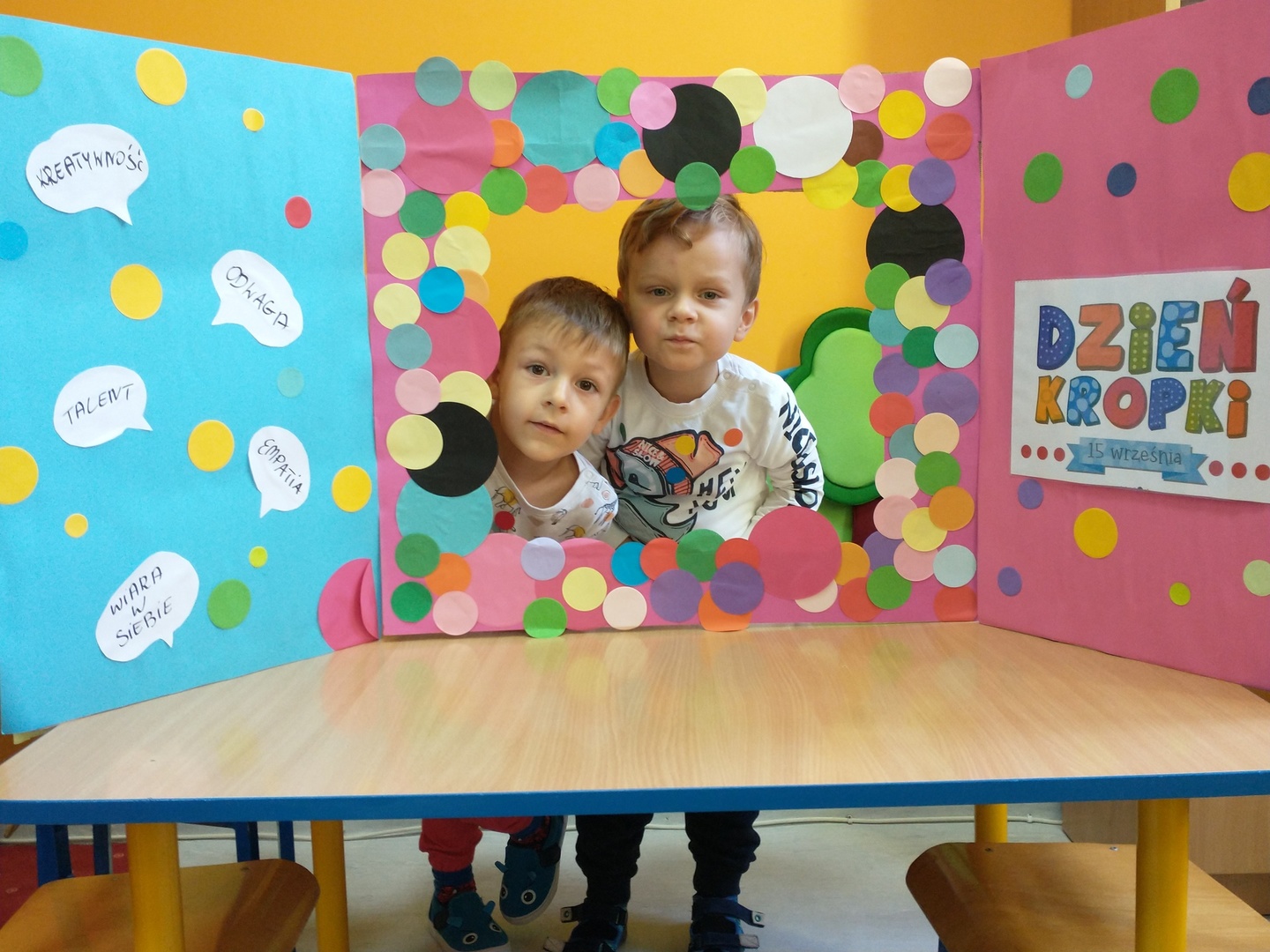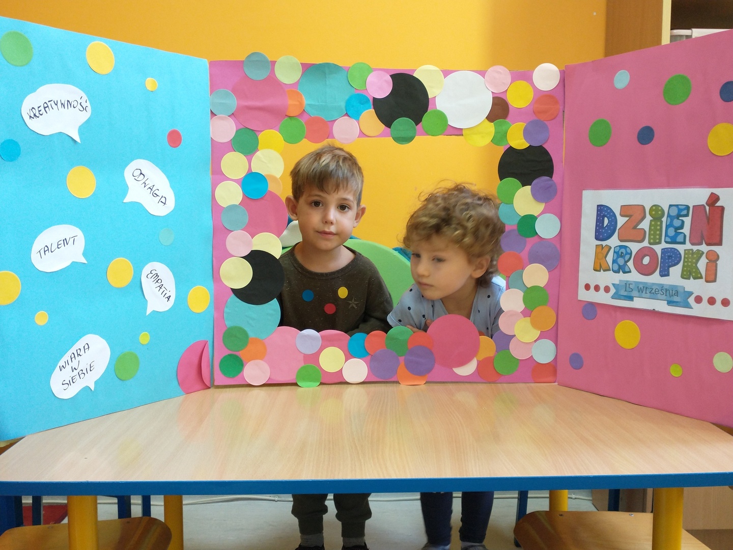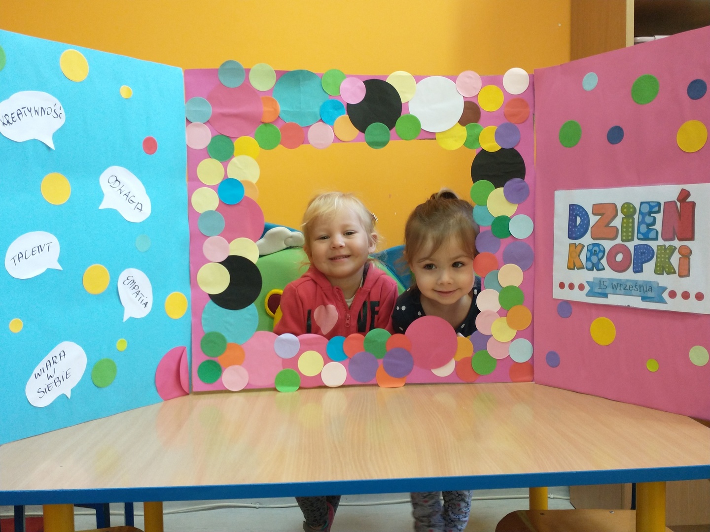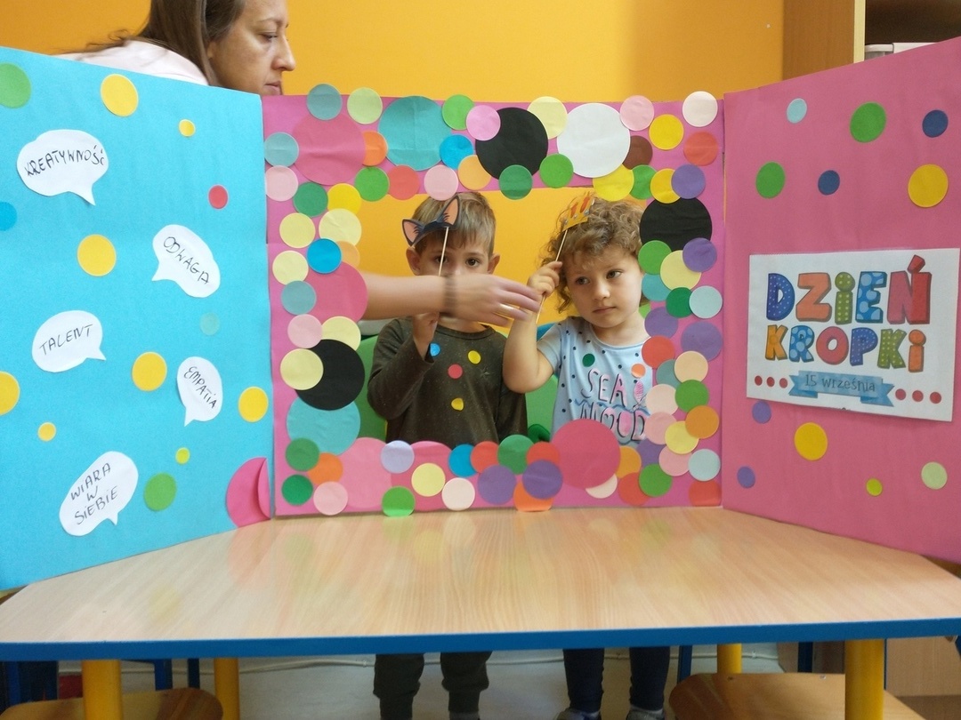 Dzieci z najmłodszej grupy w dniu dzisiejszym wzięły udział w obchodach Międzynarodowego Dnia Kropki, czyli święta kreatywności, odwagi i wiary we własne możliwości. Dzieci wzięły udział w kropkowych zajęciach, układały kropkowe puzzle, wysłuchały opowieści o Vashti, bohaterce książki P.H.Reynoldsa pt: "Kropka". Nasze Smerfy stworzyły galerię prac inspirowaną twórczością Vashti oraz wzięły udział w sesji zdjęciowej w kropkowej fotobudce 🙂