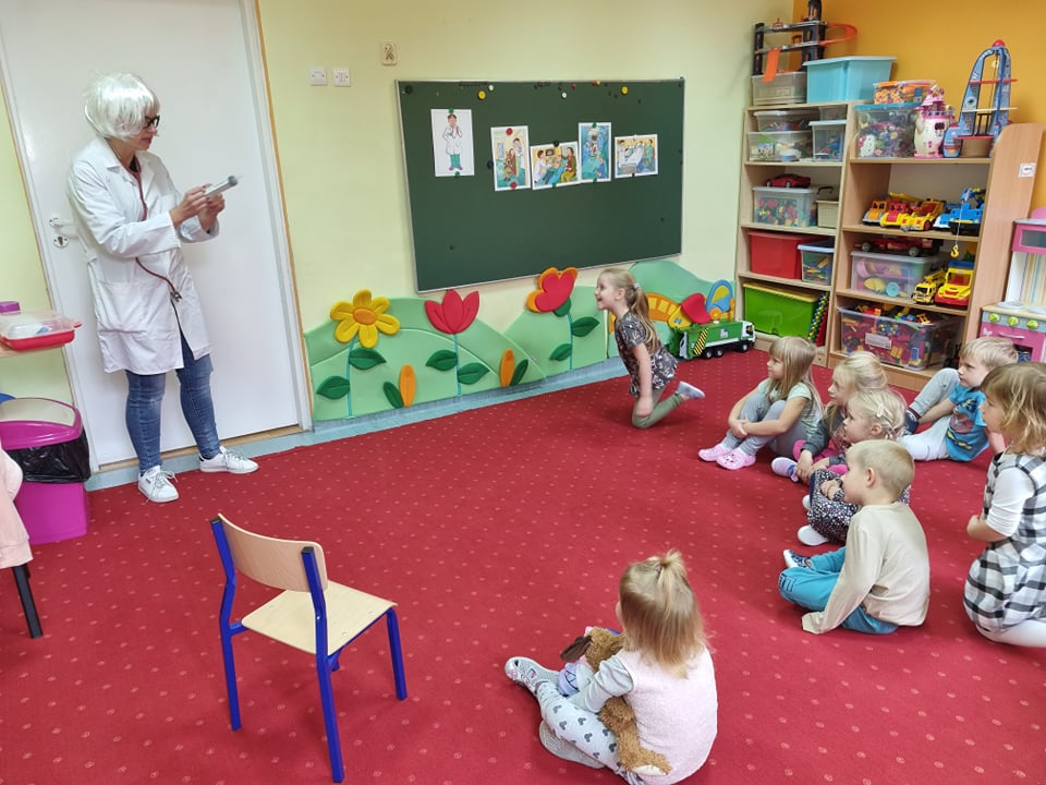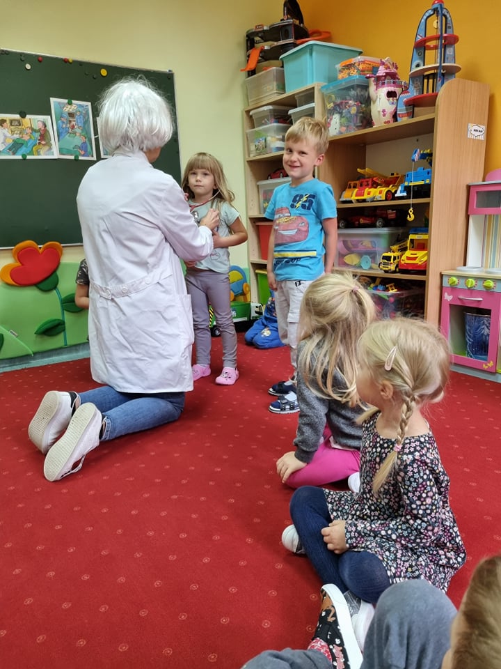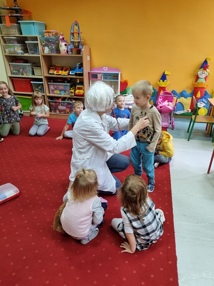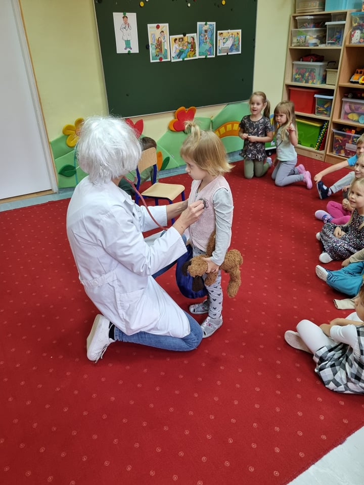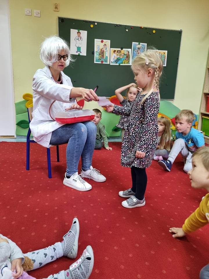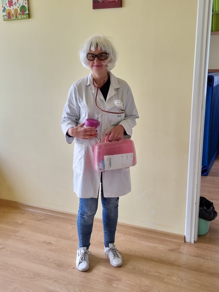 W tym tygodniu mówimy o zdrowiu, higienie i z tej okazji naszą grupę odwiedził specjalny gość - dr Genowefa Zdrówko. 😉