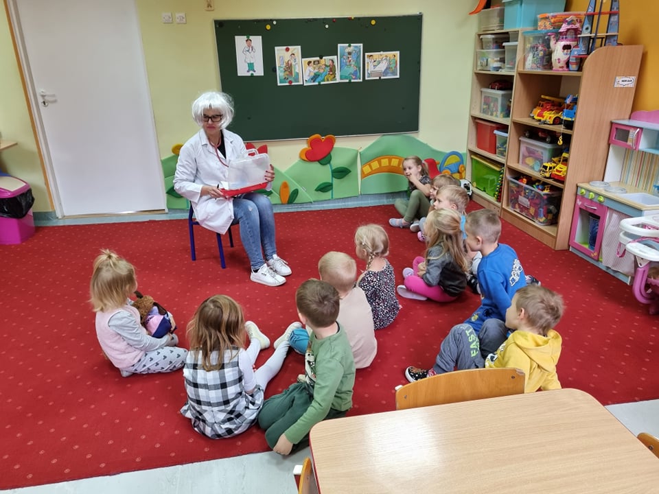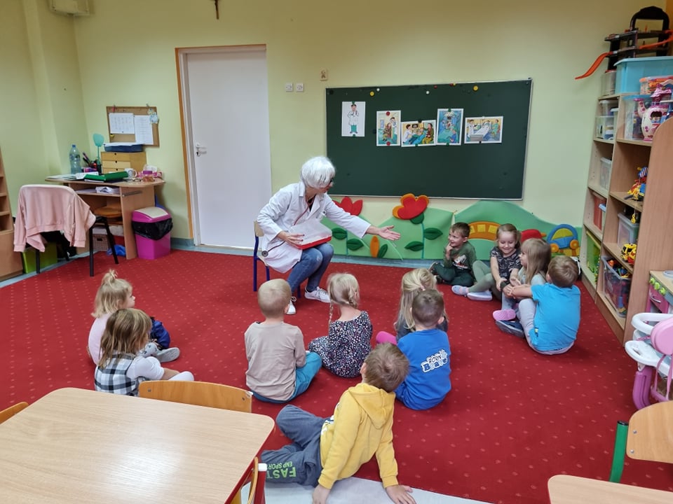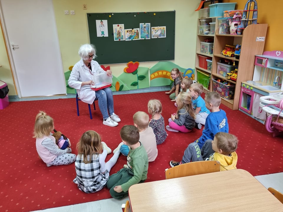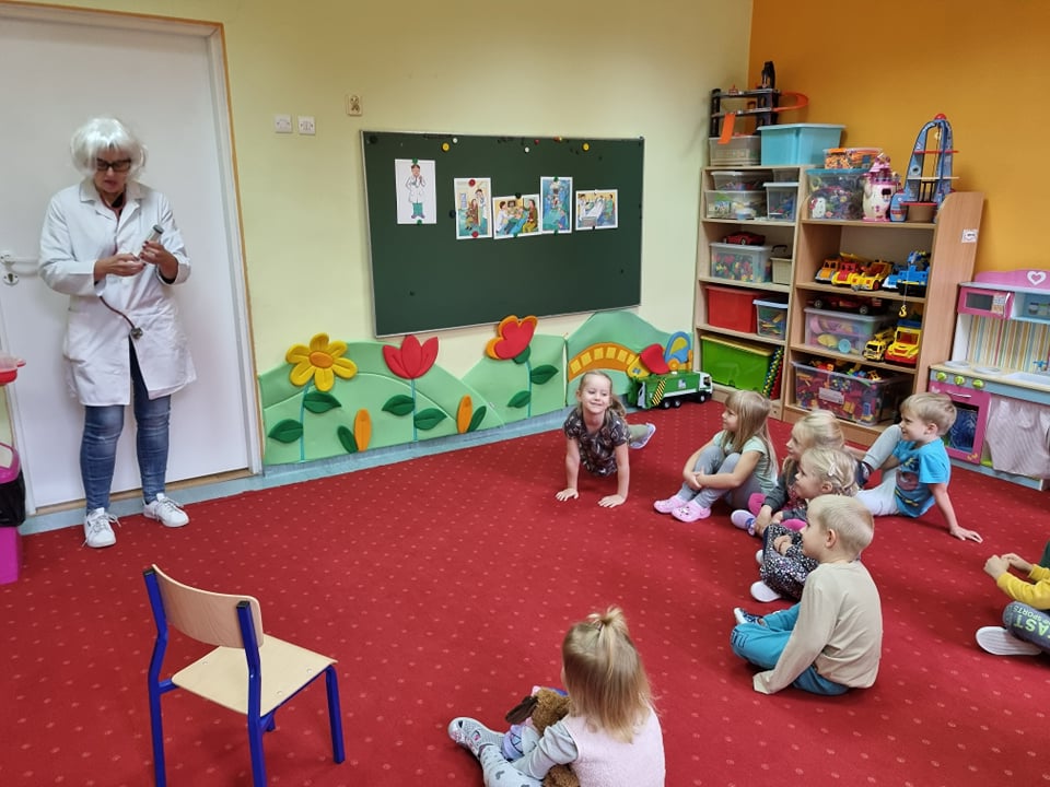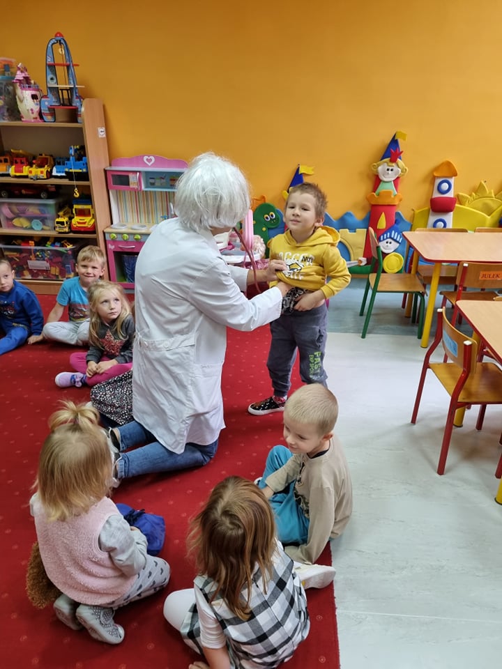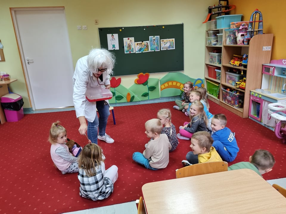 W tym tygodniu mówimy o zdrowiu, higienie i z tej okazji naszą grupę odwiedził specjalny gość - dr Genowefa Zdrówko. 😉