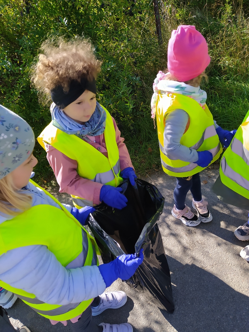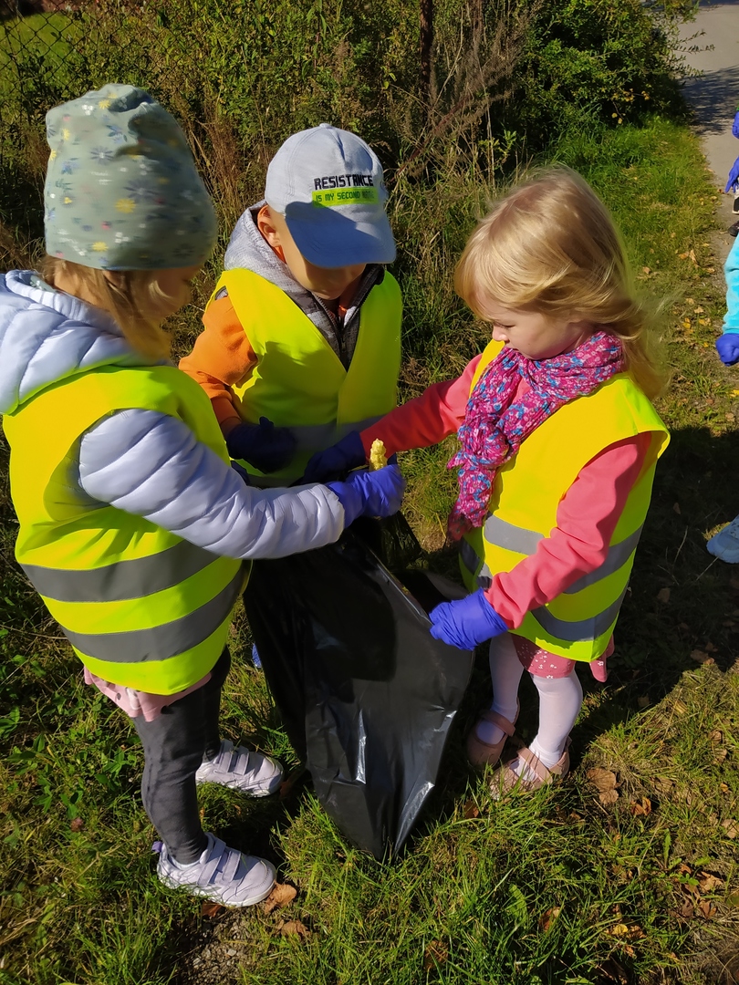 27.09.2021. W naszym przedszkolu co roku dołączamy się do największej polskiej akcji ekologicznej: Sprzątanie świata – Polska. Jest to świetna okazja, by pokazać najmłodszym, że Ziemia to nasz wspólny Dom. Nie mamy innego. I to my wszyscy musimy o niego zadbać! Dlatego uczmy dzieci jak segregować odpady, zachęcamy by oszczędzać wodę, uświadamiamy dzieciom, że nasze nawet drobne zachowania mają wpływ na przyrodę. Gdy przedszkolaki poszerzyły swoją wiedzę na temat poszanowania środowiska przyszedł czas na działania lokalne. Najpierw umieściliśmy wspólnie wykonany eko-plakat na bramie przedszkola, by zwracał uwagę każdego przechodnia i zachęcał do podejmowania działań proekologicznych. Potem wyposażeni w jednorazowe rękawiczki i worki udaliśmy się na poszukiwanie śmieci, które wiatr rozwiewa w okolicy. Okazało się, że nasza wyprawa to prawdziwe tropienie "skarbów", bo wcale nie było łatwo zapełnić worki, z którymi spacerowaliśmy nieopodal "Akwarelki". Ale to jest bardzo dobra wiadomość dla naszej planety, bo gdy ona jest mniej zaśmiecona to i my wszyscy jesteśmy zdrowsi. Pozdrawiamy przyjaciół naszej matki Ziemi!