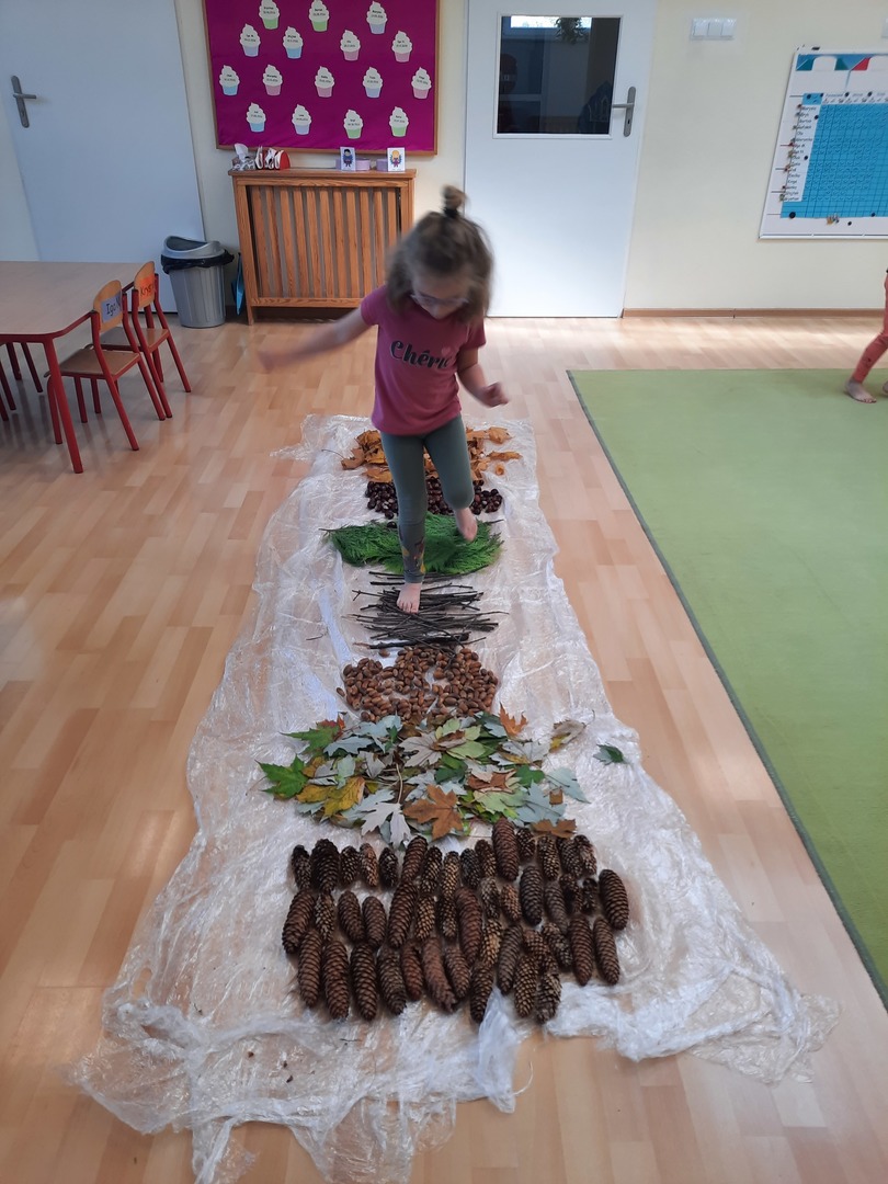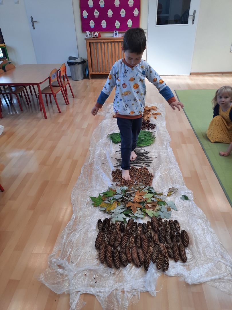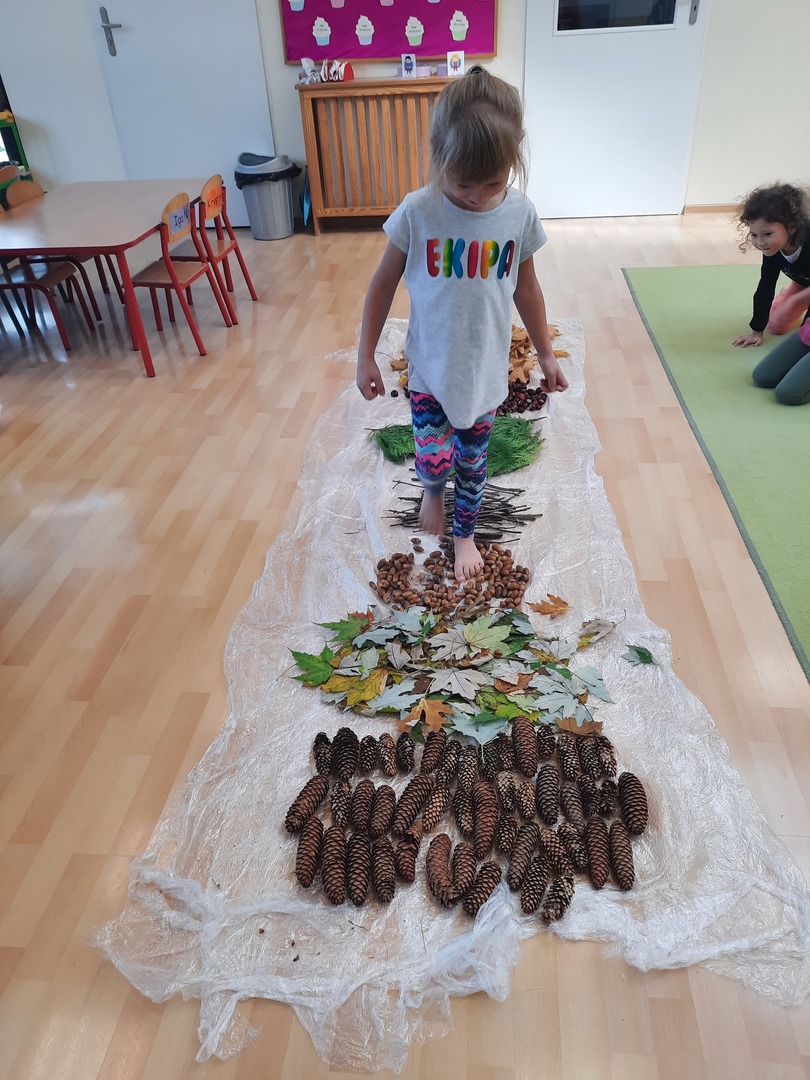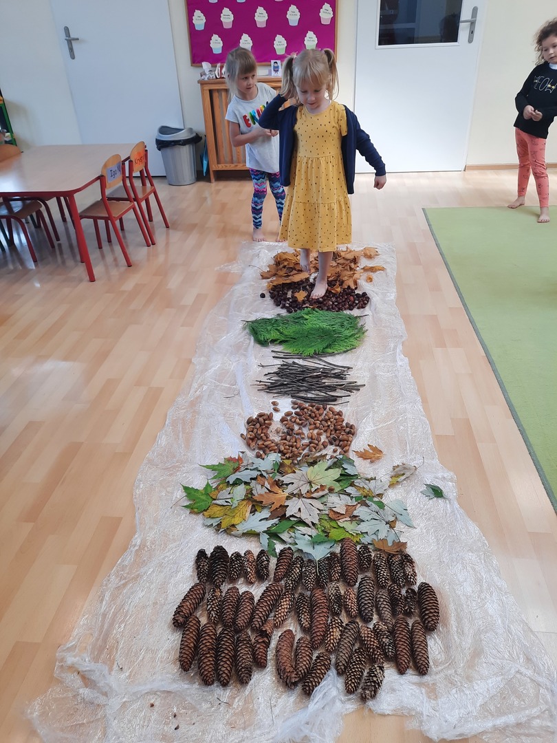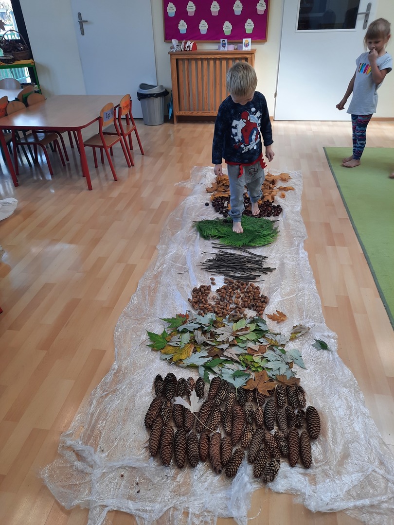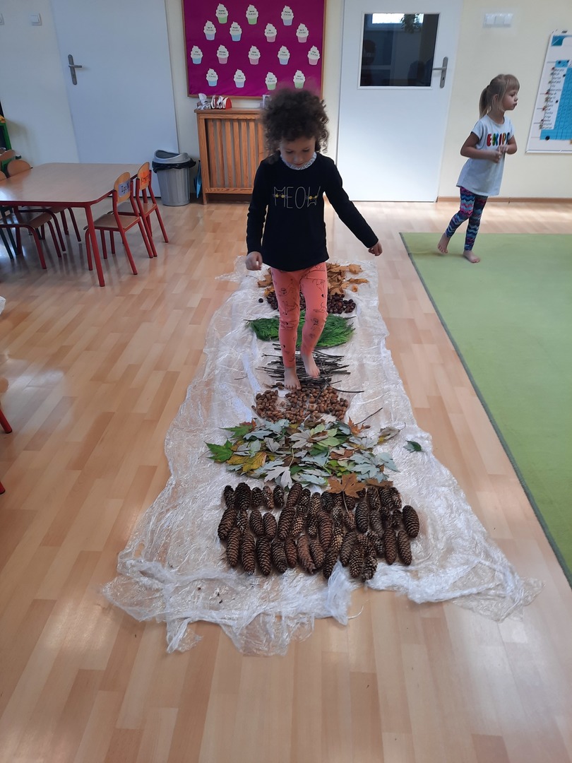 08.10.21. Za oknami Polska złota jesień wiec warto było skorzystać z darów jesieni i umilić czas przedszkolaków. Dla dzieci korzystanie ze ścieżki sensorycznej stanowi zabawę, a jednocześnie jest to sposób na poprawę motoryki dużej, rozwój wyobraźni dotykowej oraz poprawę równowagi i koordynacji ruchowej i stymulację receptorów nerwowych w stopach. Zabawa była wspaniała!