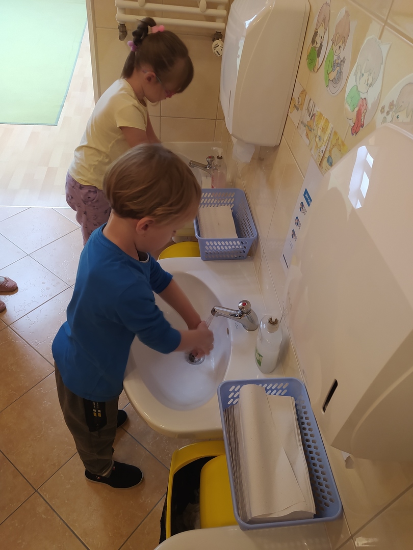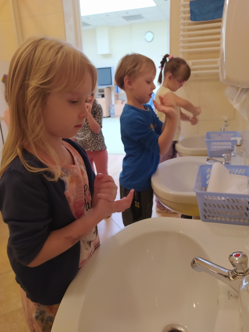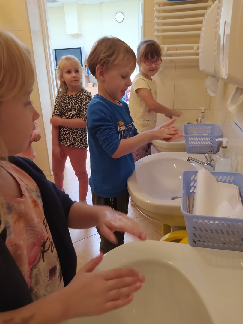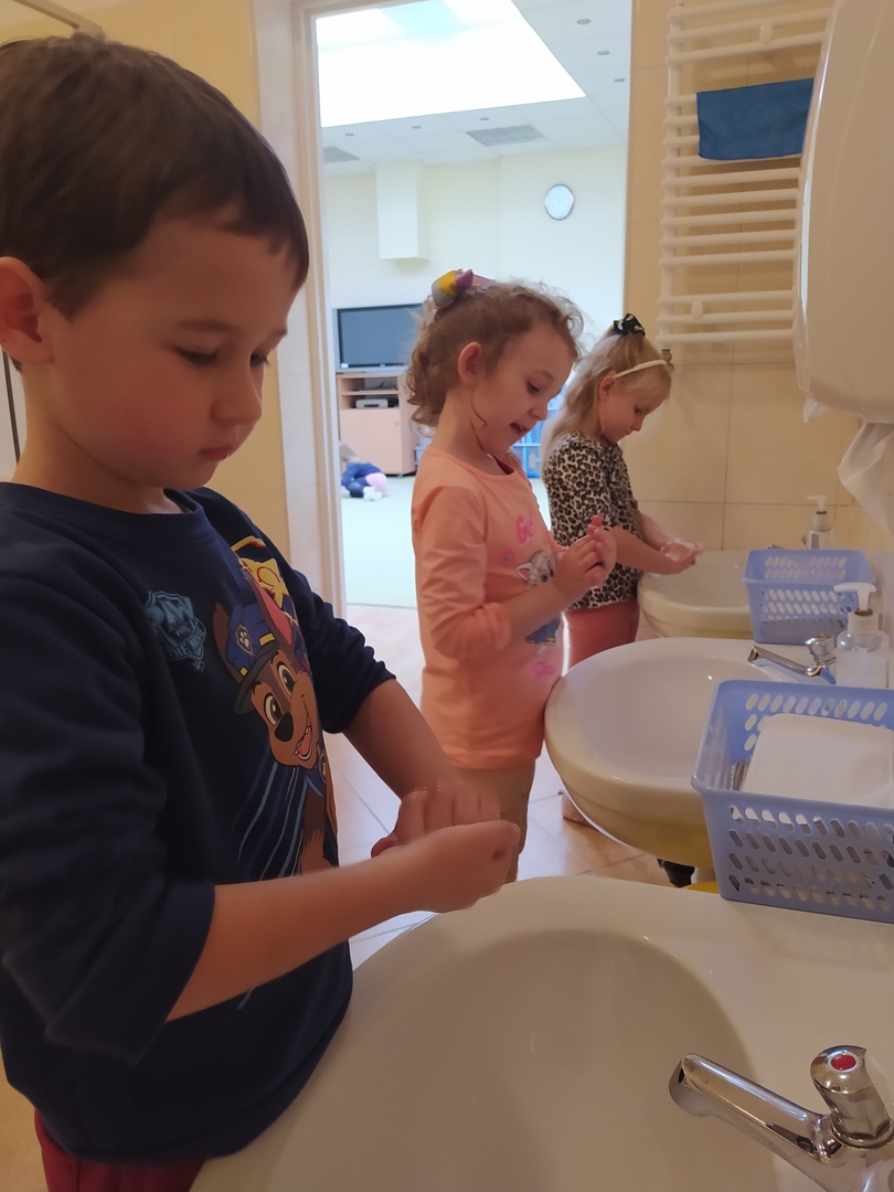 15 października to Światowy Dzień Mycia Rąk. Wydarzenie to zostało zainicjowane w 2008 roku przez UNICEF jako globalna akcja edukacyjna mająca na celu uświadomienie społeczeństwu, jak duże znaczenie dla zdrowia i życia ma mycie rąk, które może uchronić przed zakażeniem wieloma chorobami. Jak podaje UNICEF, co roku 3,5 miliona dzieci do piątego r. ż. umiera z powodu powikłań wynikających z niewłaściwej higieny rąk. Dlatego nasze przedszkole organizuje akcje edukacyjne dla swoich wychowanków. Światowy Dzień Mycia Rąk dzieci z grupy Muminki wykorzystały, by poszerzyć zdobytą dotychczas wiedzę na temat higieny rąk. Nie obyło się bez doskonalenia techniki mycia dłoni w praktyce, a to dzieci bardzo lubią. Połączenie przyjemnego z pożytecznym tym razem wyjdzie wszystkim wyjątkowo na zdrowie!