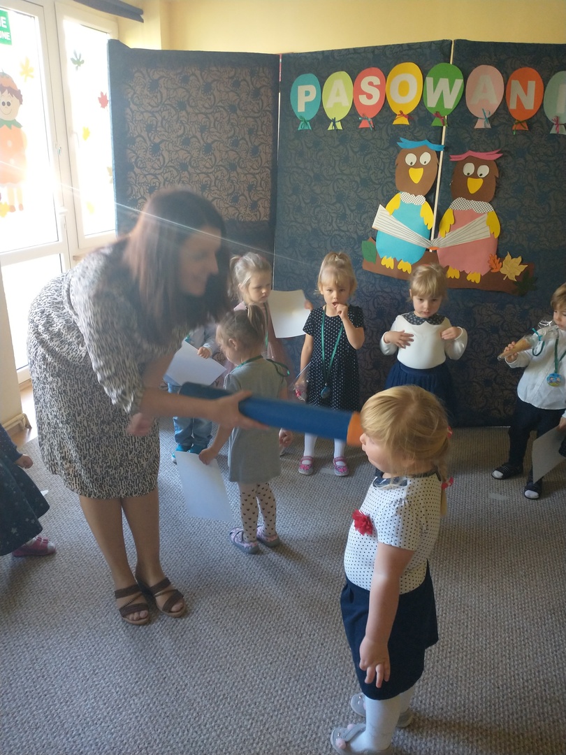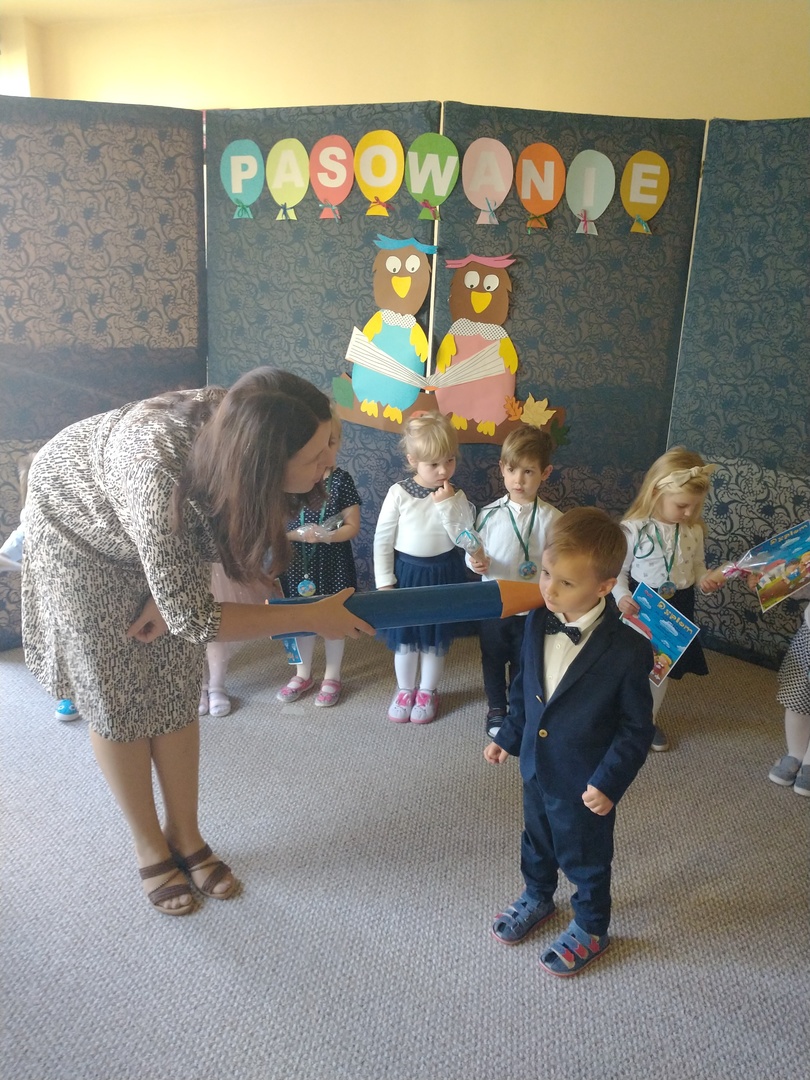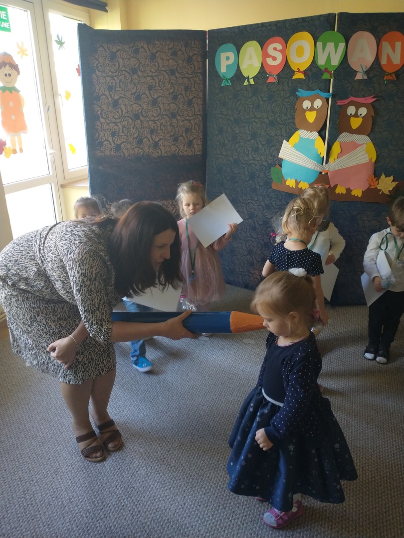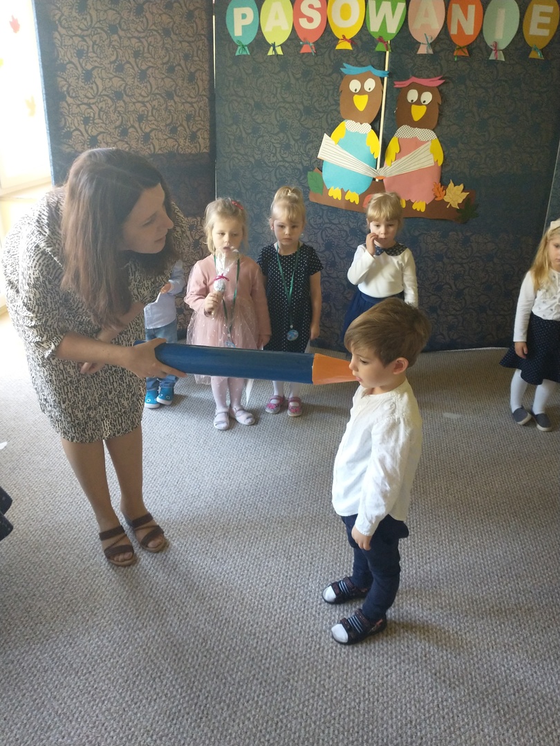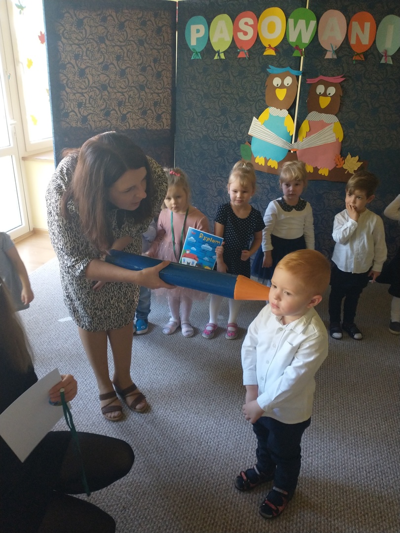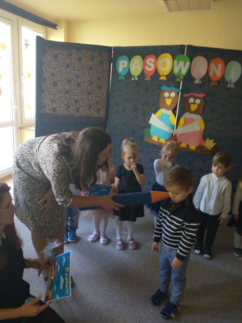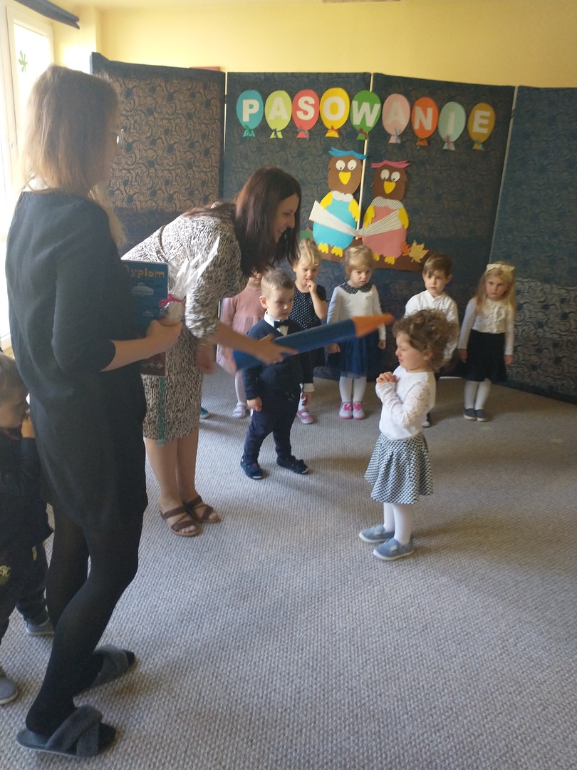 Miesiąc październik w ‘Akwarelce’ upłynął pod znakiem przygotowań do uroczystości Pasowania na Przedszkolaka. Dzieci z grupy Smerfy wraz z paniami uczyły się wierszy oraz piosenek, by dnia 29.10 zaprezentować swoje umiejętności podczas występu. Uroczystość rozpoczęła się od krótkiej części artystycznej, w której maluszki zaprezentowały swoje umiejętności – dając tym samym dowód, jak dużo już potrafią. Po części artystycznej, dzieci złożyły ślubowanie, w którym obiecały: zgodnie bawić się w przedszkolu, przychodzić każdego dnia z uśmiechem, słuchać pani, pomagać kolegom oraz być dzielnym przedszkolakiem. Następnie dokonało się uroczyste pasowanie każdego dziecka na przedszkolaka. Na pamiątkę tego ważnego wydarzenia każdy przedszkolak otrzymał dyplom pasowania, medal oraz słodki upominek. Po części oficjalnej dzieci wraz z paniami udały się do swojej sali gdzie odbyły się zabawy przy muzyce i bańkach mydlanych.