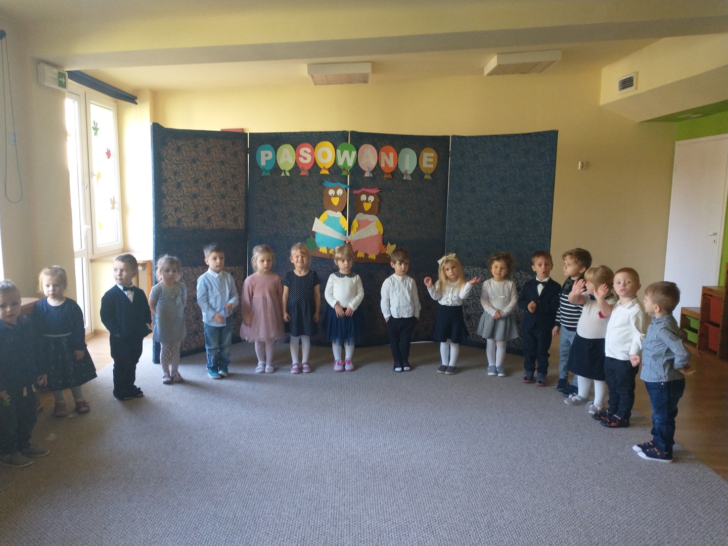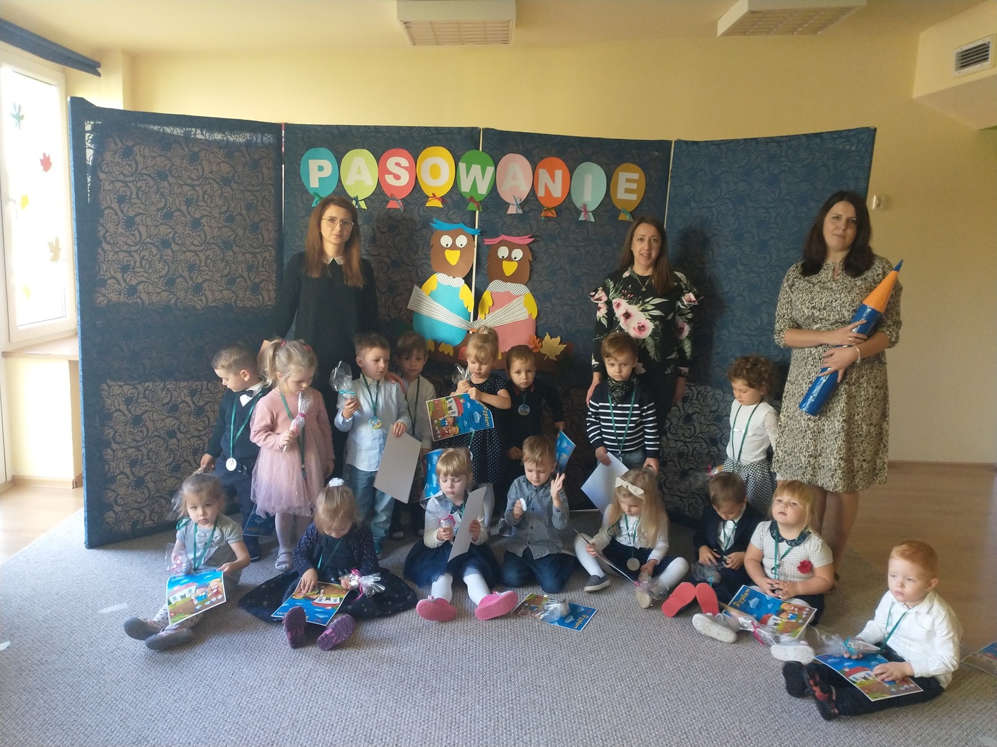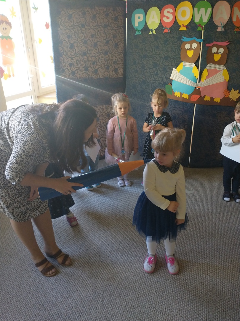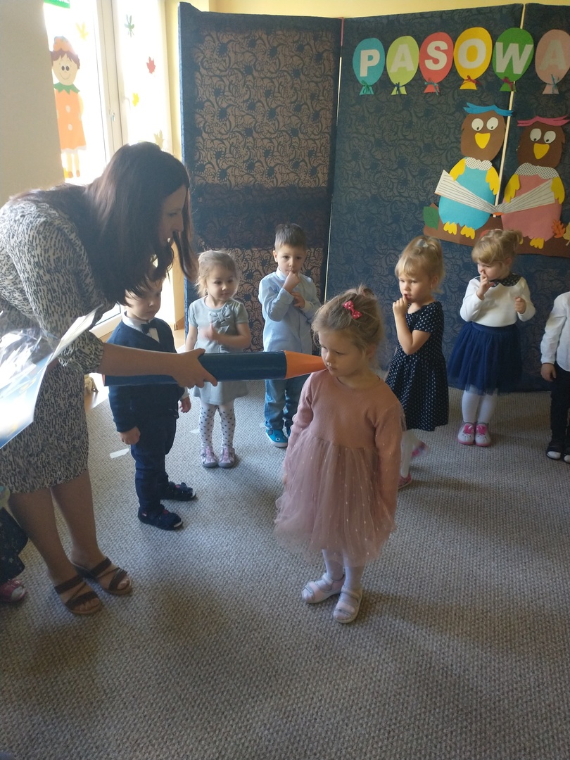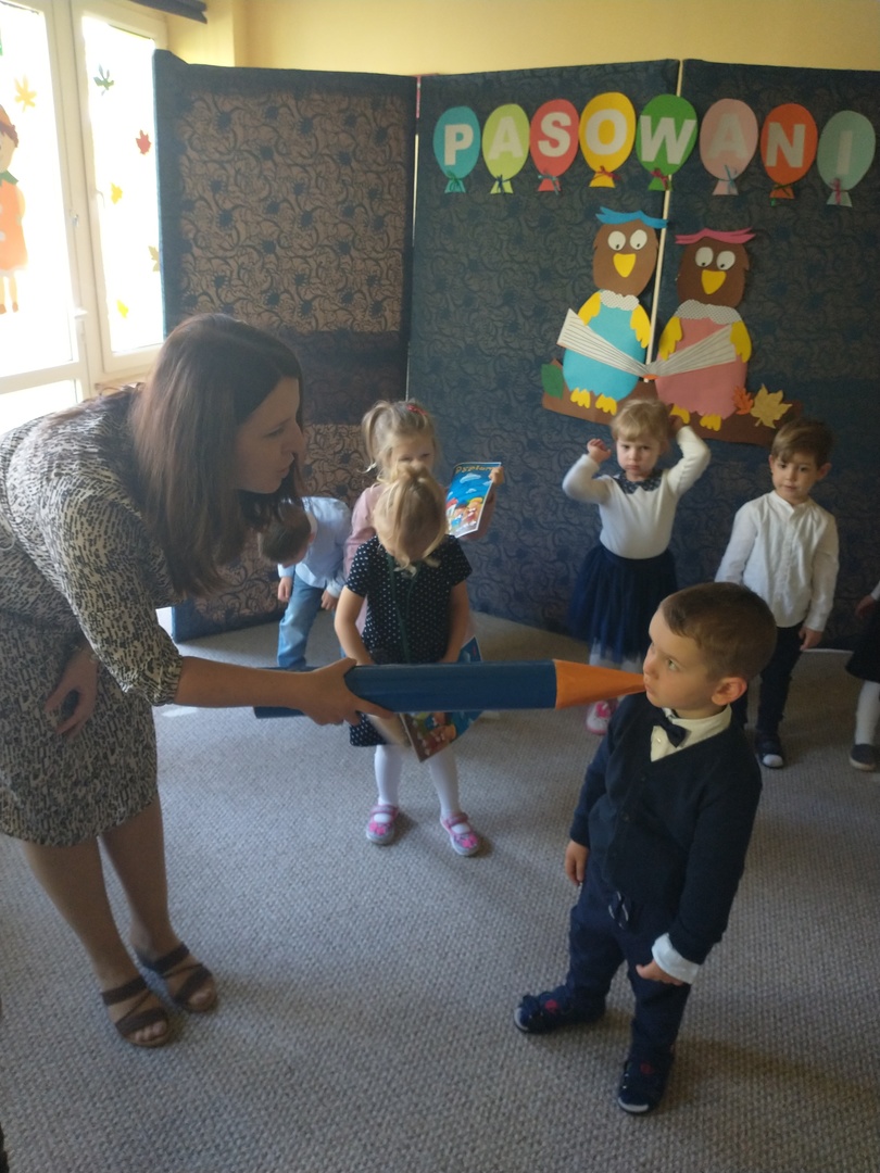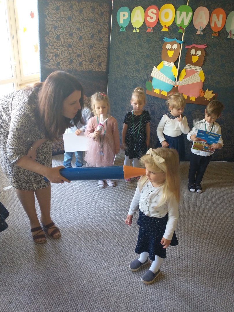 Miesiąc październik w ‘Akwarelce’ upłynął pod znakiem przygotowań do uroczystości Pasowania na Przedszkolaka. Dzieci z grupy Smerfy wraz z paniami uczyły się wierszy oraz piosenek, by dnia 29.10 zaprezentować swoje umiejętności podczas występu. Uroczystość rozpoczęła się od krótkiej części artystycznej, w której maluszki zaprezentowały swoje umiejętności – dając tym samym dowód, jak dużo już potrafią. Po części artystycznej, dzieci złożyły ślubowanie, w którym obiecały: zgodnie bawić się w przedszkolu, przychodzić każdego dnia z uśmiechem, słuchać pani, pomagać kolegom oraz być dzielnym przedszkolakiem. Następnie dokonało się uroczyste pasowanie każdego dziecka na przedszkolaka. Na pamiątkę tego ważnego wydarzenia każdy przedszkolak otrzymał dyplom pasowania, medal oraz słodki upominek. Po części oficjalnej dzieci wraz z paniami udały się do swojej sali gdzie odbyły się zabawy przy muzyce i bańkach mydlanych.