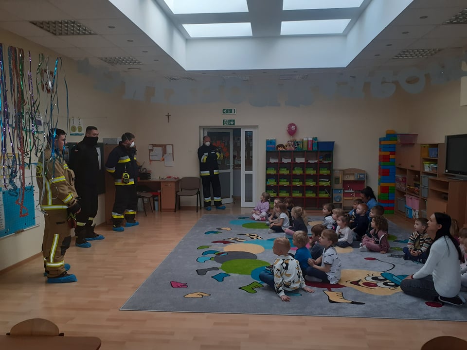 Całe wydarzenie było ogromną atrakcją dla naszych przedszkolaków i dostarczyło im wielu niezapomnianych wrażeń. Składamy wielkie podziękowania panom strażakom oraz organizatorce tego wydarzenia - mamie Emilki z grupy Muminków. Dziękujemy za owocną współpracę :)
