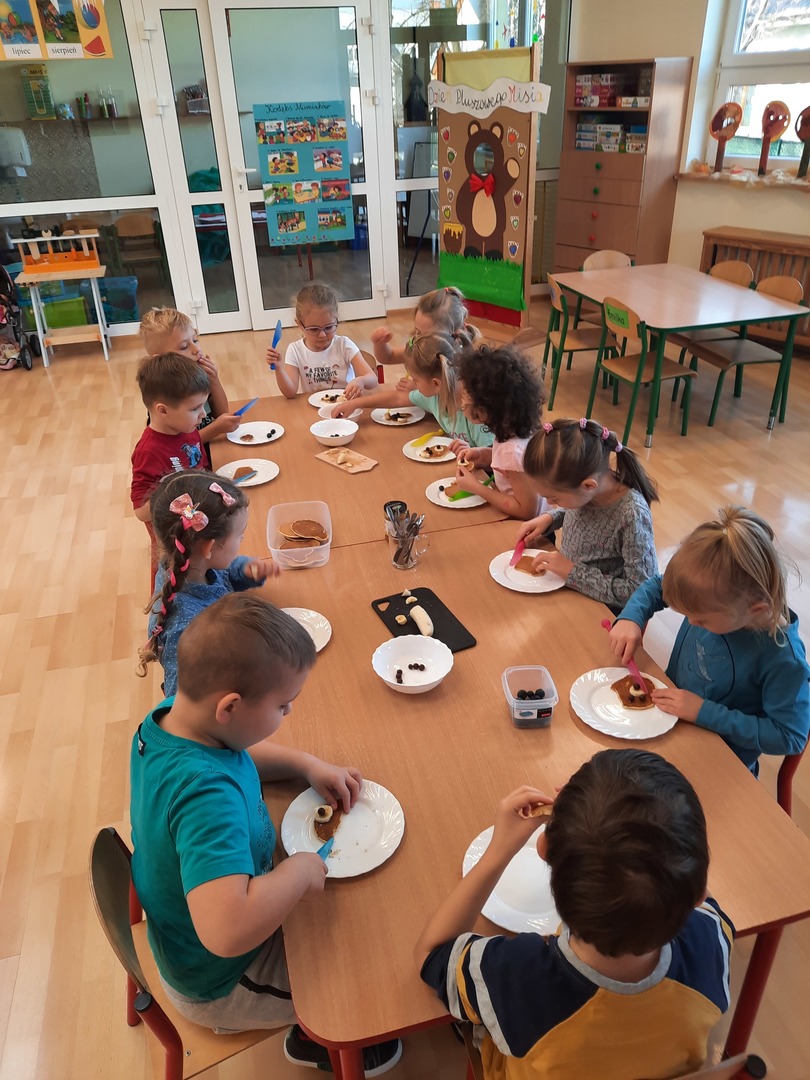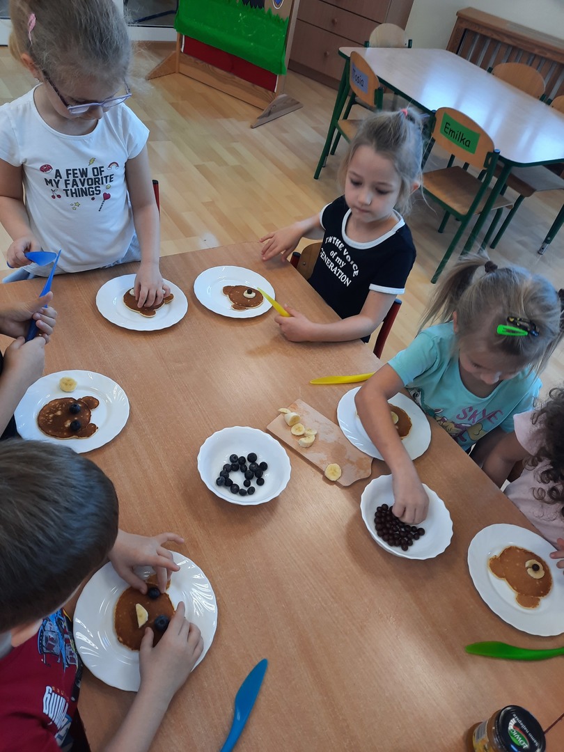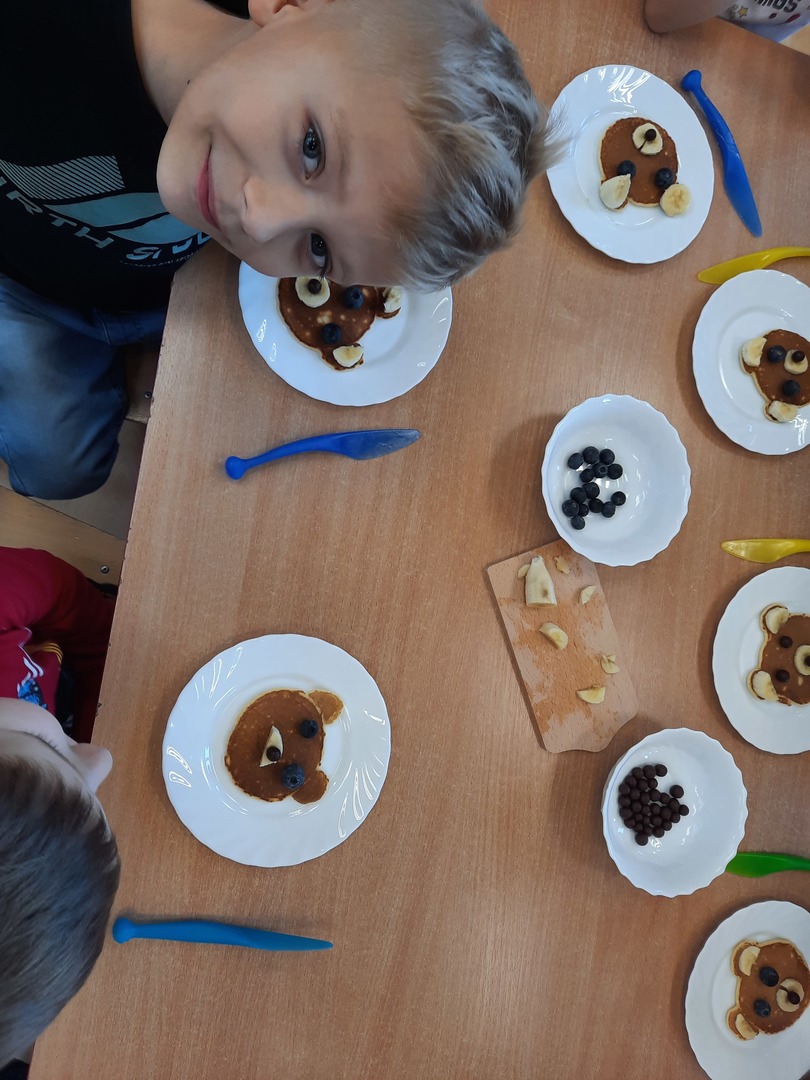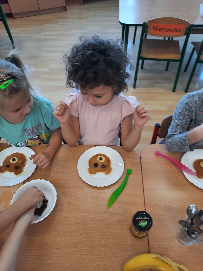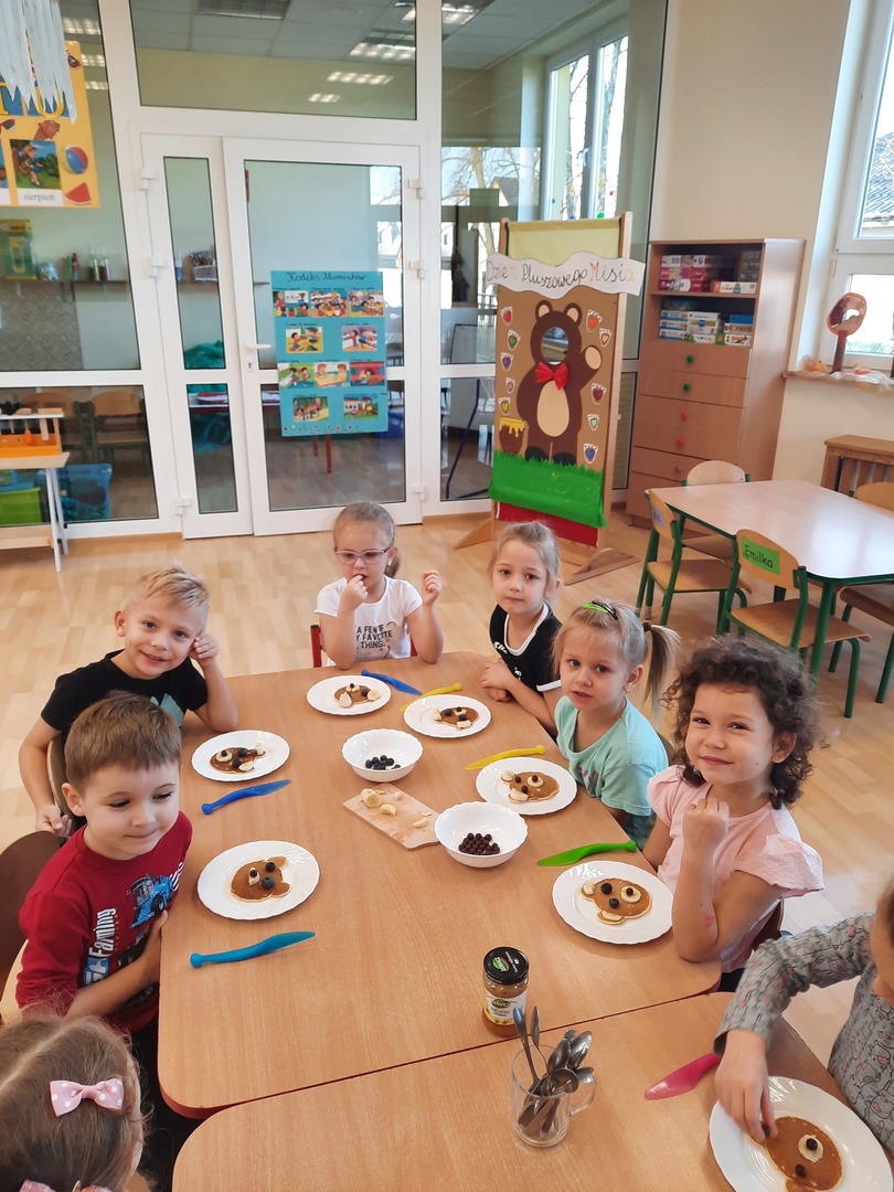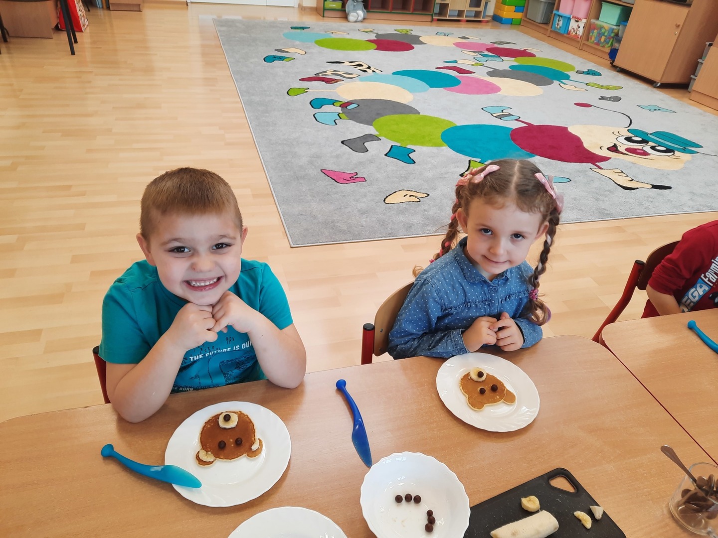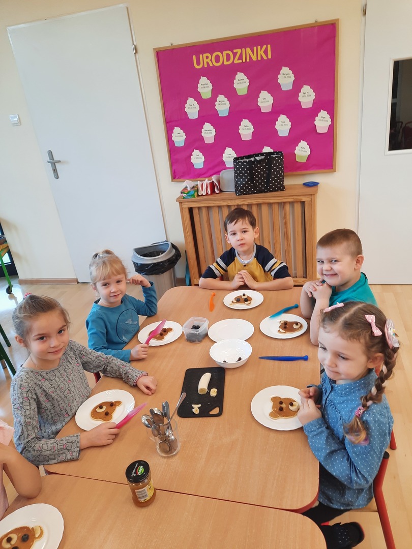Z samego rana, Muminki oglądały przyniesione do przedszkola pluszowe maskotki dzieląc się z innymi dziećmi wiadomościami od kogo dostały zabawkę, jak ma na imię ich miś i wszyscy wspólnie zatańczyli misiowy taniec . Podczas zajęć, poznały historię obchodzenia tego dnia, od czego wszystko się zaczęło. Było też dużo zabaw ruchowych, zagadek, samkowanie przysmaku misiów, ale najbardziej podobały im się misiowe pancake. Wszystkie dzieci lubią misie! A misie na talerzu, z dodatkiem pysznych, świeżych owoców i małych kawałeczków czekolady? No jasne! 🐻Ten dzień był pełen atrakcji, który sprawił dzieciom wiele radości. 🧸