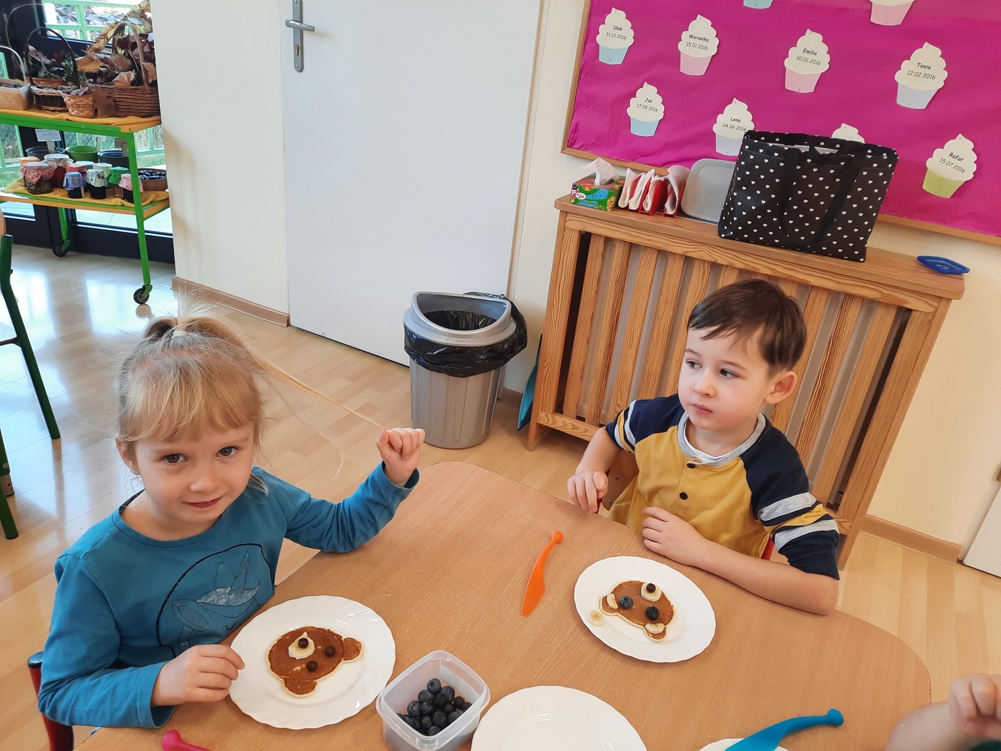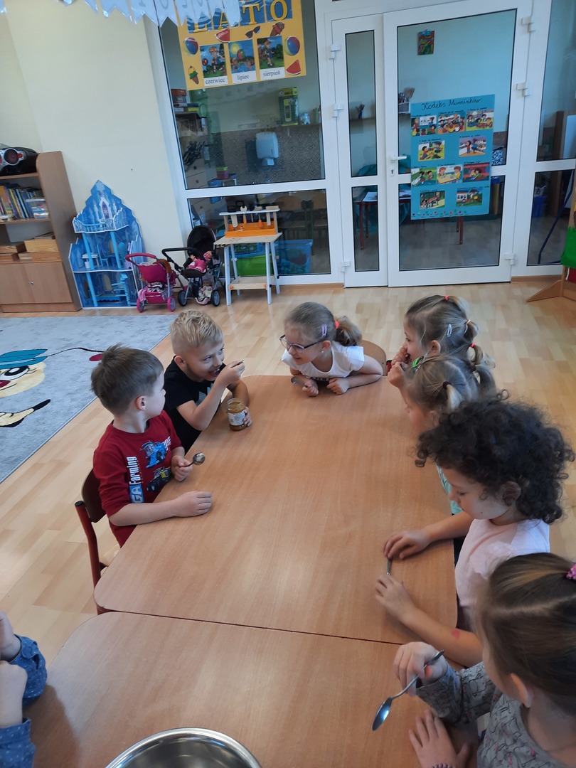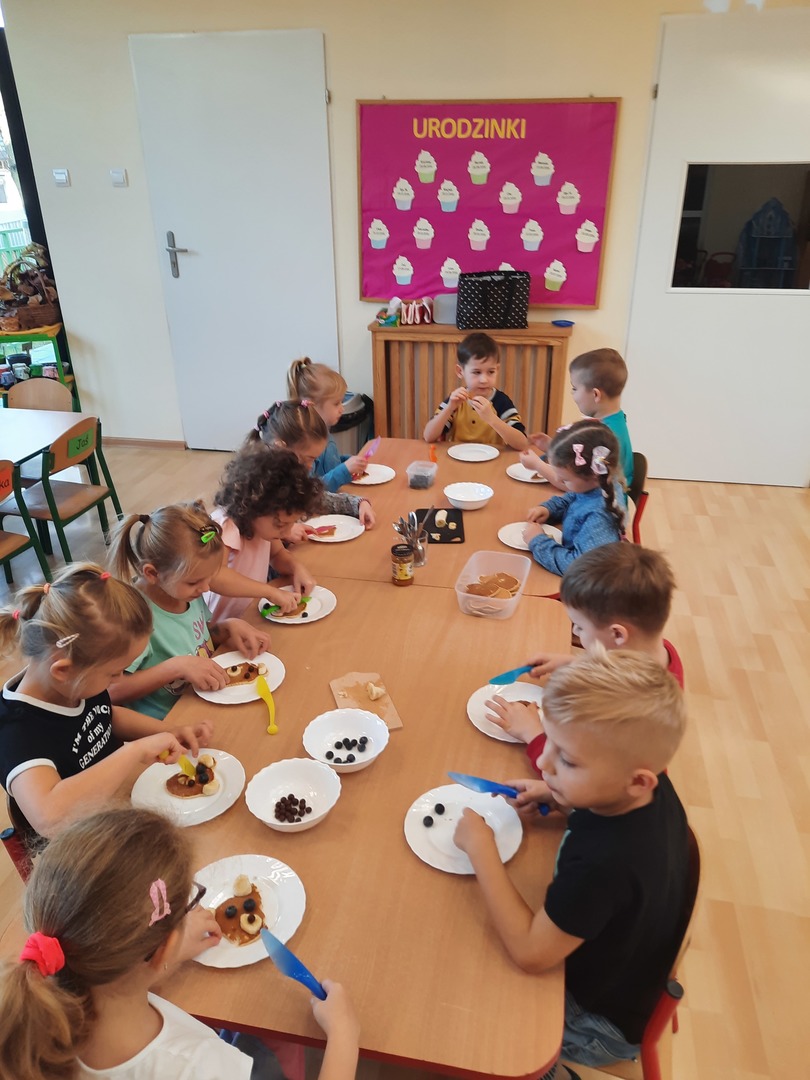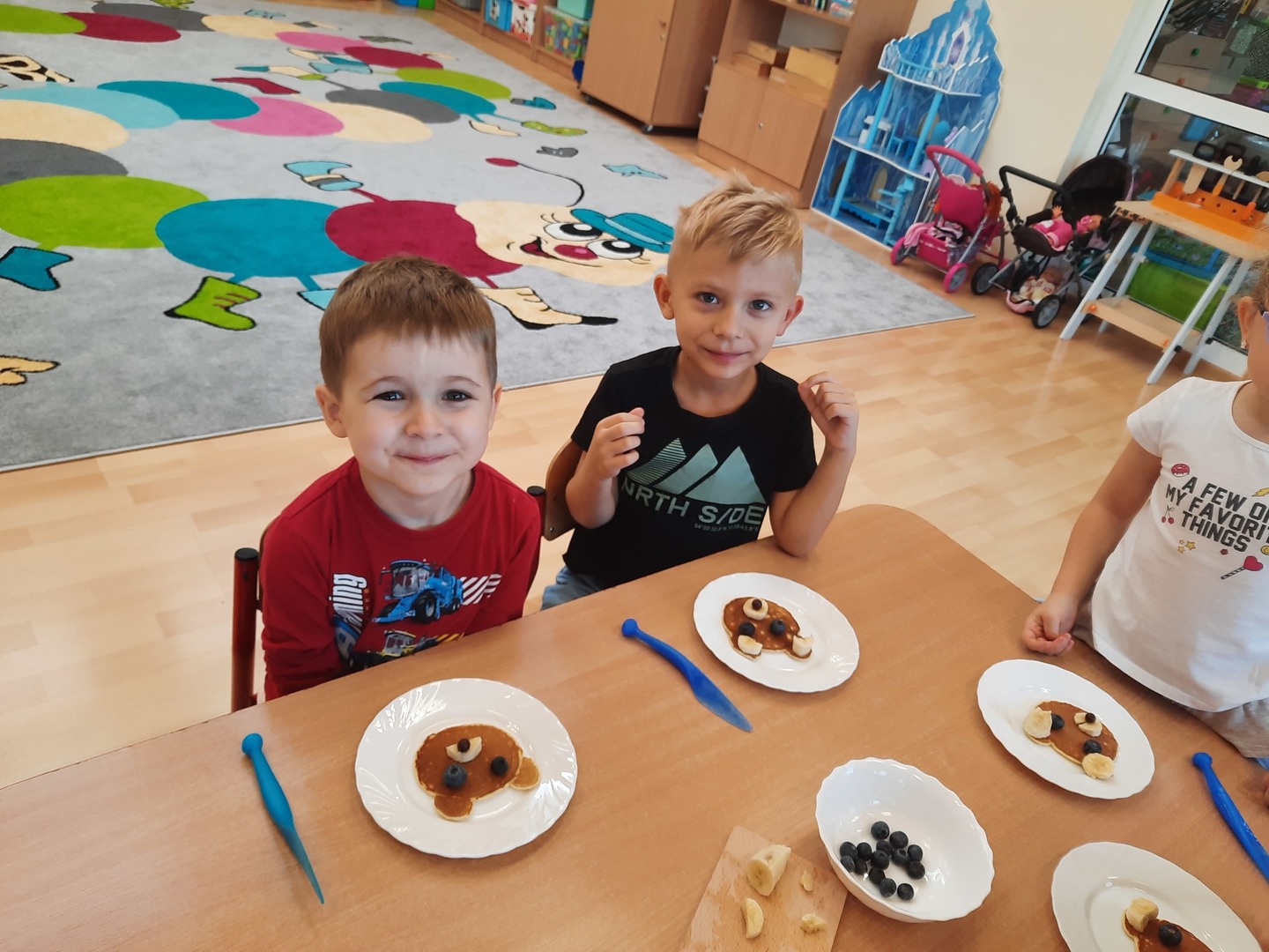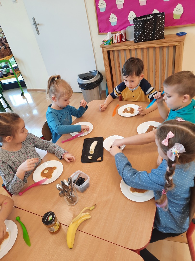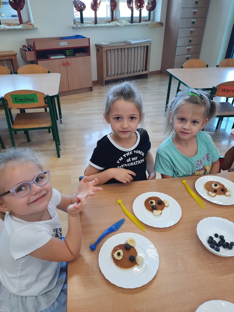Z samego rana, Muminki oglądały przyniesione do przedszkola pluszowe maskotki dzieląc się z innymi dziećmi wiadomościami od kogo dostały zabawkę, jak ma na imię ich miś i wszyscy wspólnie zatańczyli misiowy taniec . Podczas zajęć, poznały historię obchodzenia tego dnia, od czego wszystko się zaczęło. Było też dużo zabaw ruchowych, zagadek, samkowanie przysmaku misiów, ale najbardziej podobały im się misiowe pancake. Wszystkie dzieci lubią misie! A misie na talerzu, z dodatkiem pysznych, świeżych owoców i małych kawałeczków czekolady? No jasne! 🐻Ten dzień był pełen atrakcji, który sprawił dzieciom wiele radości. 🧸