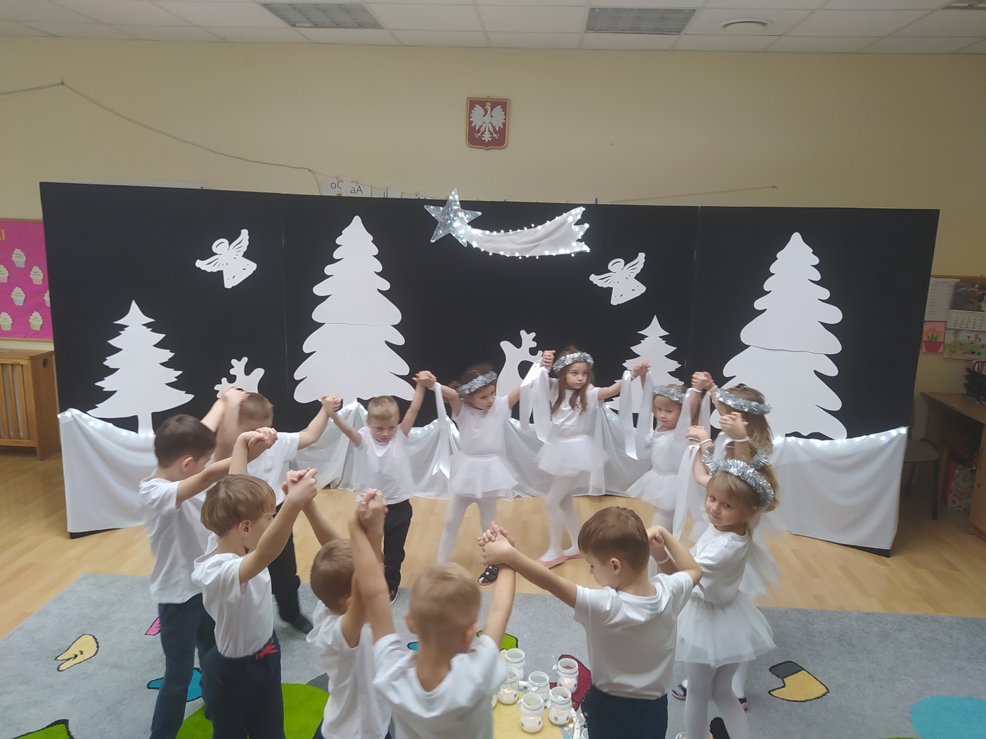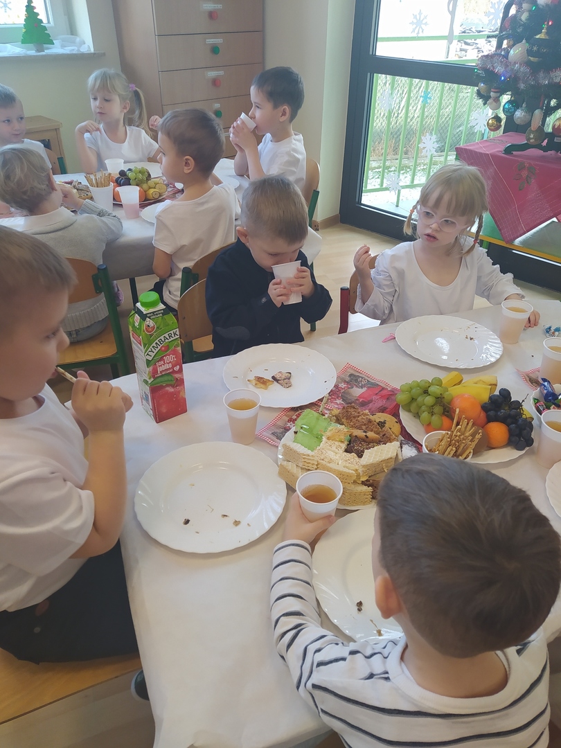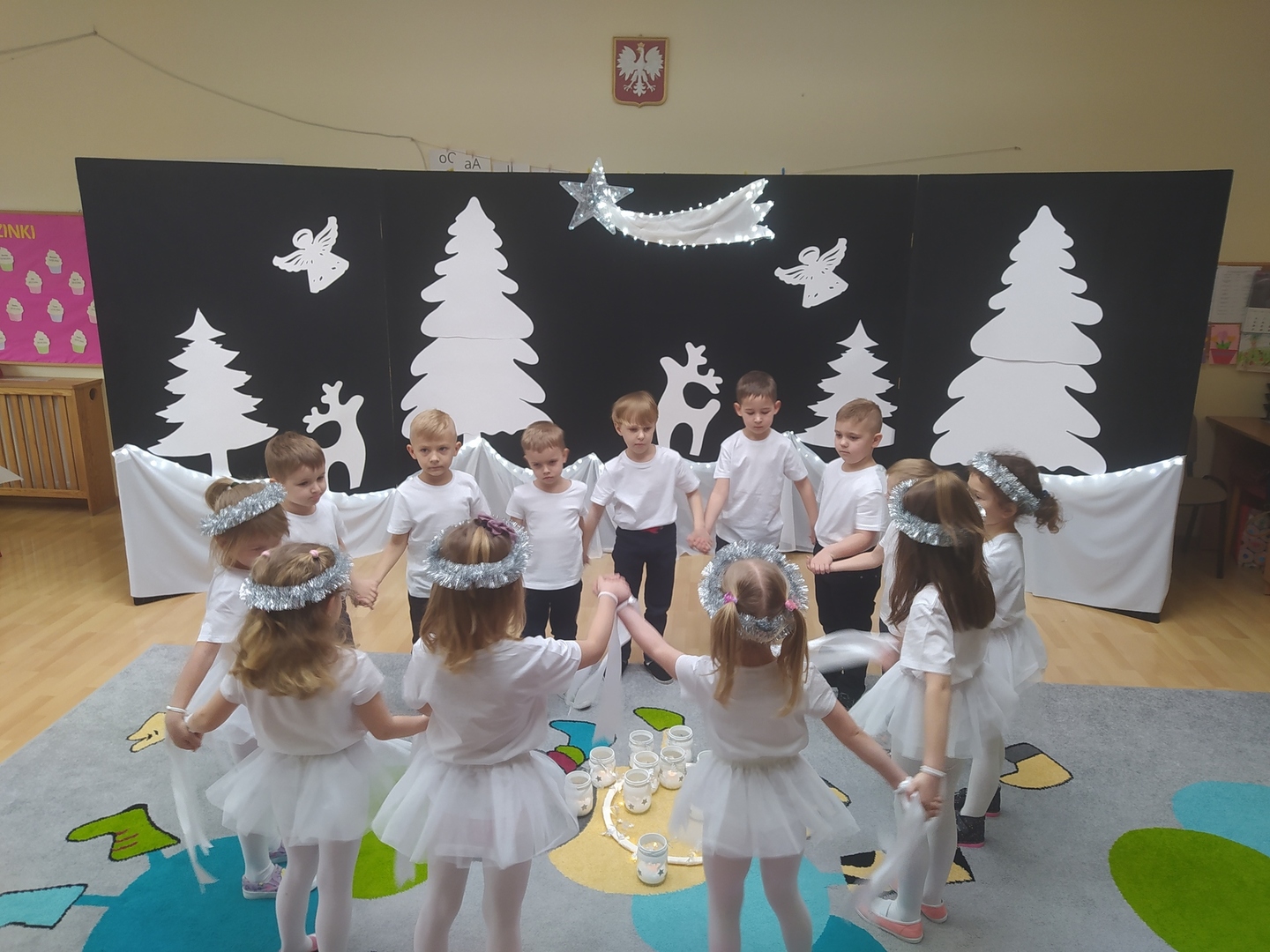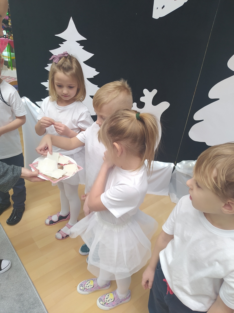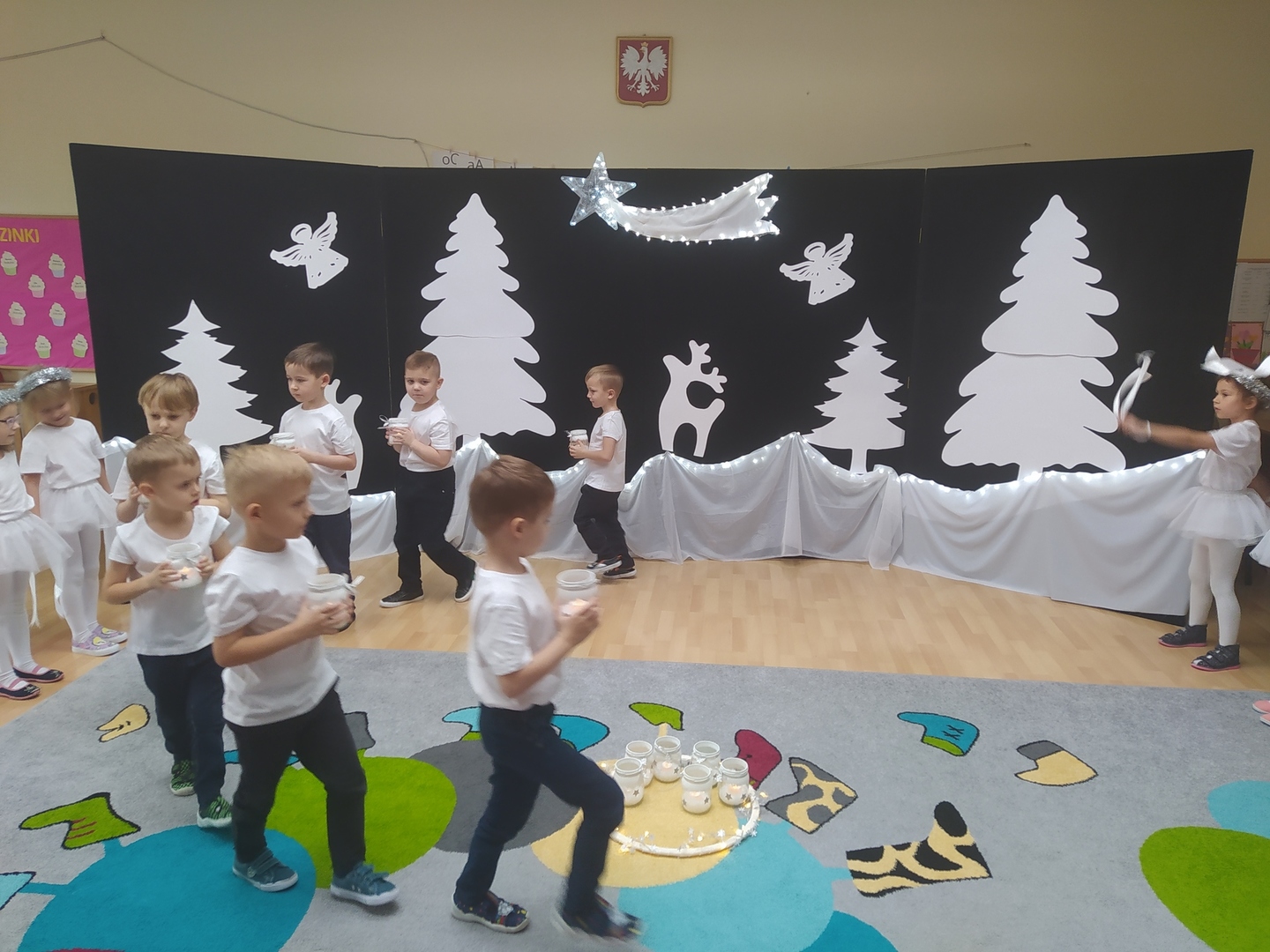 20.12.2021. W przedświąteczny poniedziałek przedszkolaki Akwarelki poczuły przedsmak Bożego Narodzenia. Podczas uroczystego spotkania świątecznego dzieci z grupy Muminki zaprezentowały taniec do nastrojowego utworu "Noel" z własnoręcznie przygotowanymi lampionami, wyrecytowały wierszyki z życzeniami i wesoło odśpiewały pastorałkę "Skrzypi wóz". Po części artystycznej odbyło się tradycyjne dzielenie opłatkiem i wspólny obiad zakończony słodkim poczęstunkiem - o który zadbali rodzice, za co serdecznie dziękujemy! Niechaj magia Bożego Narodzenia wypełnia serca wszystkich pokojem i radością, Wesołych Świąt! :)