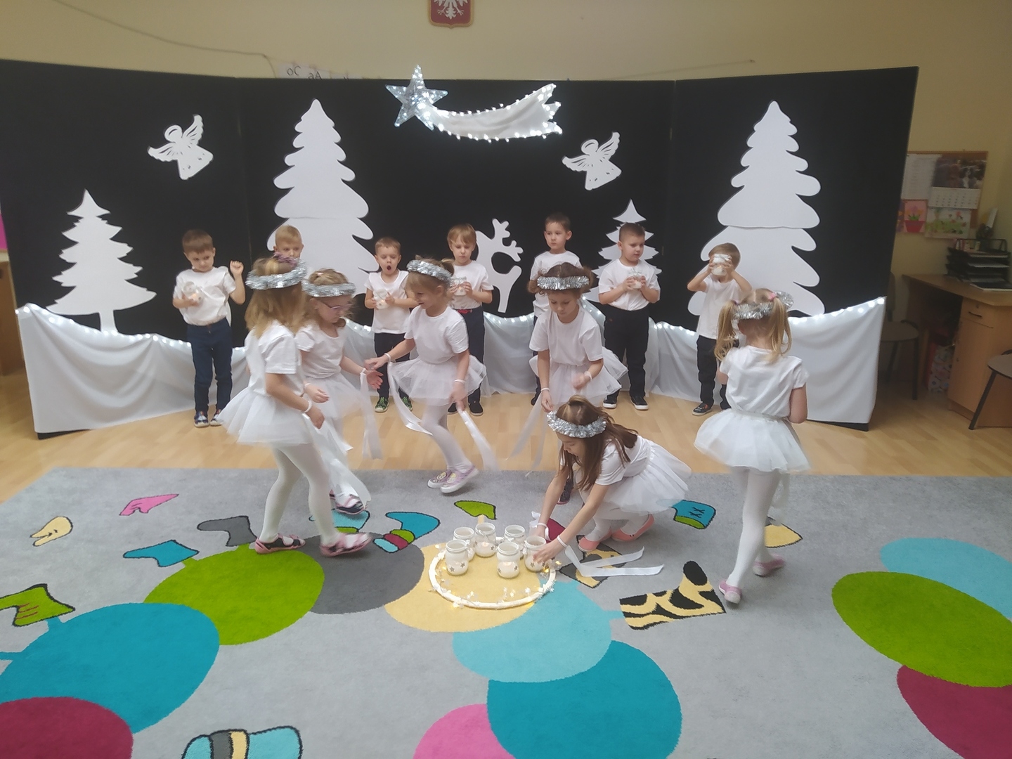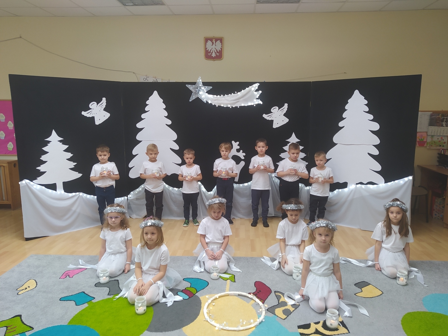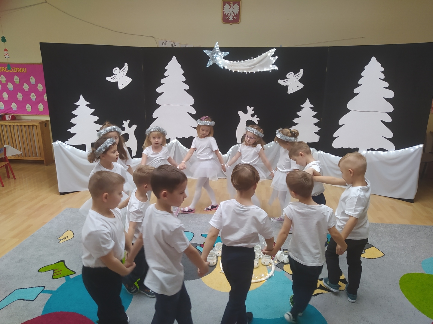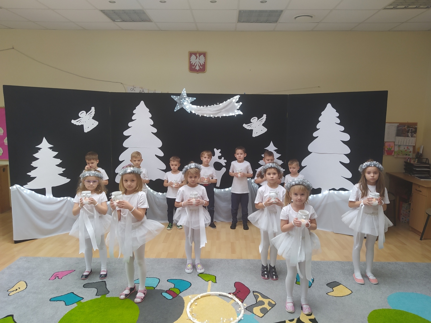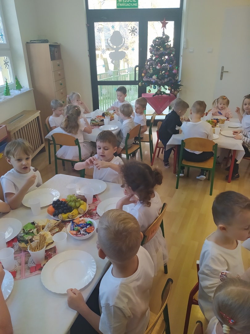 20.12.2021. W przedświąteczny poniedziałek przedszkolaki Akwarelki poczuły przedsmak Bożego Narodzenia. Podczas uroczystego spotkania świątecznego dzieci z grupy Muminki zaprezentowały taniec do nastrojowego utworu "Noel" z własnoręcznie przygotowanymi lampionami, wyrecytowały wierszyki z życzeniami i wesoło odśpiewały pastorałkę "Skrzypi wóz". Po części artystycznej odbyło się tradycyjne dzielenie opłatkiem i wspólny obiad zakończony słodkim poczęstunkiem - o który zadbali rodzice, za co serdecznie dziękujemy! Niechaj magia Bożego Narodzenia wypełnia serca wszystkich pokojem i radością, Wesołych Świąt! :)