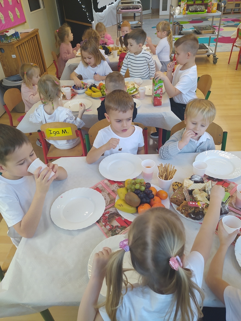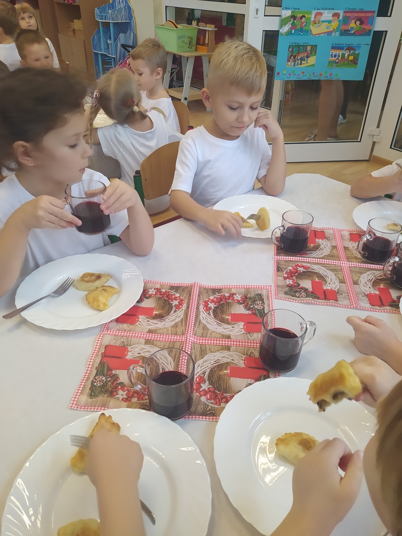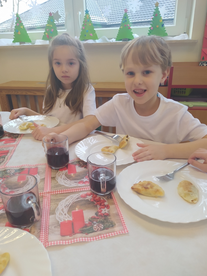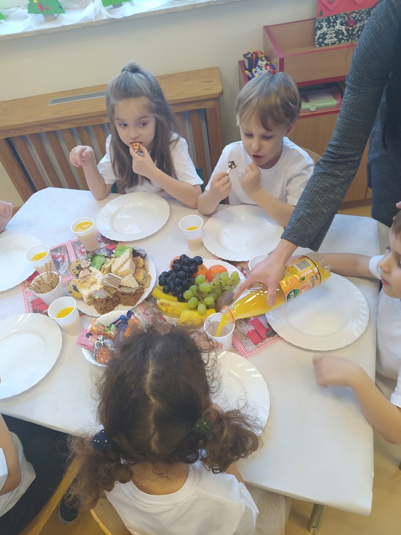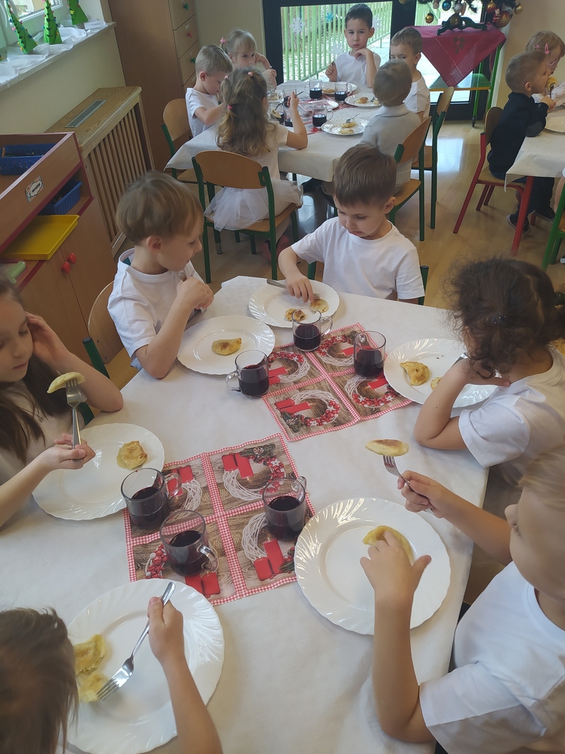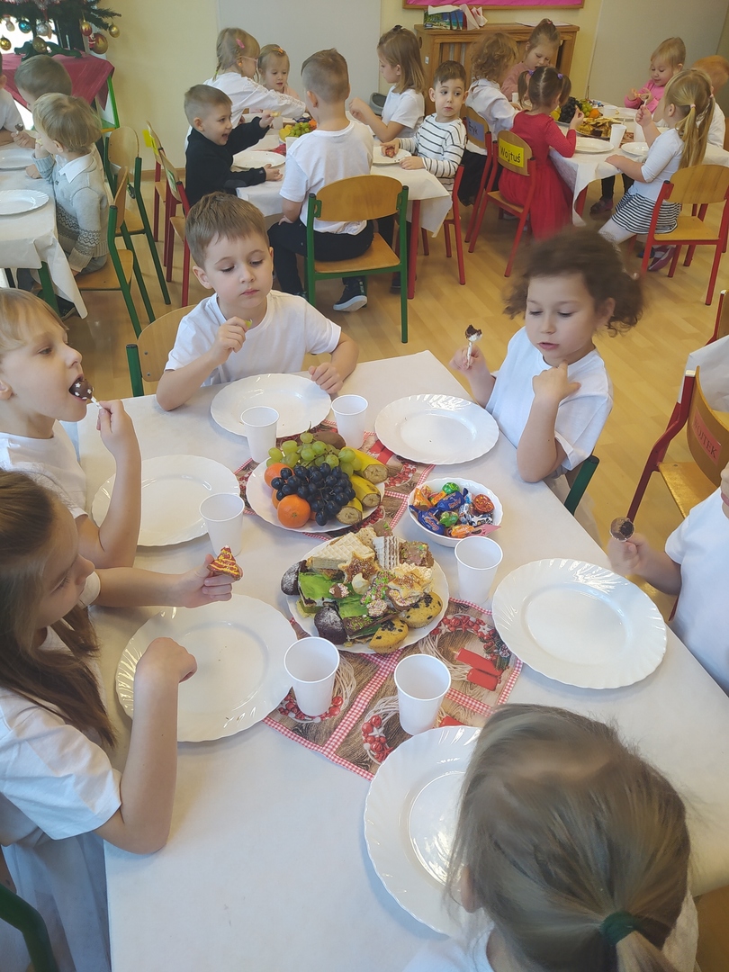 20.12.2021. W przedświąteczny poniedziałek przedszkolaki Akwarelki poczuły przedsmak Bożego Narodzenia. Podczas uroczystego spotkania świątecznego dzieci z grupy Muminki zaprezentowały taniec do nastrojowego utworu "Noel" z własnoręcznie przygotowanymi lampionami, wyrecytowały wierszyki z życzeniami i wesoło odśpiewały pastorałkę "Skrzypi wóz". Po części artystycznej odbyło się tradycyjne dzielenie opłatkiem i wspólny obiad zakończony słodkim poczęstunkiem - o który zadbali rodzice, za co serdecznie dziękujemy! Niechaj magia Bożego Narodzenia wypełnia serca wszystkich pokojem i radością, Wesołych Świąt! :)