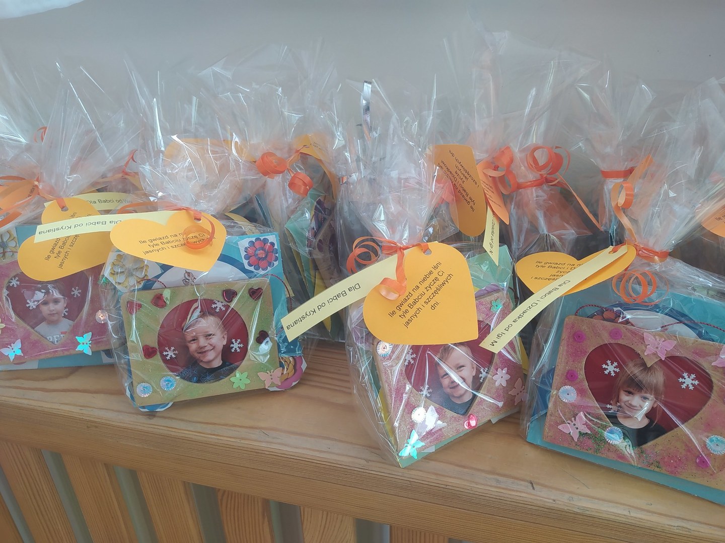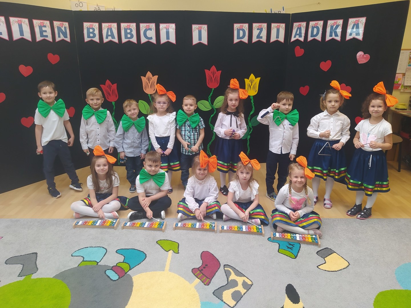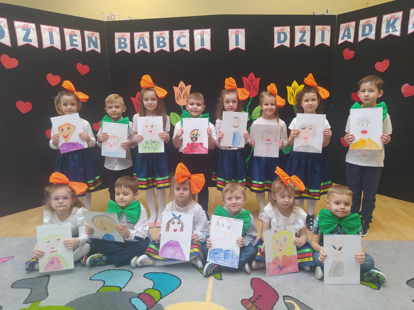 21.01.2022r. dzieci z grupy Muminki świętowały Dzień Babci i Dziadka. Z uwagi na trwającą pandemię uroczystość odbyła się bez udziału gości, ale za to przed obiektywem kamery, dzięki czemu Babcie i Dziadkowie mogli zobaczyć występy swoich wnucząt. Nasze przedszkolaki włożyły wiele serca, by jak najpiękniej zaprezentować się w programie artystycznym. Odświętnie ubrane dzielnie recytowały wiersze, śpiewały piosenki, a nawet wykonały instrumentację walca D. Szostakowicza. Dla Babć i Dziadków Muminki przygotowały także wyjątkowe prezenty - ręcznie ozdabiane portrety. Wszystko po to, by wyrazić swoją miłość i podziękowanie za serce, dobro i troskę, którymi Babcie i Dziadkowie obdarzają swoje wnuczęta.