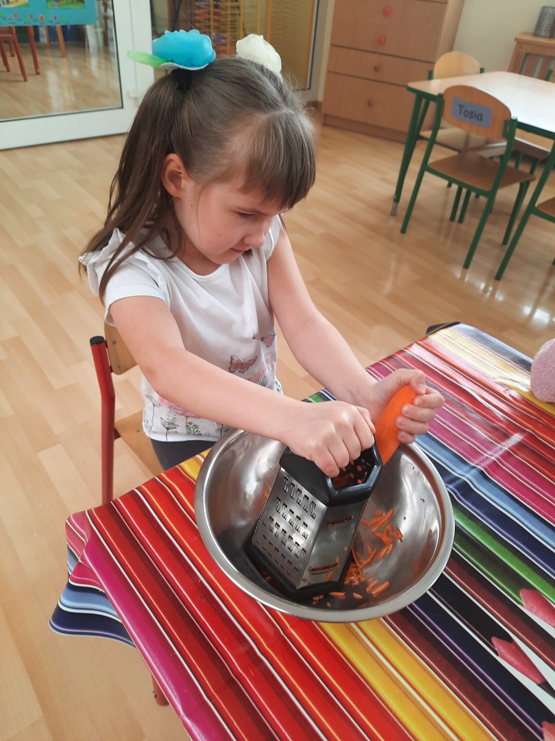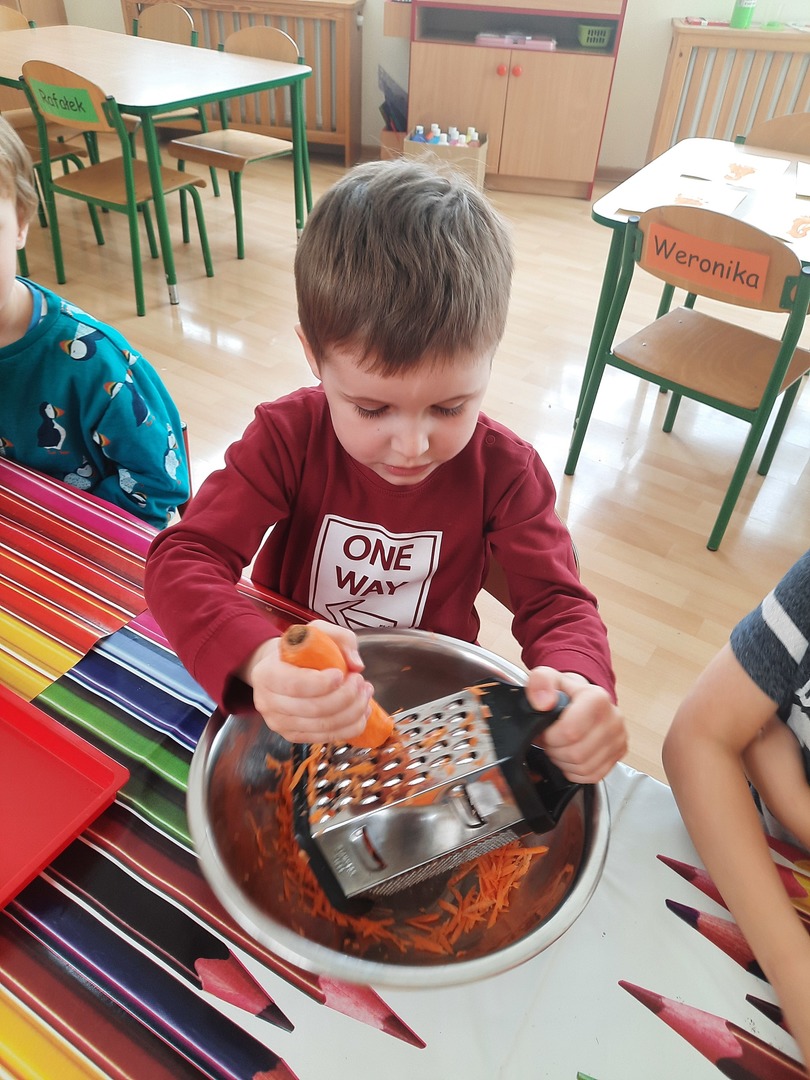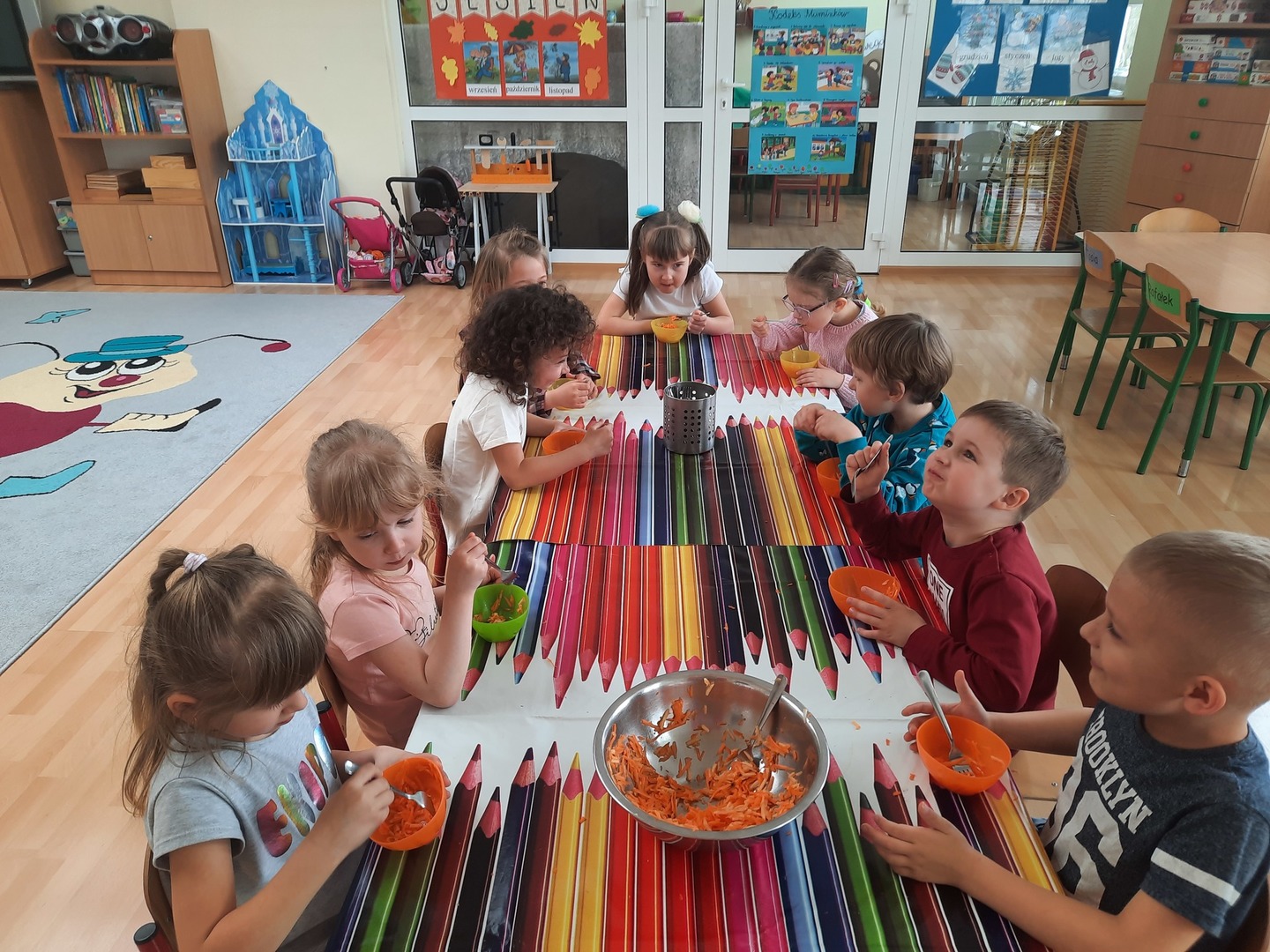 Były wierszyki, piosenki, tańce, zagadki, prace plastyczne oraz degustacja marchewki. W końcowym efekcie powstała marchewkowa surówka.