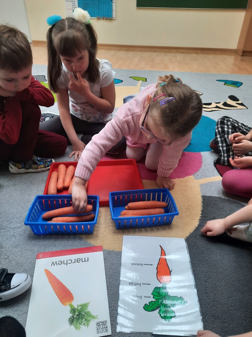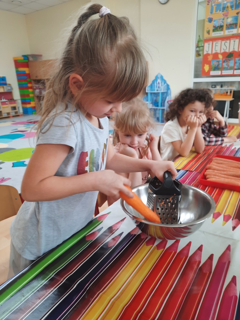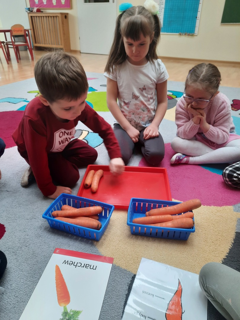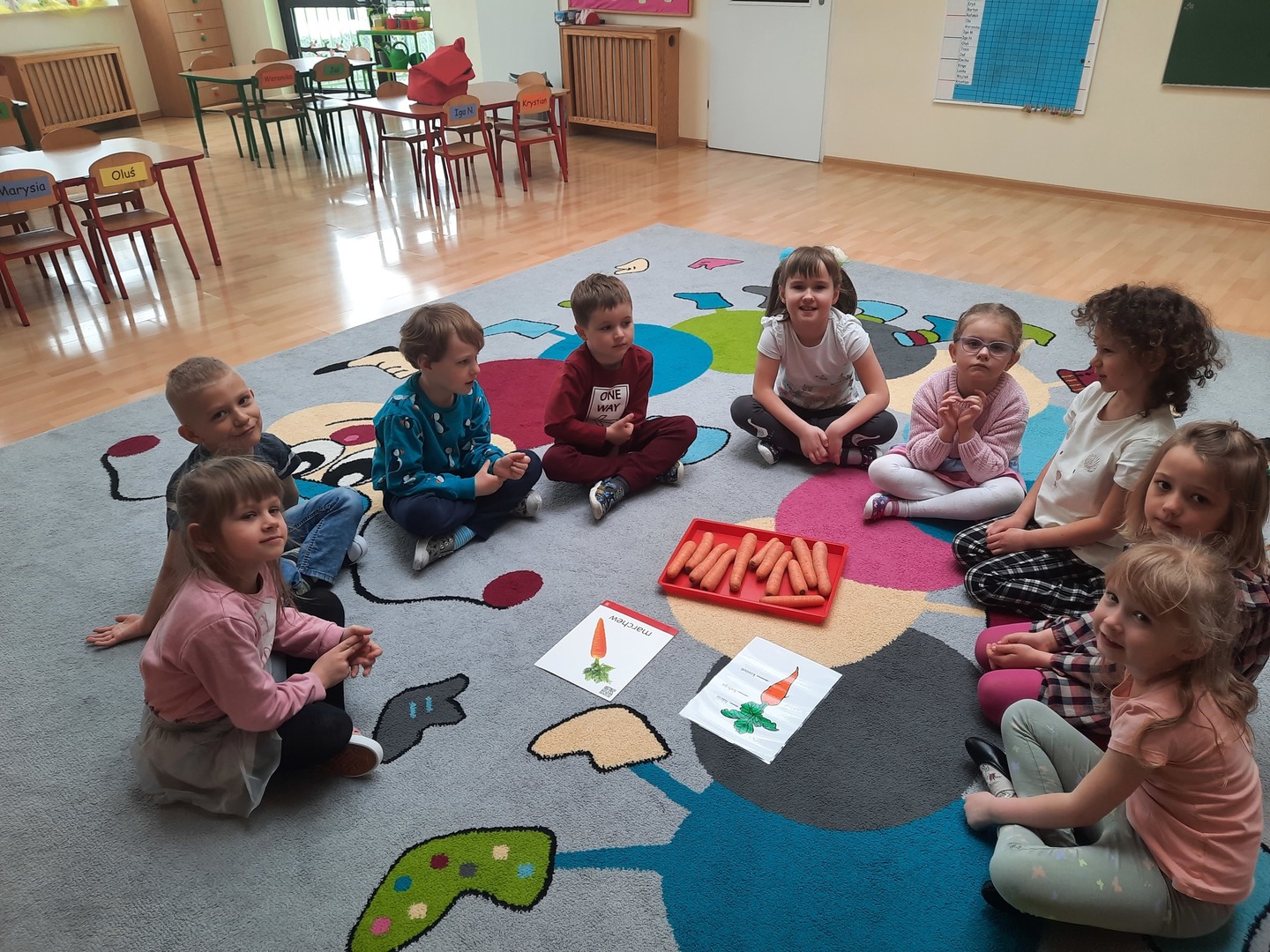 Były wierszyki, piosenki, tańce, zagadki, prace plastyczne oraz degustacja marchewki. W końcowym efekcie powstała marchewkowa surówka.
