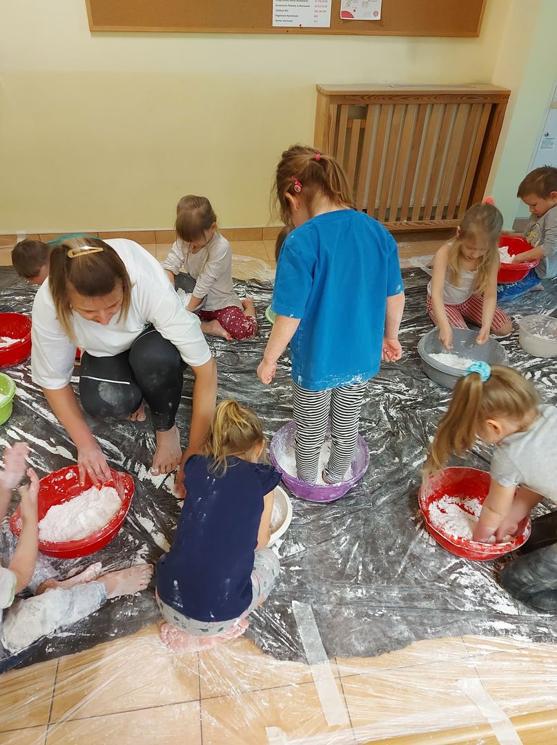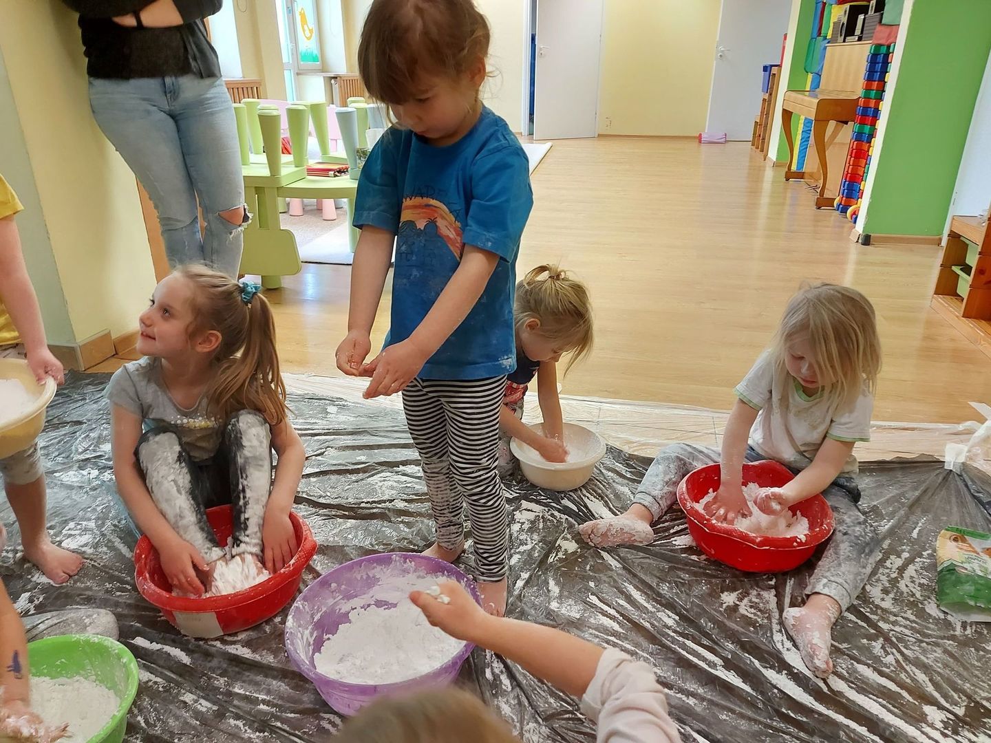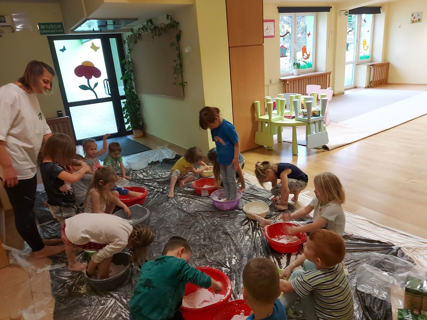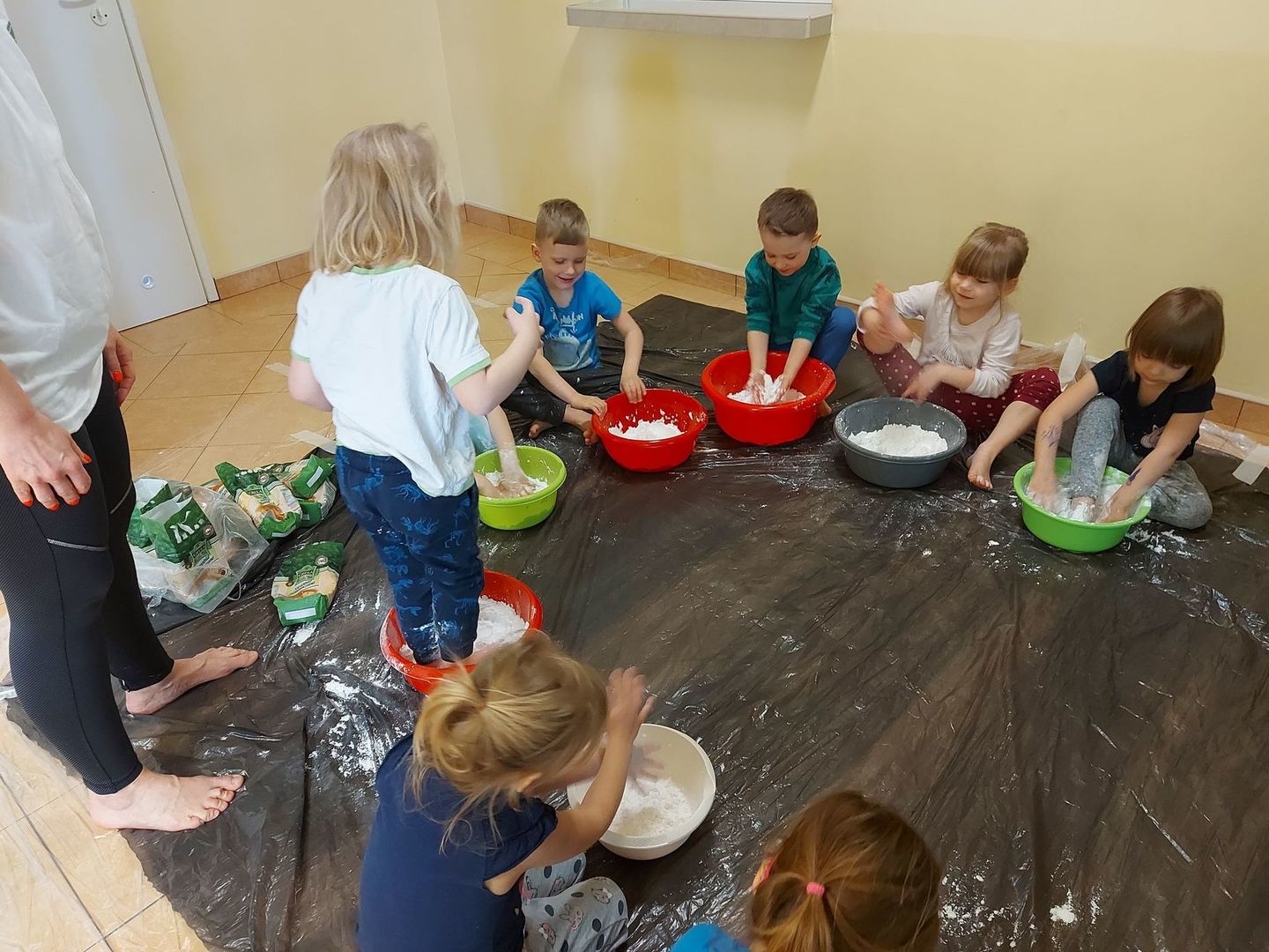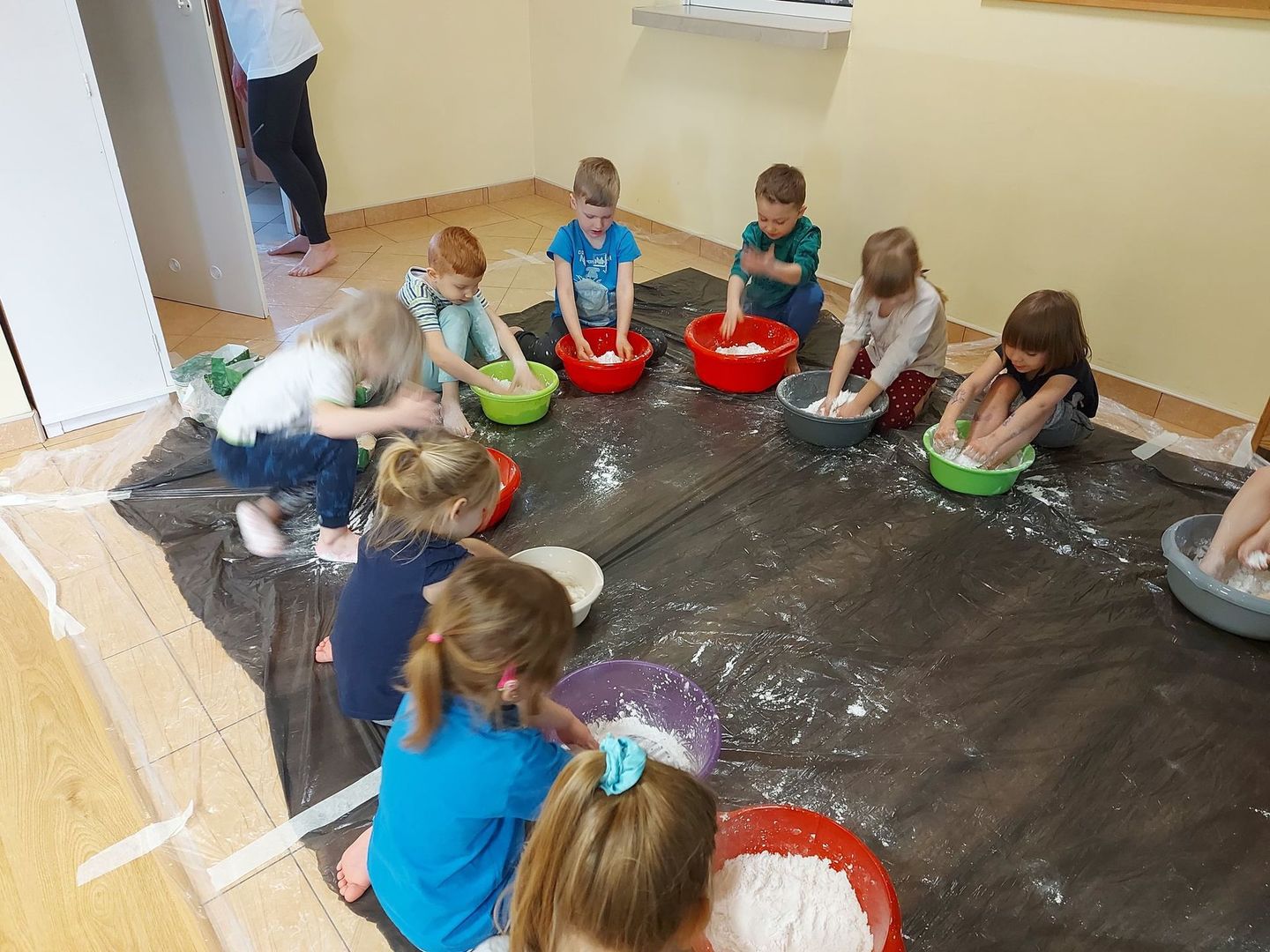 W grupie Gumisi rozpoczęliśmy przygodę z sensoplastyką. Rozmawialiśmy o tym, jak ważne są zmysły w poznawaniu świata oraz Pani wyjaśniła na czym polegają zajęcia sensoplastyczne. Bawiliśmy się świetnie!