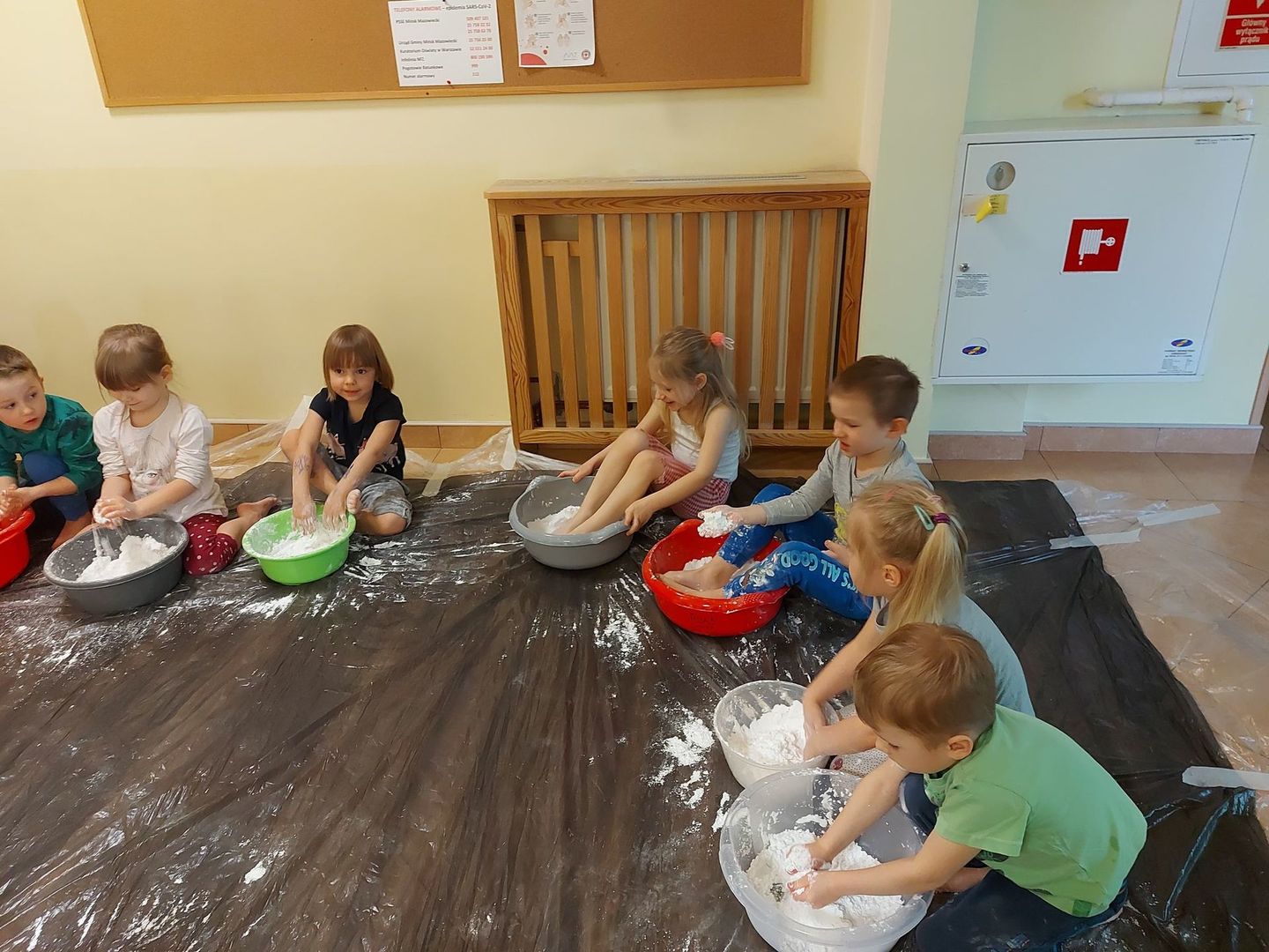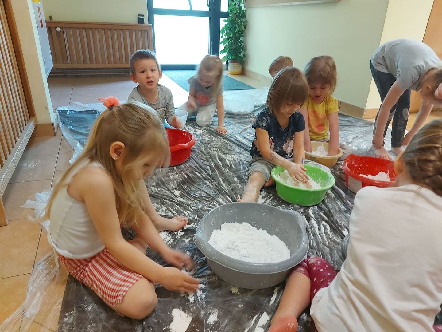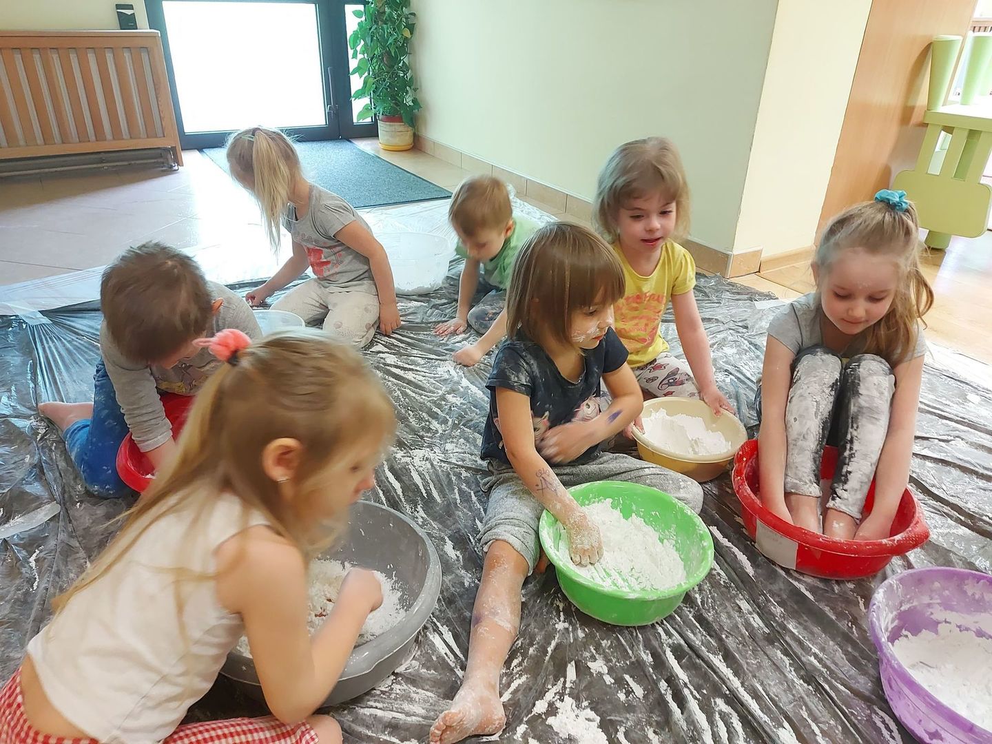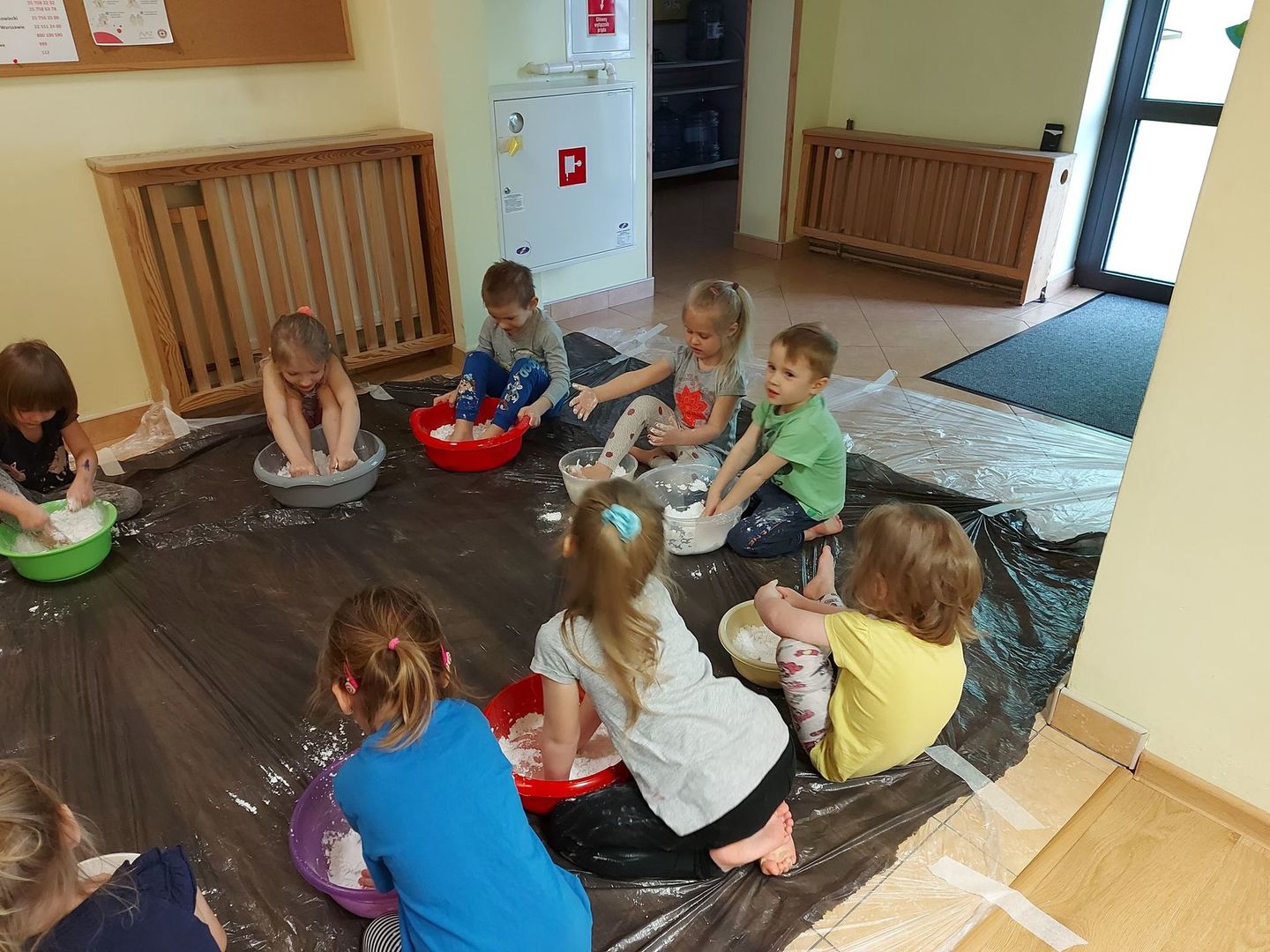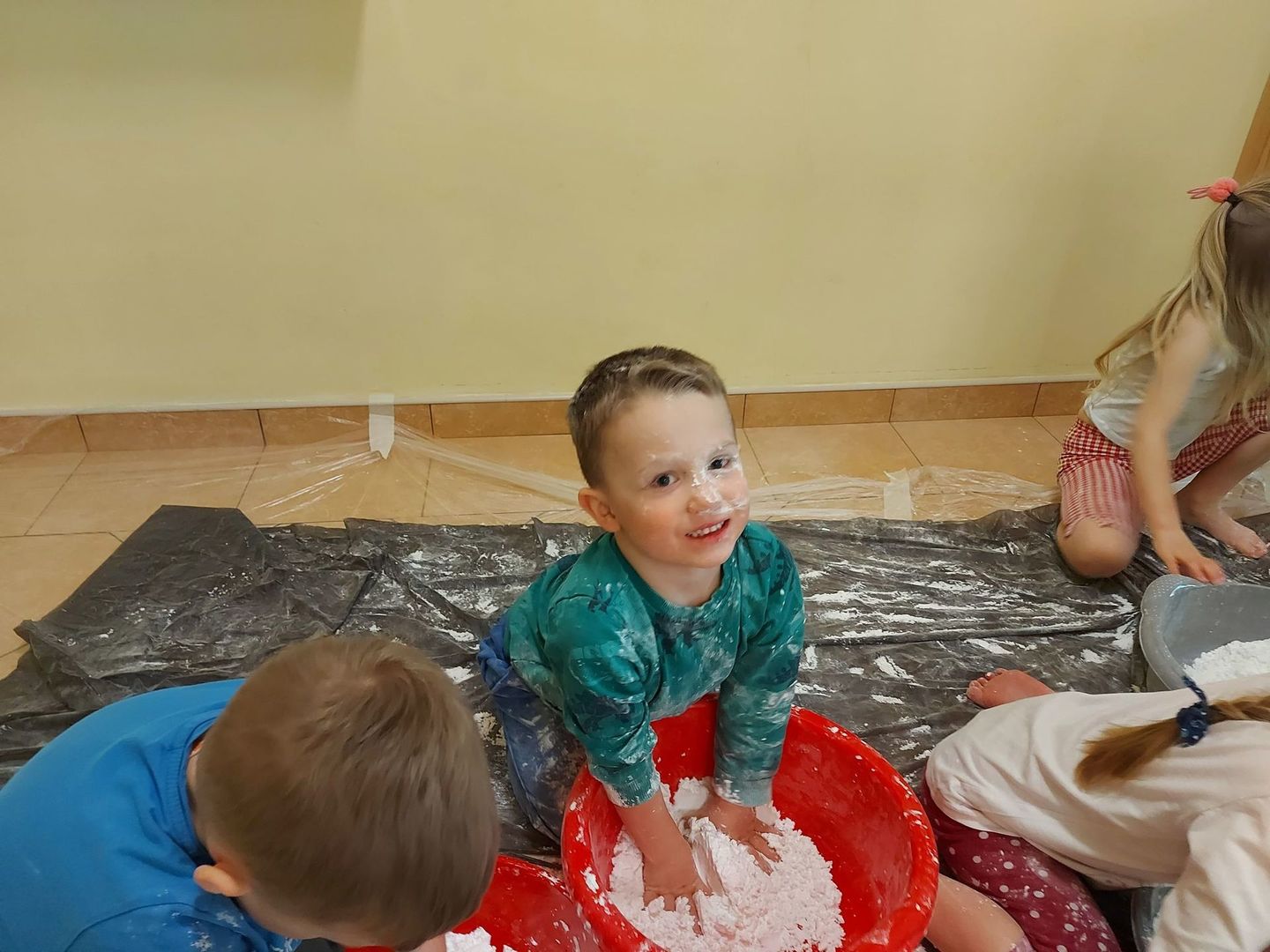W grupie Gumisi rozpoczęliśmy przygodę z sensoplastyką. Rozmawialiśmy o tym, jak ważne są zmysły w poznawaniu świata oraz Pani wyjaśniła na czym polegają zajęcia sensoplastyczne. Bawiliśmy się świetnie!