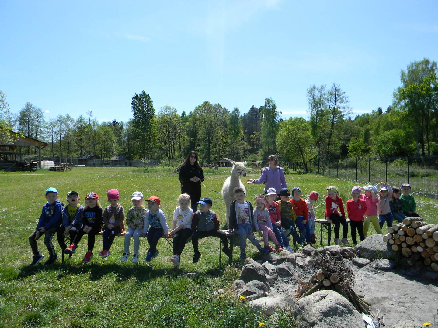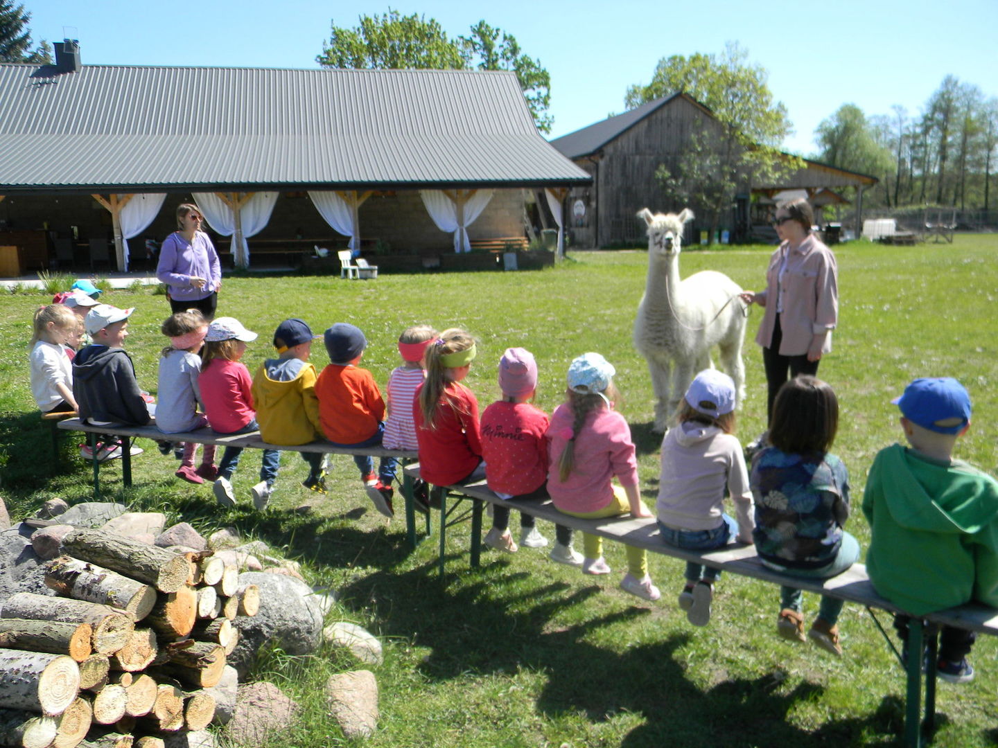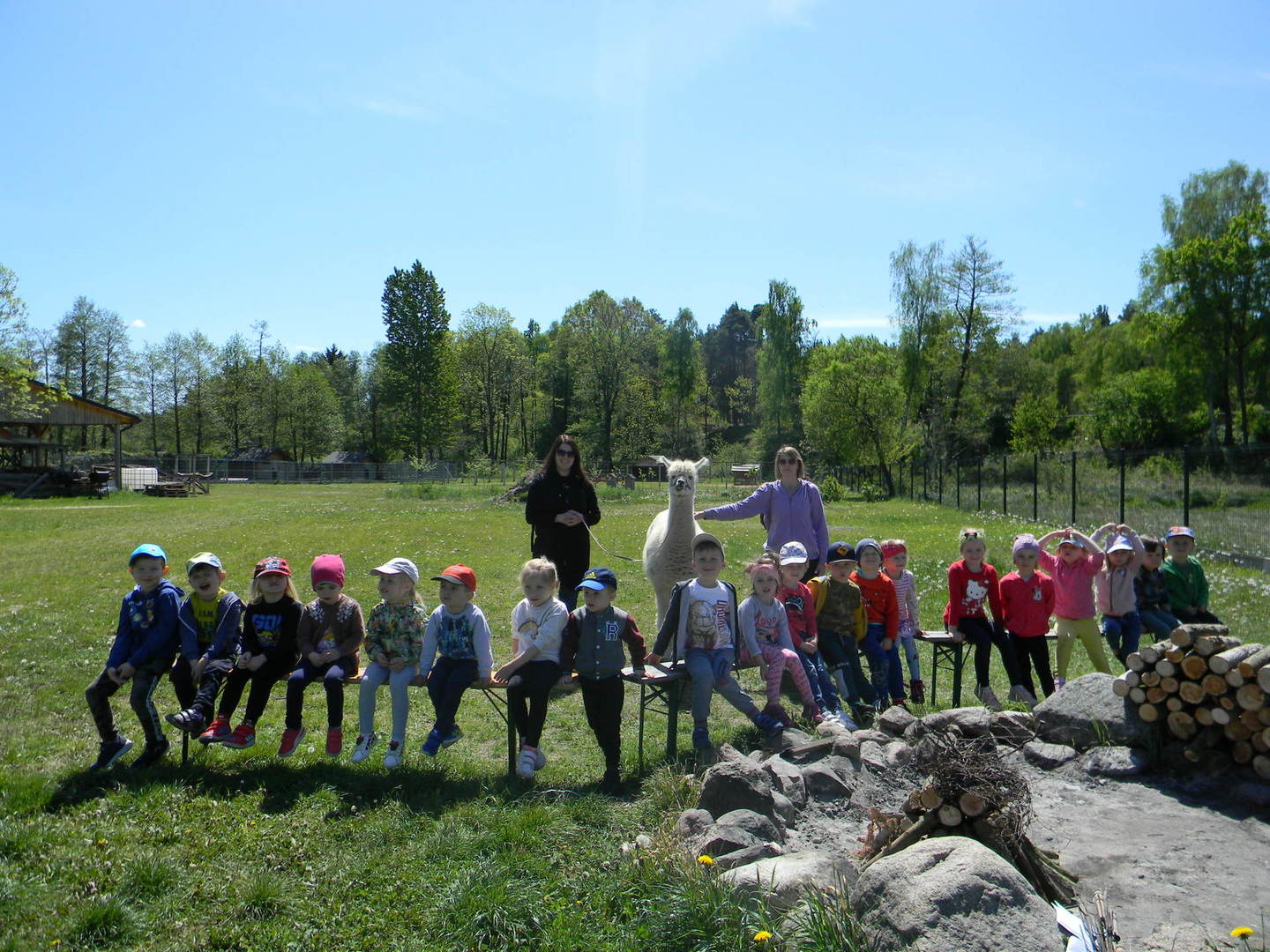 16 maja grupy "Gumisie" i "Muminki" wyjechały na wycieczkę do gospodarstwa agroturystycznego "Akacjowy zakątek" w Pustelniku. Dzieci uczestniczyły w wielu aktywnościach: alpakoterapia, przejażdżka wozem, pranie na tarze, dojenie krowy, strzelanie z łuku, odwiedziny w mini zoo, zajęcia plastyczne, ognisko z kiełbaskami, zabawy na placu zabaw. Pogoda nam sprzyjała, a ciekawe atrakcje wywołały uśmiechy na twarzach wszystkich dzieci.