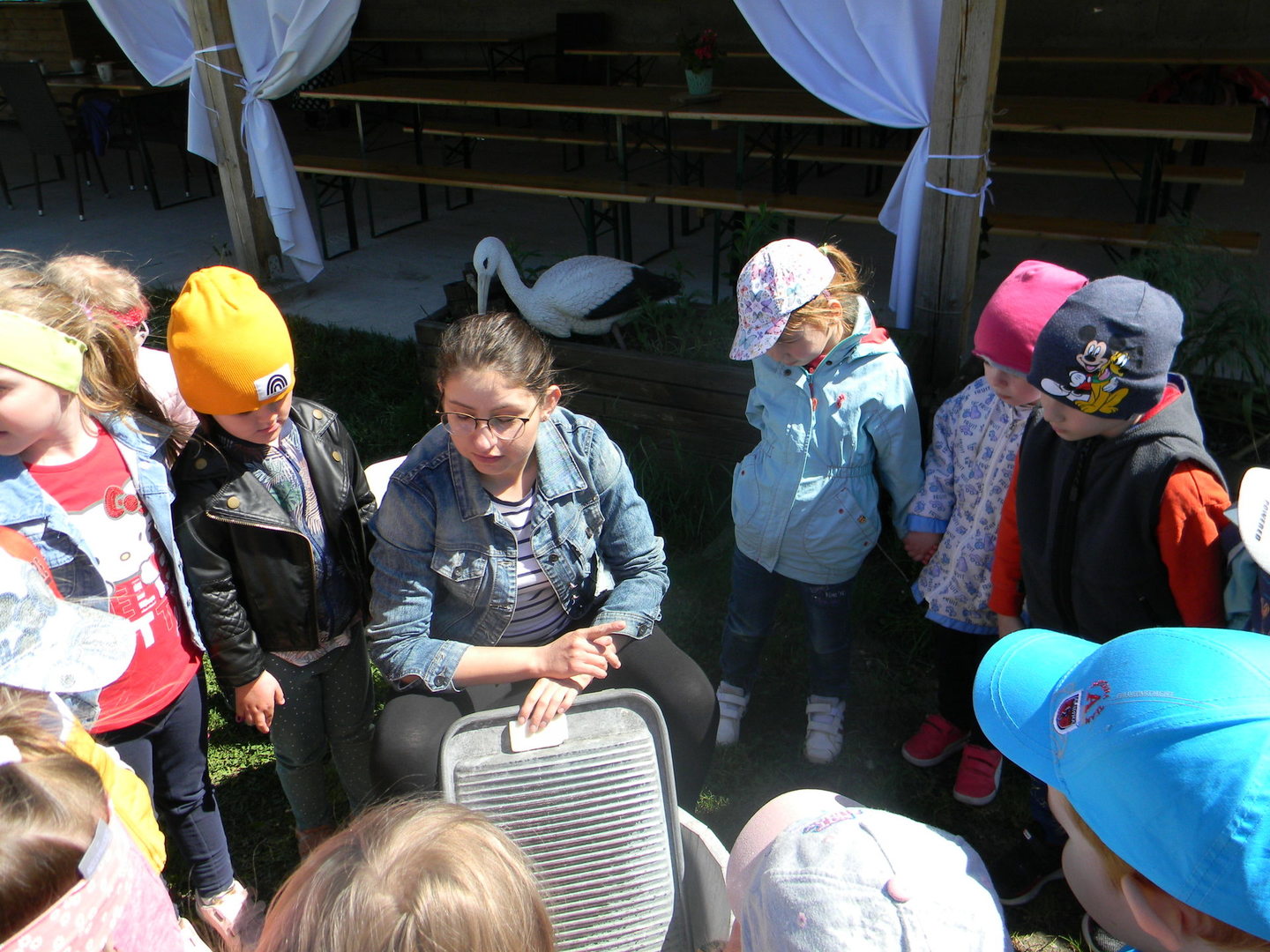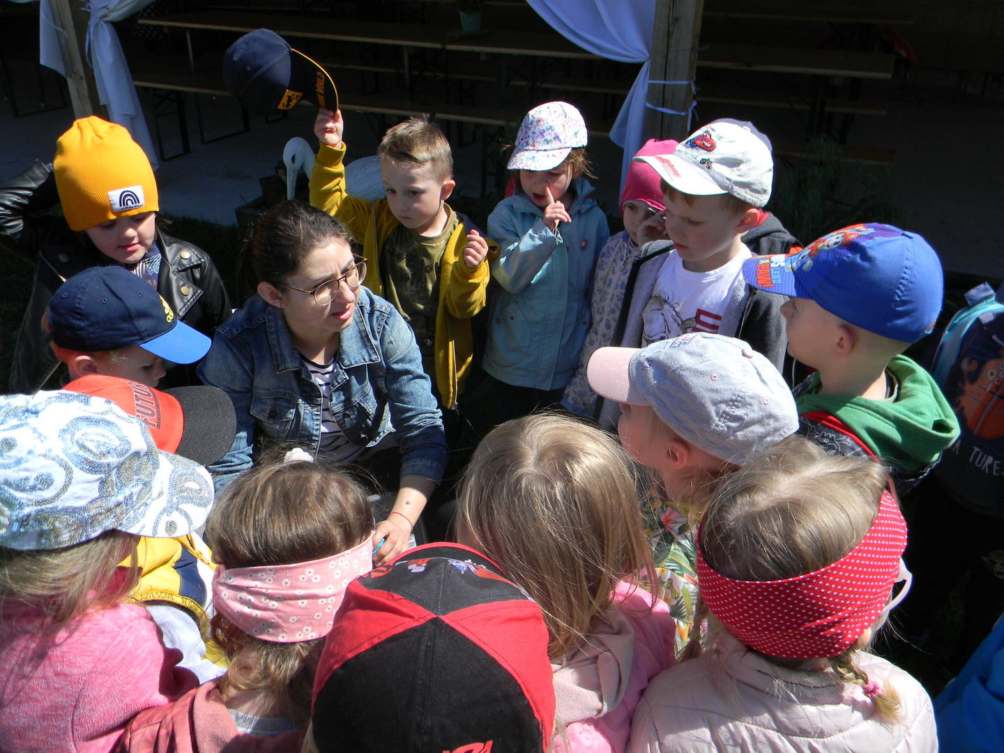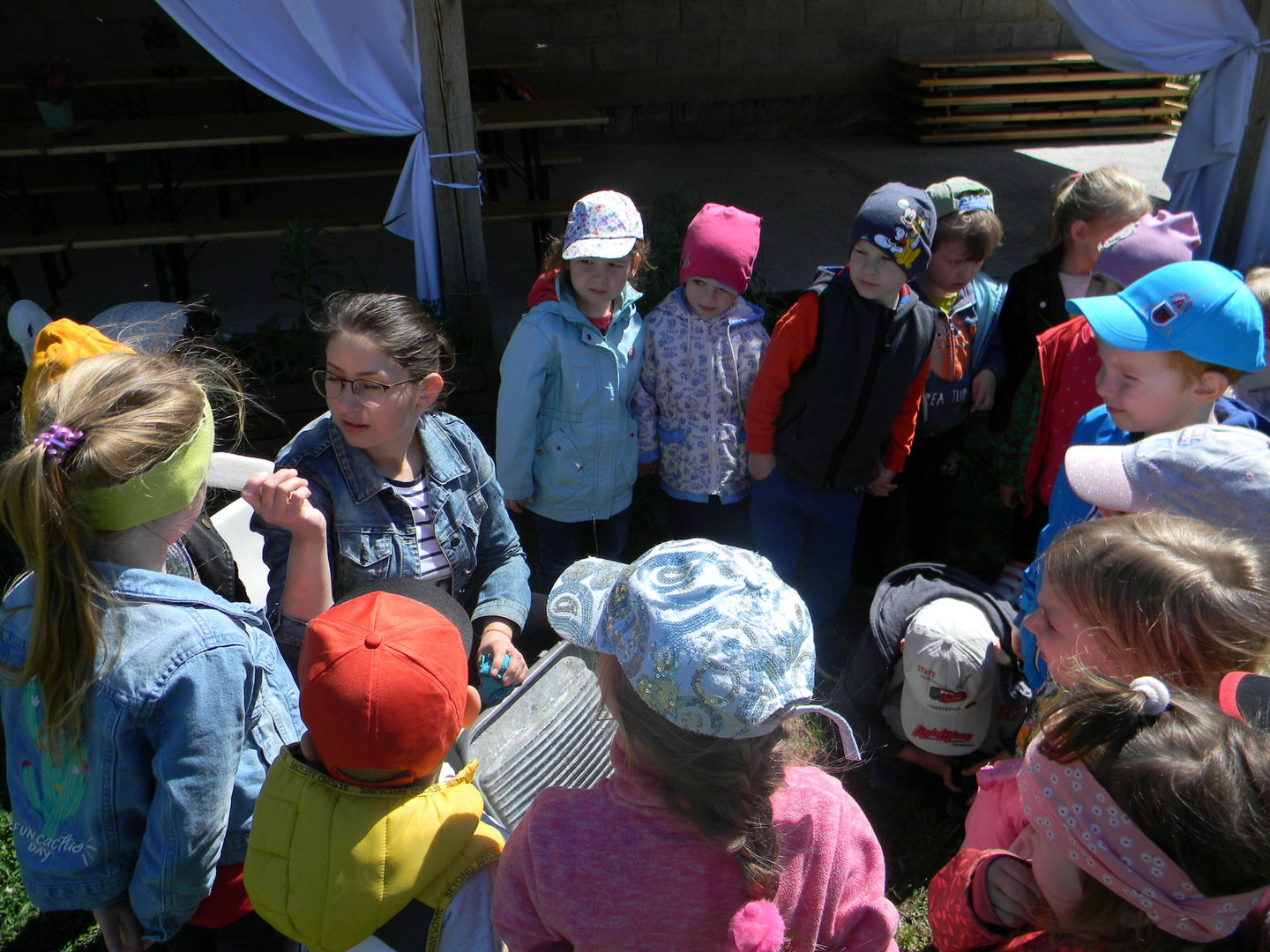 16 maja grupy "Gumisie" i "Muminki" wyjechały na wycieczkę do gospodarstwa agroturystycznego "Akacjowy zakątek" w Pustelniku. Dzieci uczestniczyły w wielu aktywnościach: alpakoterapia, przejażdżka wozem, pranie na tarze, dojenie krowy, strzelanie z łuku, odwiedziny w mini zoo, zajęcia plastyczne, ognisko z kiełbaskami, zabawy na placu zabaw. Pogoda nam sprzyjała, a ciekawe atrakcje wywołały uśmiechy na twarzach wszystkich dzieci.