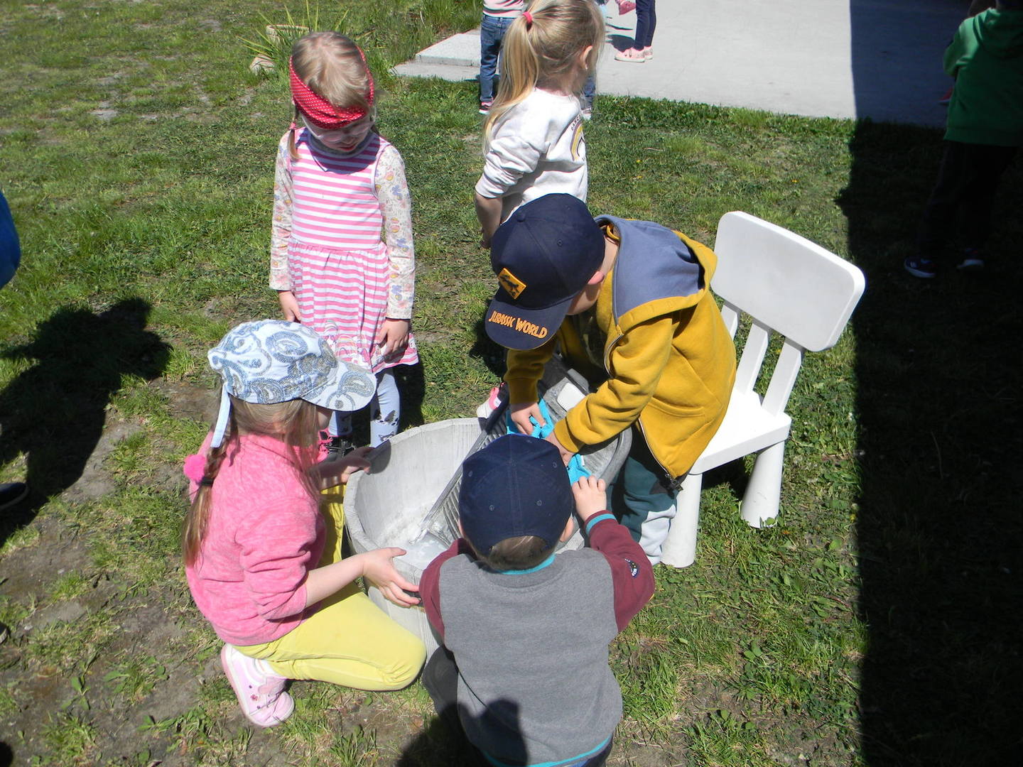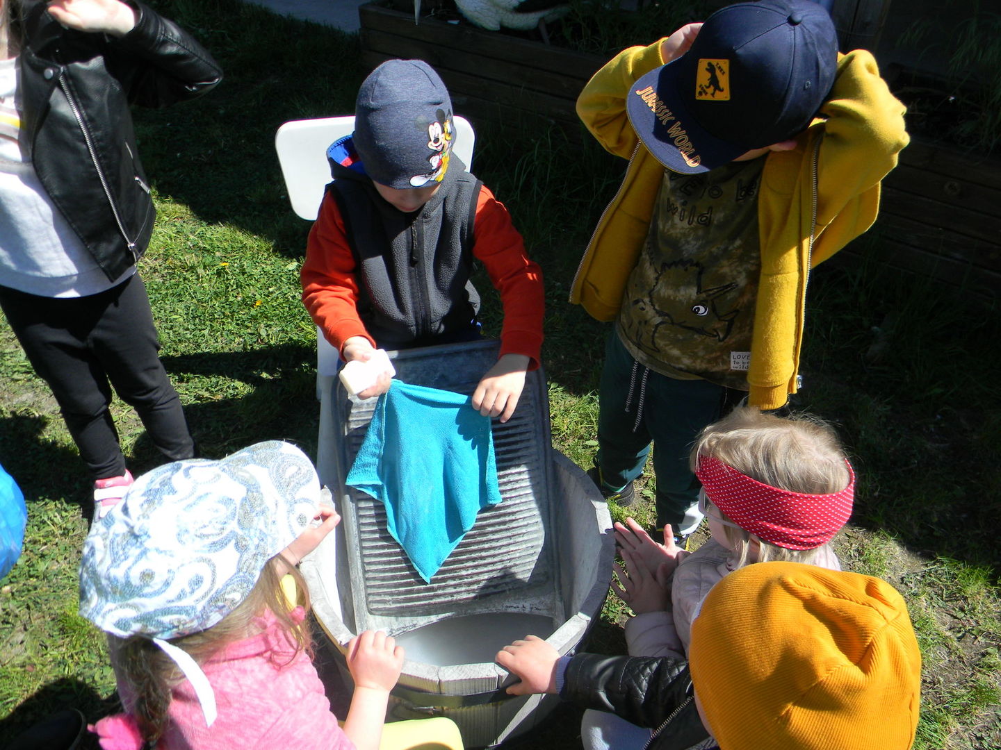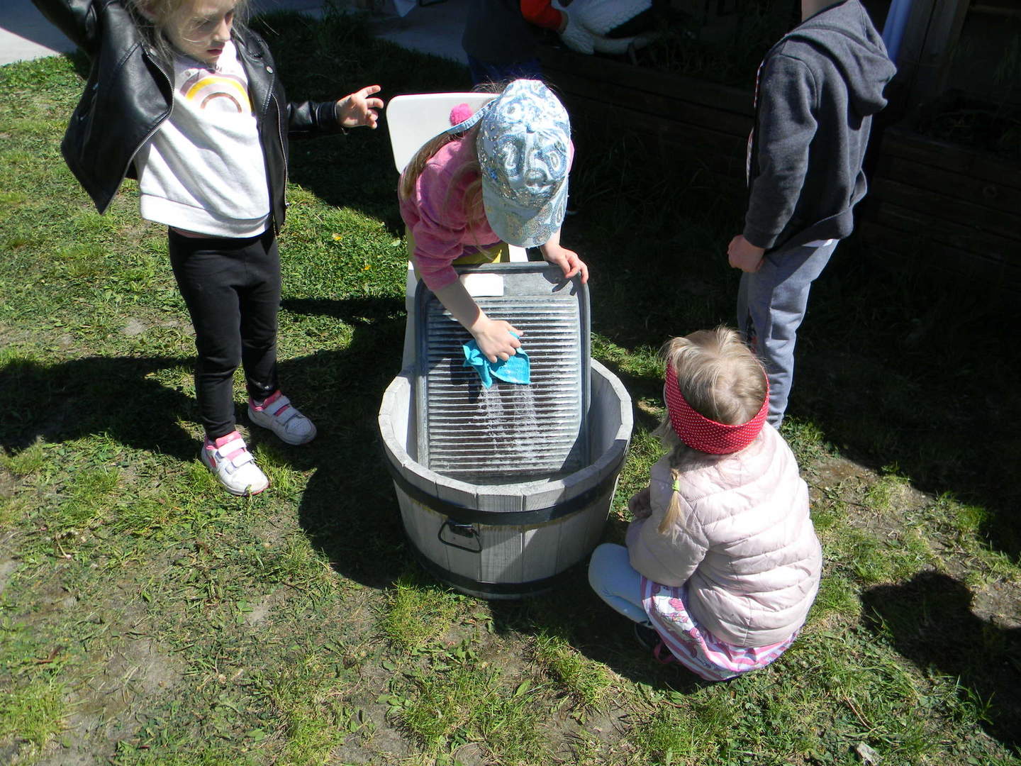 Dzieci piorą na tarze.