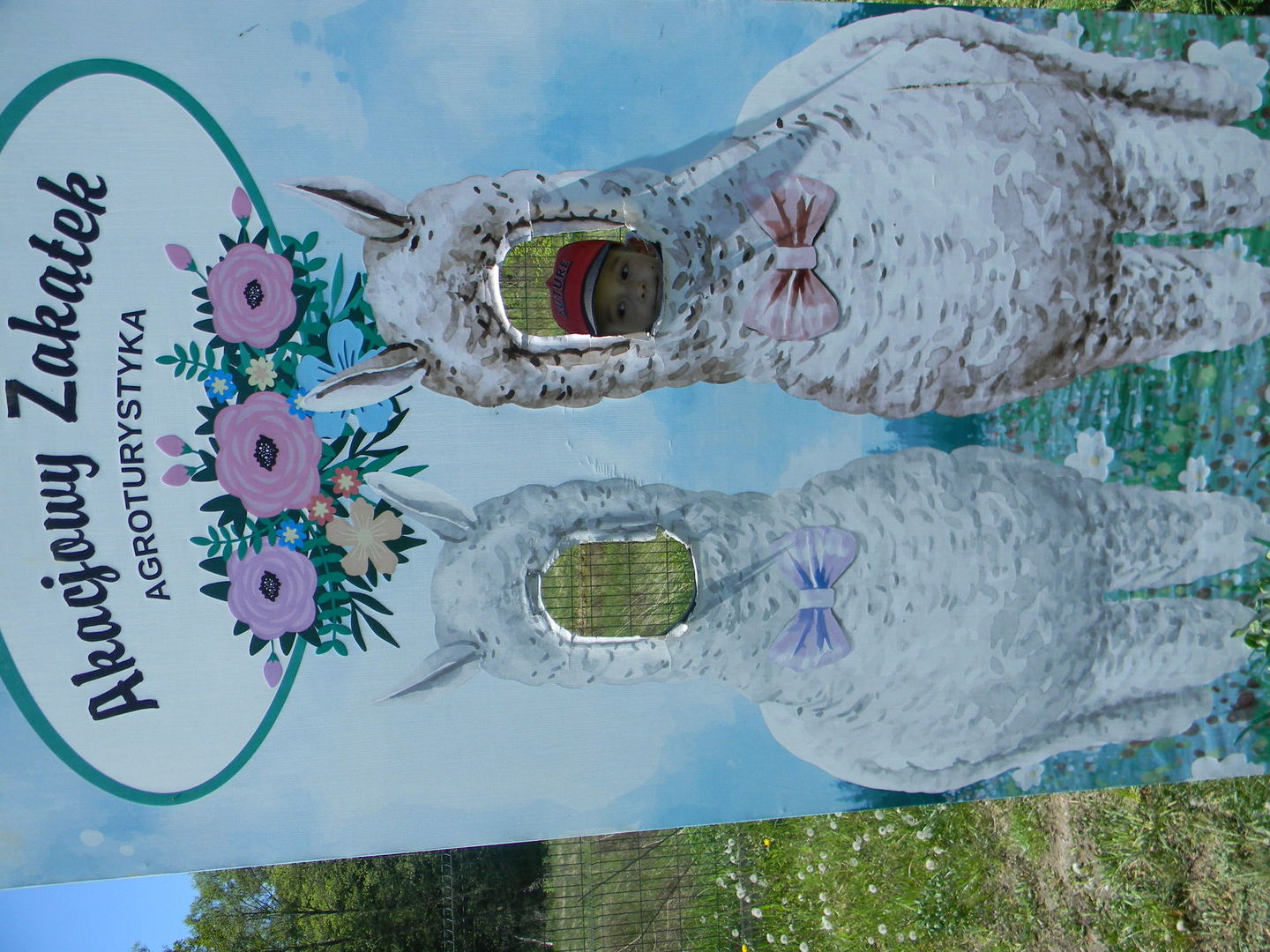 Zdjęcie dziecka w ramce z narysowaną alpaką