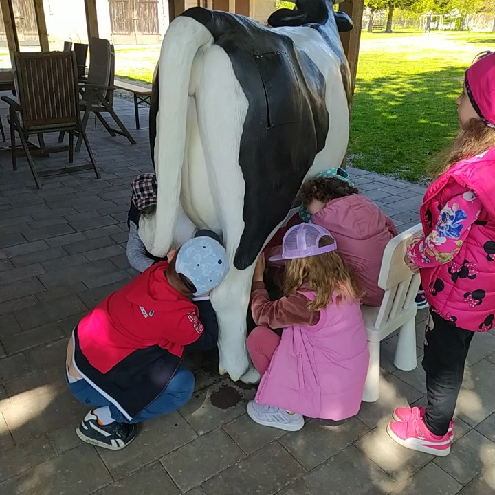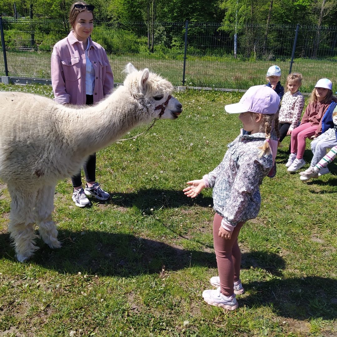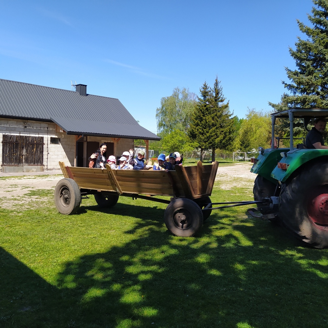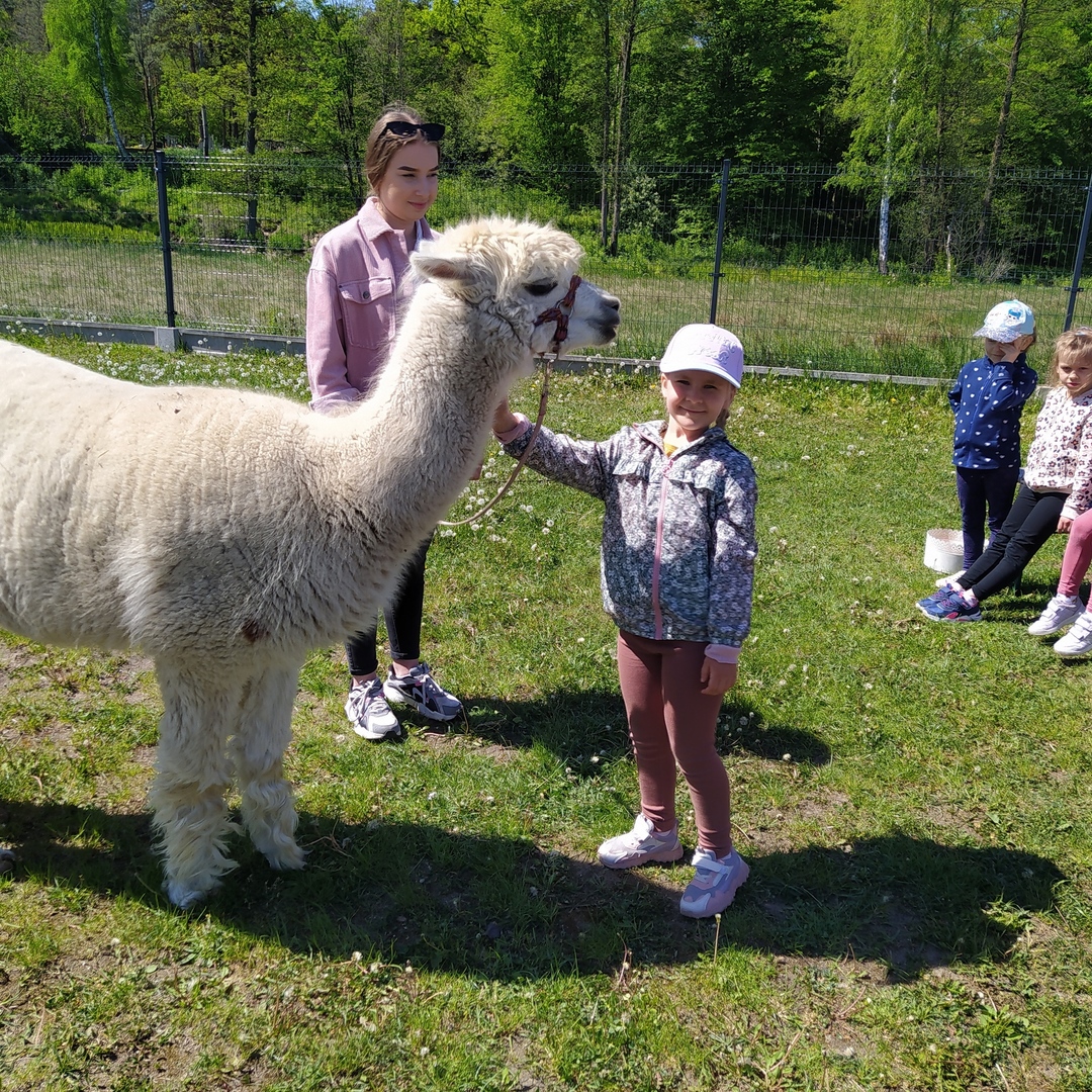 16 maja grupy "Gumisie" i "Muminki" wyjechały na wycieczkę do gospodarstwa agroturystycznego "Akacjowy zakątek" w Pustelniku. Dzieci uczestniczyły w wielu aktywnościach: alpakoterapia, przejażdżka wozem, pranie na tarze, dojenie krowy, strzelanie z łuku, odwiedziny w mini zoo, zajęcia plastyczne, ognisko z kiełbaskami, zabawy na placu zabaw. Pogoda nam sprzyjała, a ciekawe atrakcje wywołały uśmiechy na twarzach wszystkich dzieci.