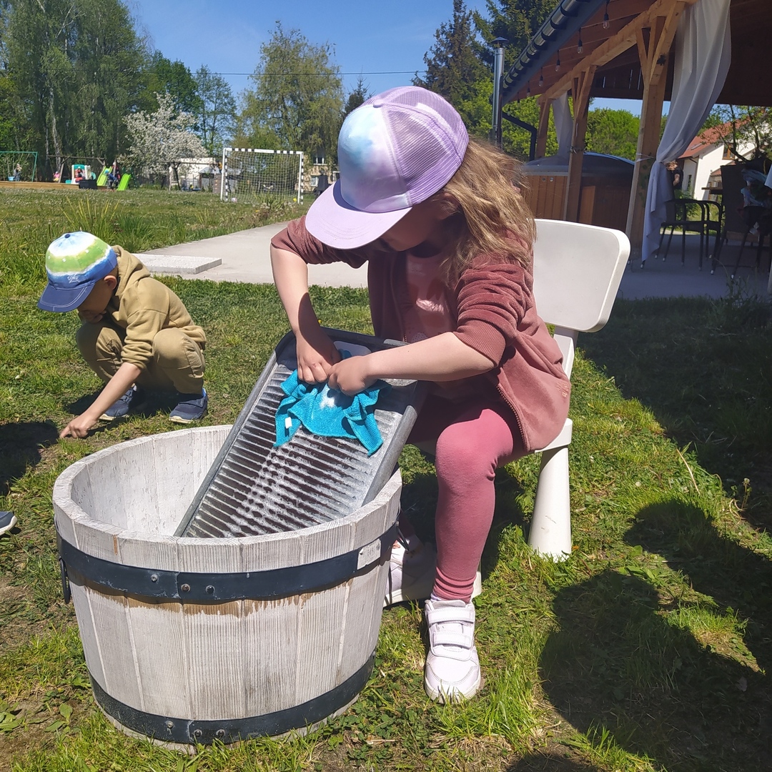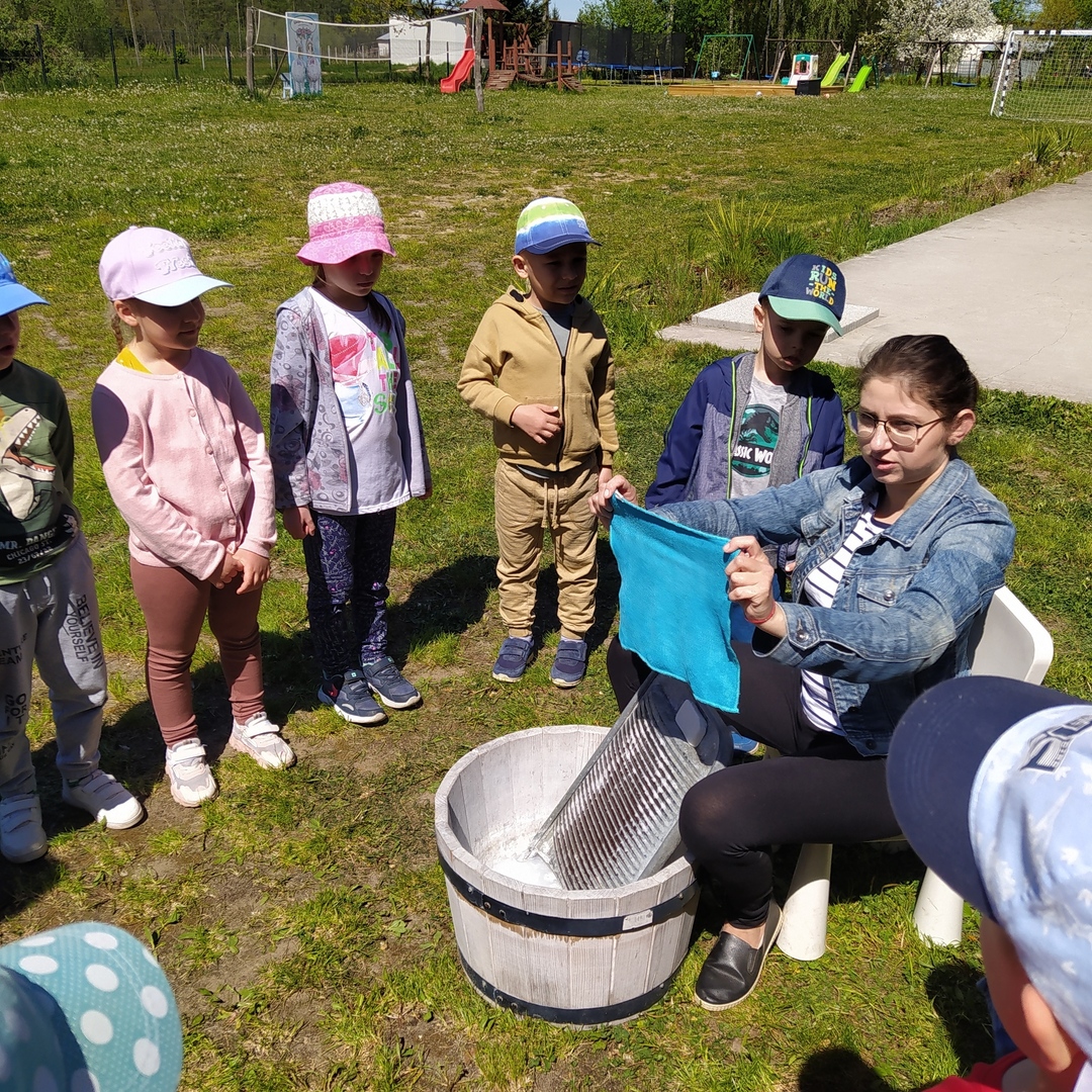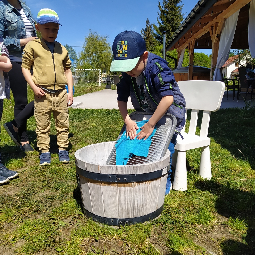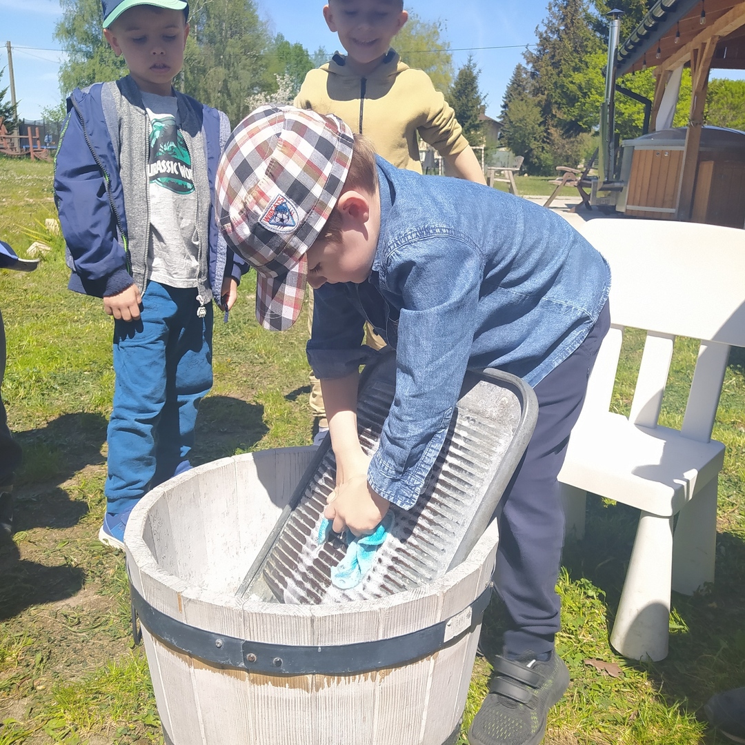 16 maja grupy "Gumisie" i "Muminki" wyjechały na wycieczkę do gospodarstwa agroturystycznego "Akacjowy zakątek" w Pustelniku. Dzieci uczestniczyły w wielu aktywnościach: alpakoterapia, przejażdżka wozem, pranie na tarze, dojenie krowy, strzelanie z łuku, odwiedziny w mini zoo, zajęcia plastyczne, ognisko z kiełbaskami, zabawy na placu zabaw. Pogoda nam sprzyjała, a ciekawe atrakcje wywołały uśmiechy na twarzach wszystkich dzieci.