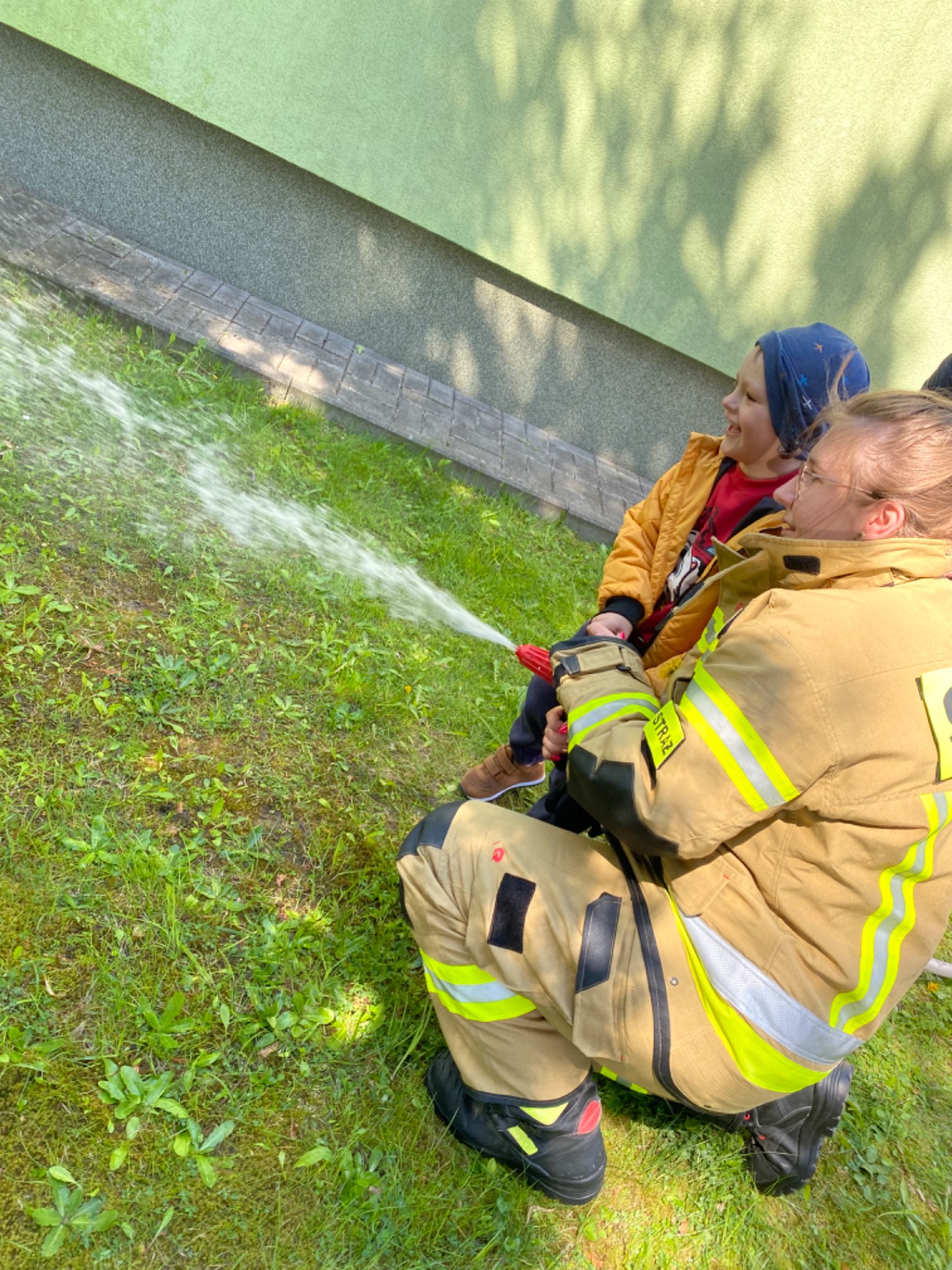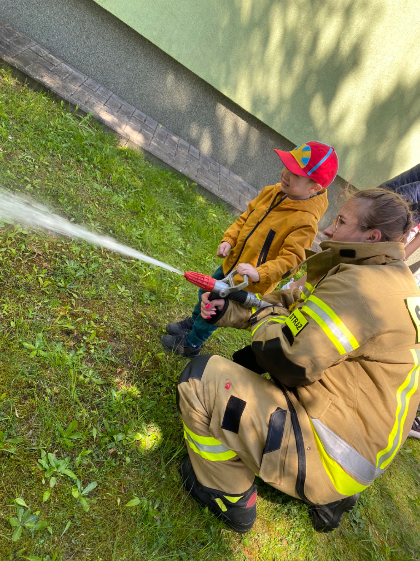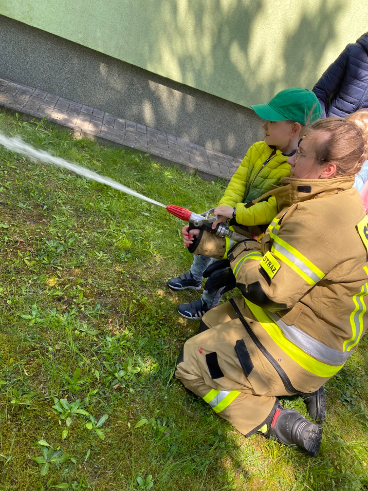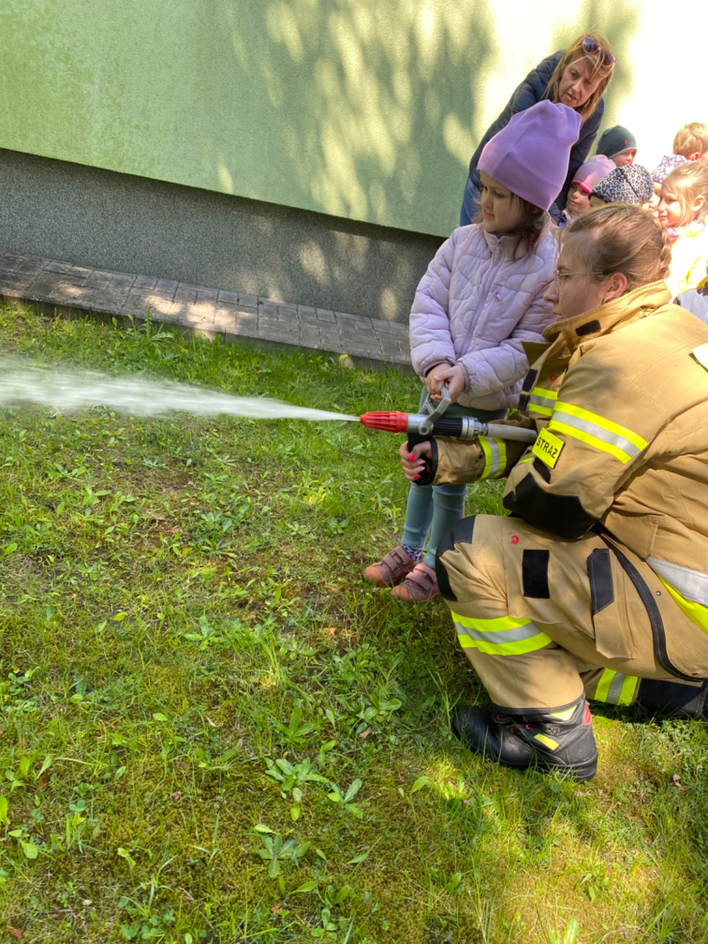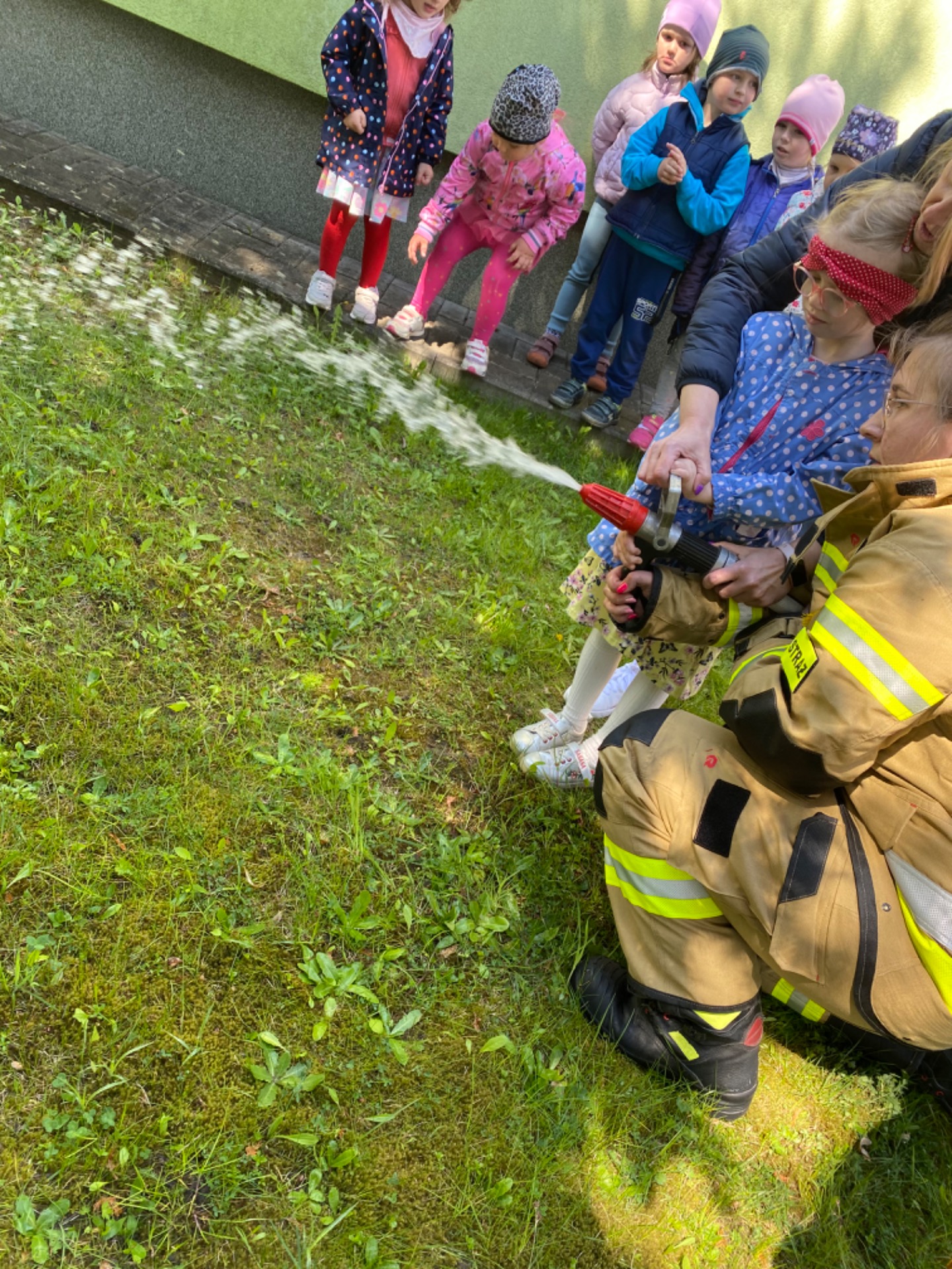 Smerfy, najmłodsze przedszkolaki, w ramach projektu realizowały moduł "Kicia Kocia poznaje strażaka". Przedsięwzięcie to zorganizowaliśmy z rozmachem zapraszając najprawdziwszych strażaków, którzy 9 maja zawitali do naszego przedszkola czerwonym wozem strażackim! Wizyta OSP ze Starej Niedziałki była ogromną atrakcją dla wszystkich dzieci z przedszkola. W trakcie spotkania dzieci dowiedziały się jak wygląda strój strażaka, mogły z bliska zobaczyć wyposażenie wozu strażackiego i spróbować swoich sił w przewracaniu pachołków wodą lejącą się ze strażackiego węża. Przedszkolaki zdobyły również wiedzę o tym, do jakich zdarzeń są wzywani strażacy oraz w jaki sposób dokonuje się wezwania. Spotkanie ze strażakami bardzo uatrakcyjniło nasze przedszkolne zajęcia i wywołało wiele pozytywnych emocji. Bardzo dziękujemy Druhom i Druhnom z OSP Stara Niedziałka za poświęcony nam czas oraz przewodniczącej oddziałowej Rady Rodziców p. Monice za pomoc w organizacji tego spotkania.
