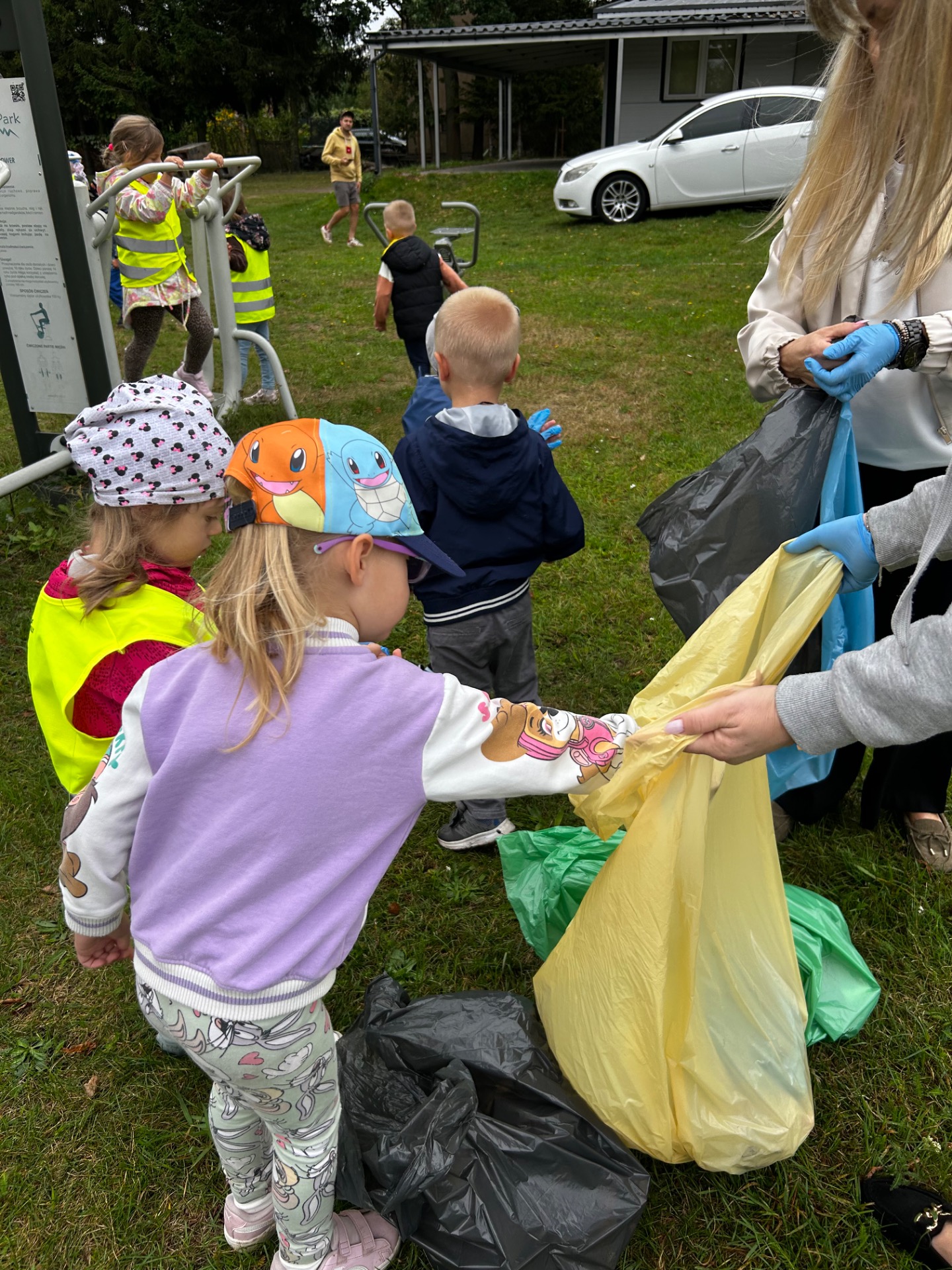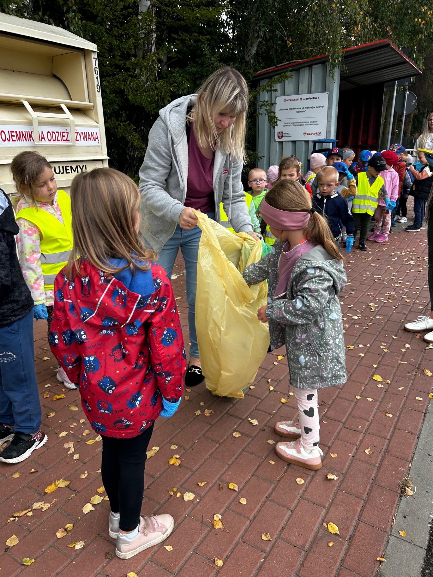 Akcja "Sprzątanie Świata" w przedszkolu to coroczne przedsięwzięcie, które ma na celu uwrażliwienie dzieci na potrzebę ochrony środowiska poprzez wspólne porządkowanie terenów wokół placówki, edukację o odpadach i promowanie ekologicznych nawyków. 19 września dzieci, wyposażone w rękawiczki i worki, zbierały śmieci, ucząc się jednocześnie, jak ważne jest dbanie o naszą planetę.