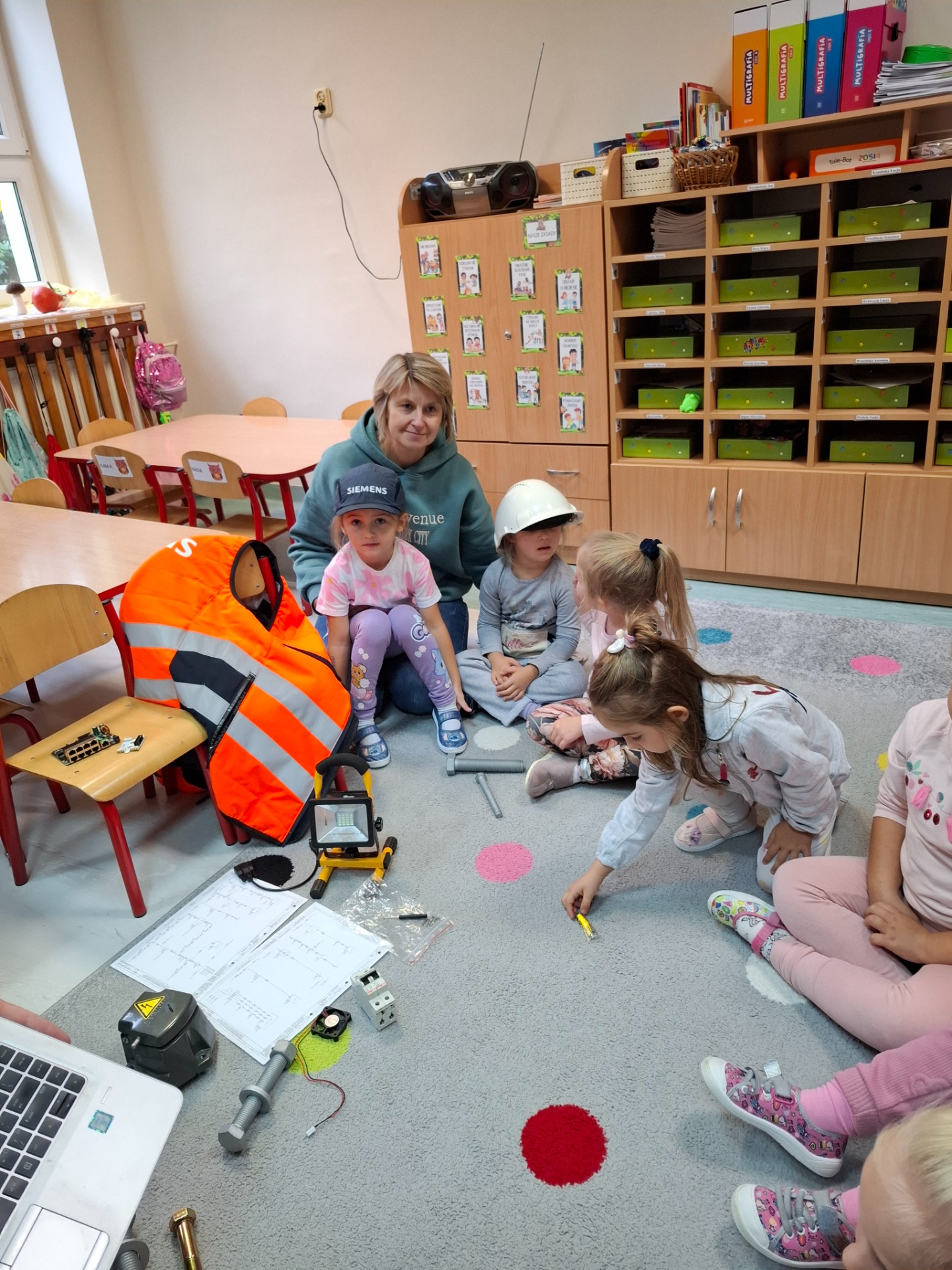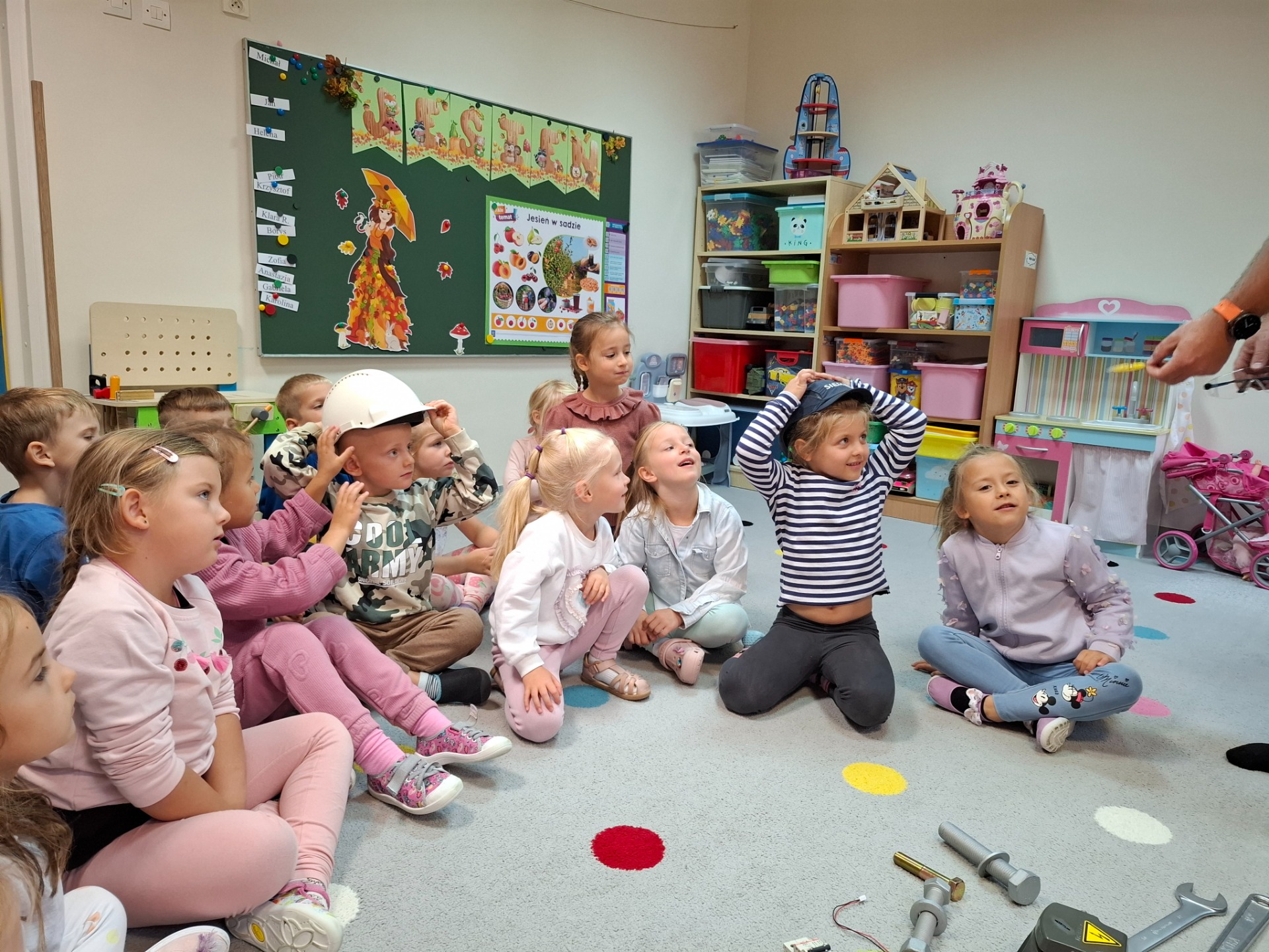 W Sówkach odbyło się spotkanie z Panem Piotrem Brzezińskim (tatą Antosi) oraz jego współpracownikiem Zielonym Groszkiem. Pan Piotr jest inżynierem mechatroniki o specjalności kolejnictwo i opowiedział dzieciom o swojej pracy, o tym, jak działają pociągi oraz jakie maszyny i urządzenia pomagają w ich bezpiecznym poruszaniu się. Przedszkolaki mogły zobaczyć ciekawe zdjęcia związane z koleją, a także zadać wiele pytań o zawód inżyniera.
