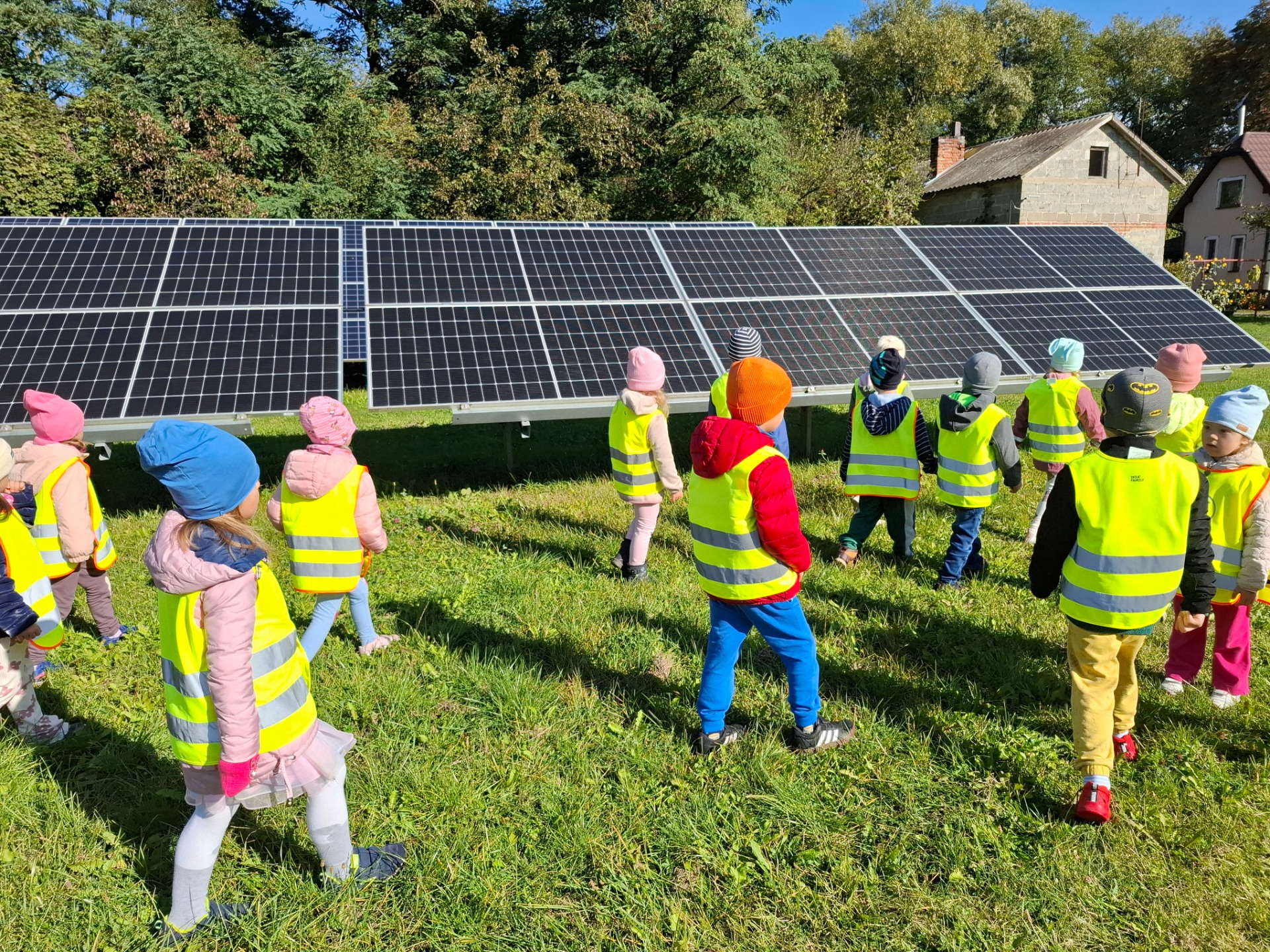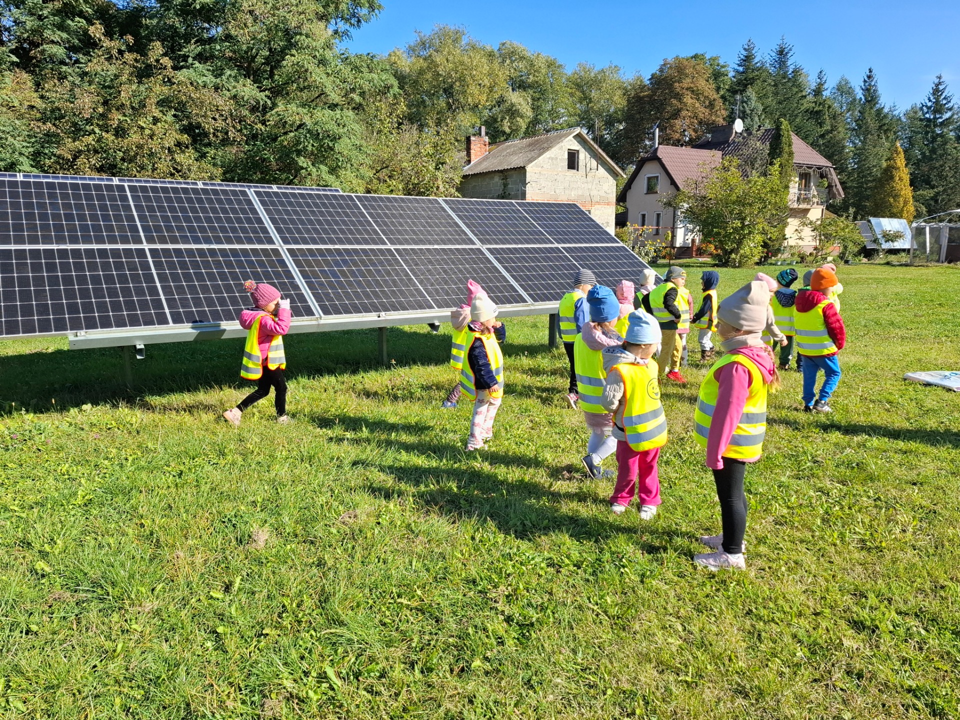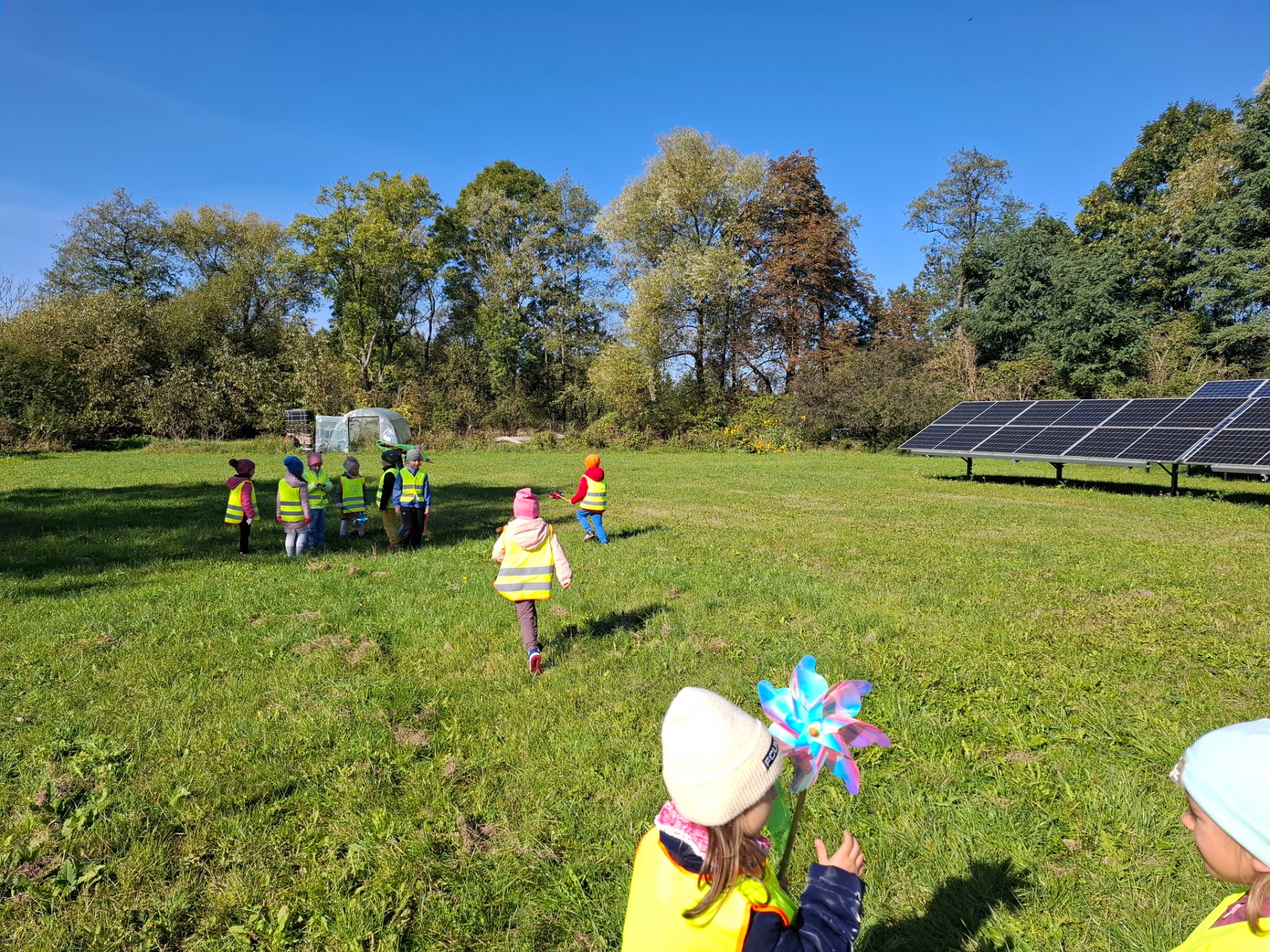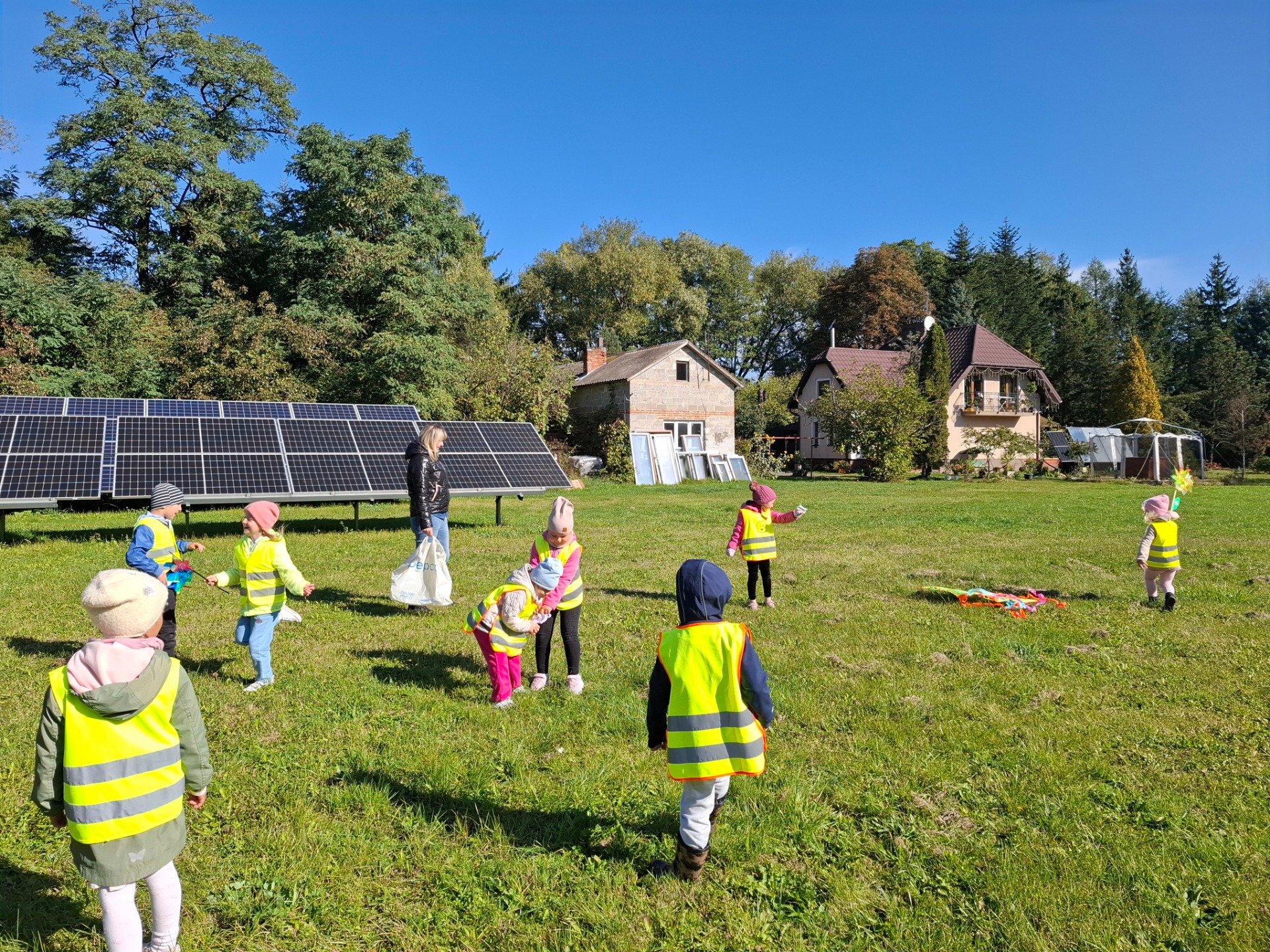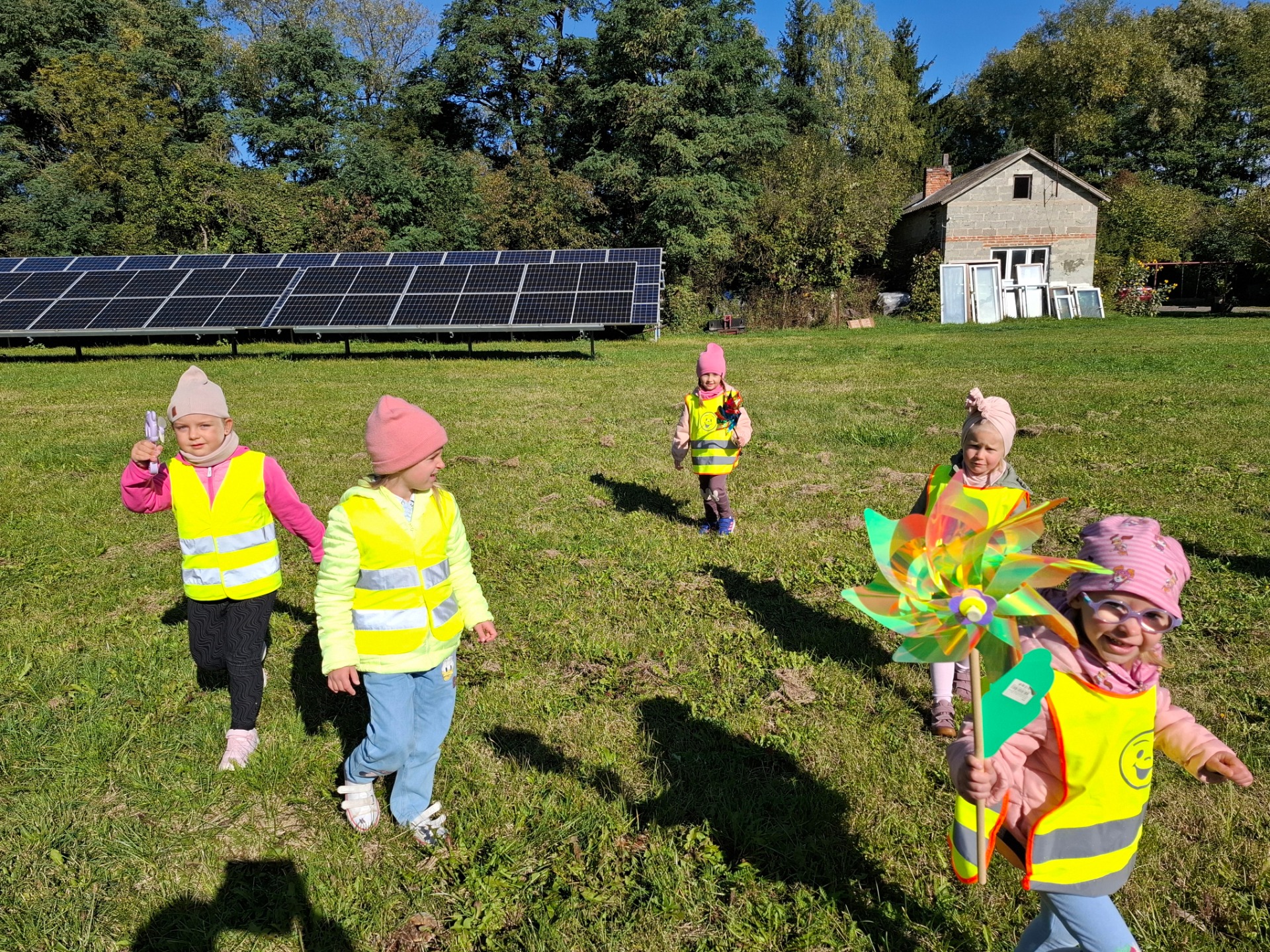 Po zajęciach dzieci spacerowały po najbliższej okolicy przedszkola i próbowały wyszukać i wskazać elementy OZE.