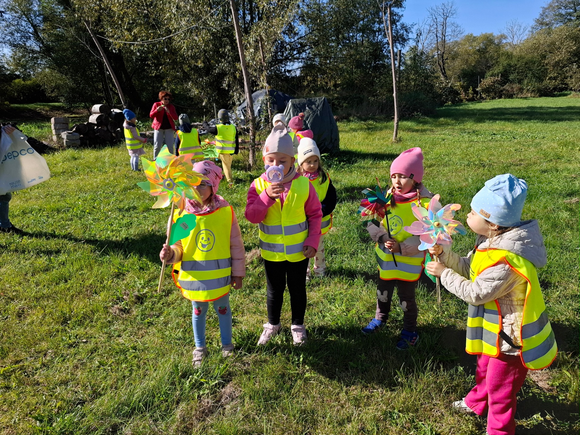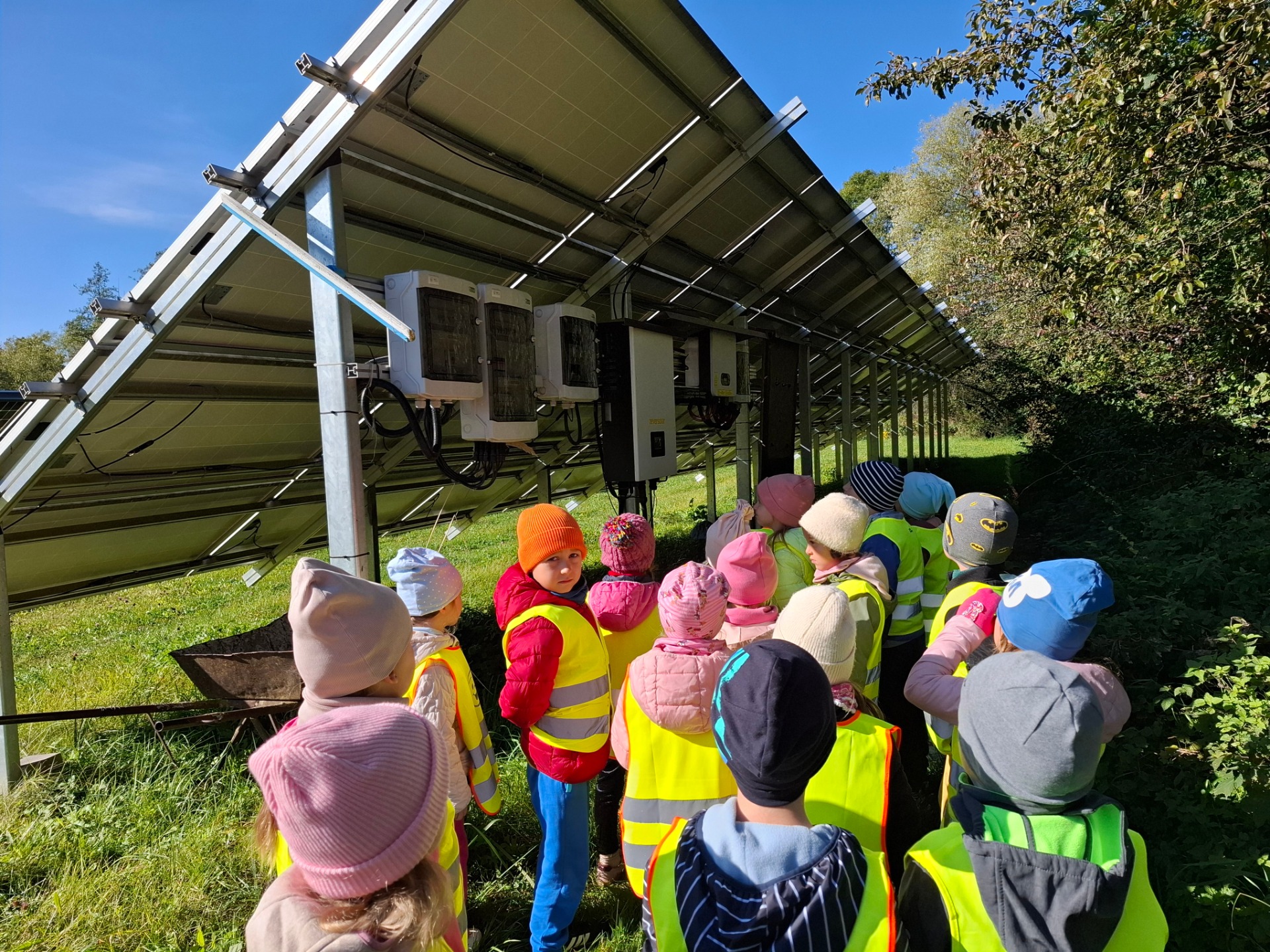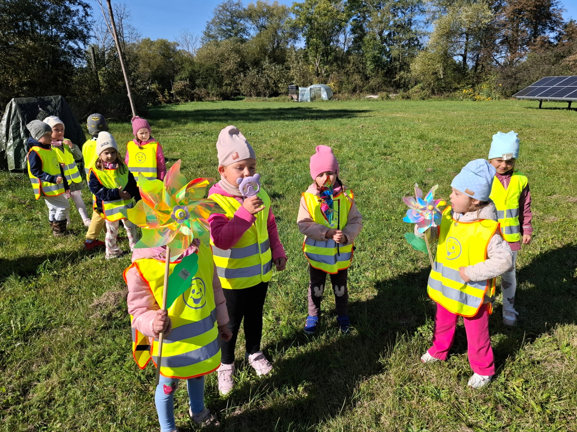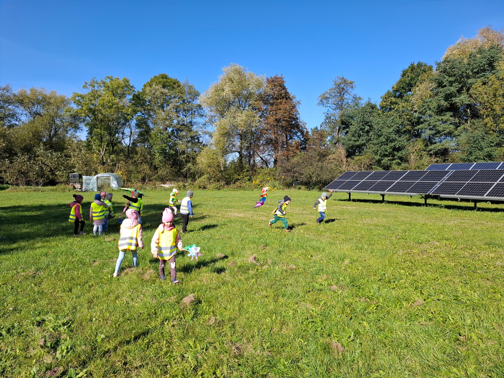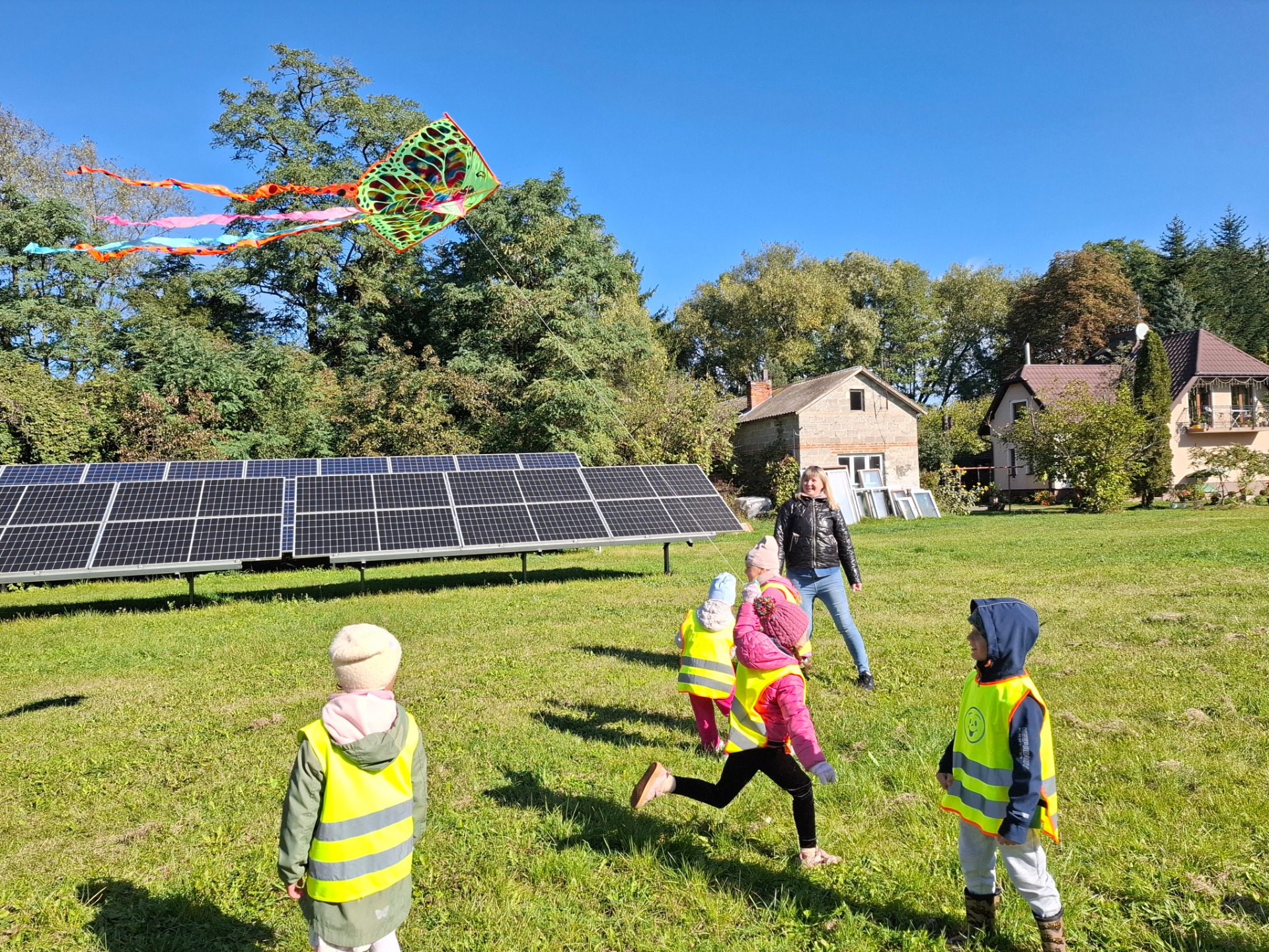 Po zajęciach dzieci spacerowały po najbliższej okolicy przedszkola i próbowały wyszukać i wskazać elementy OZE.
