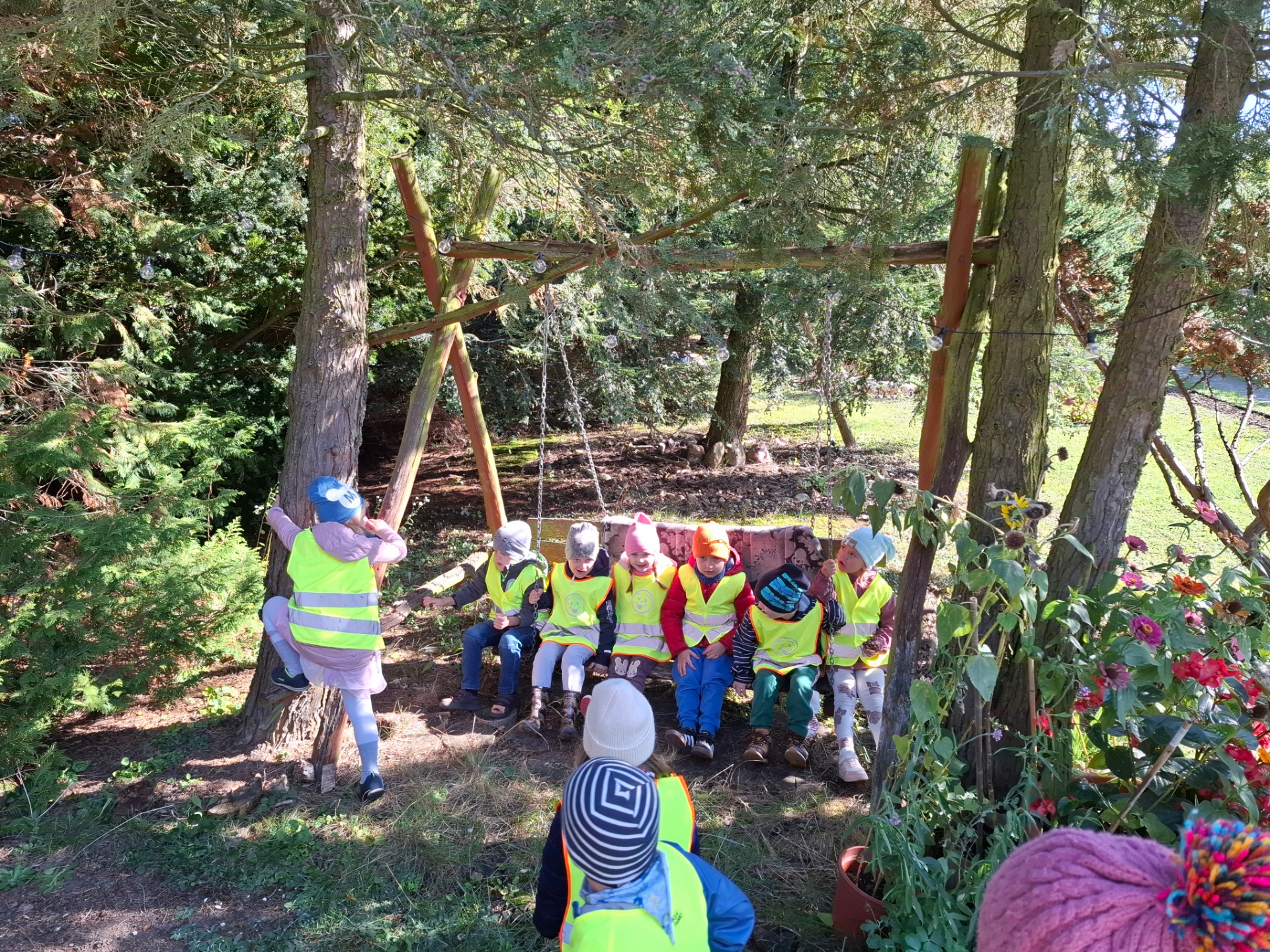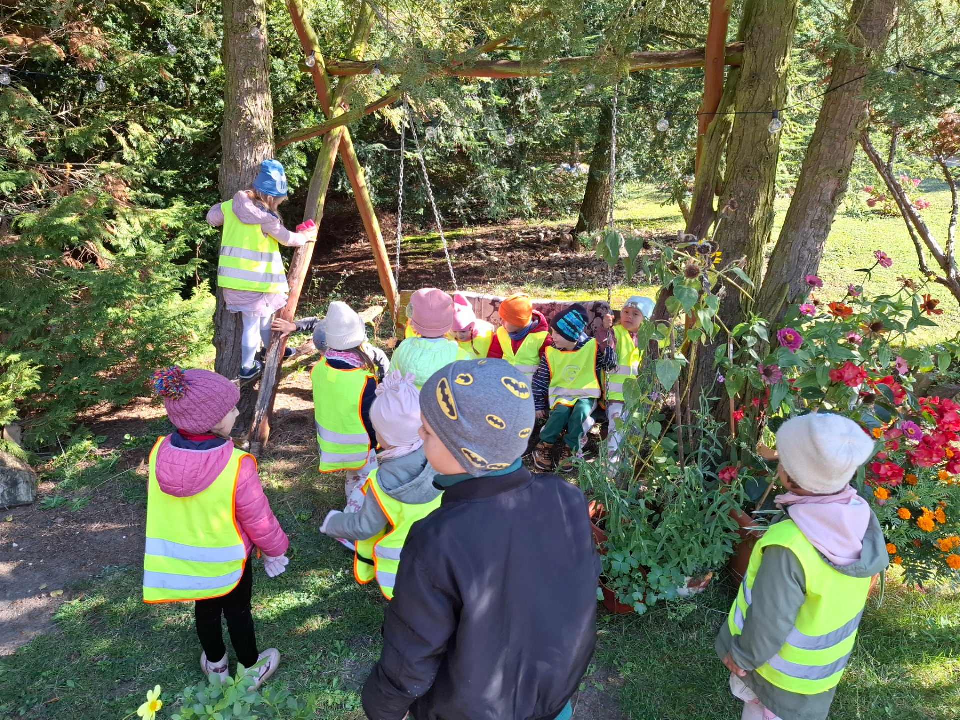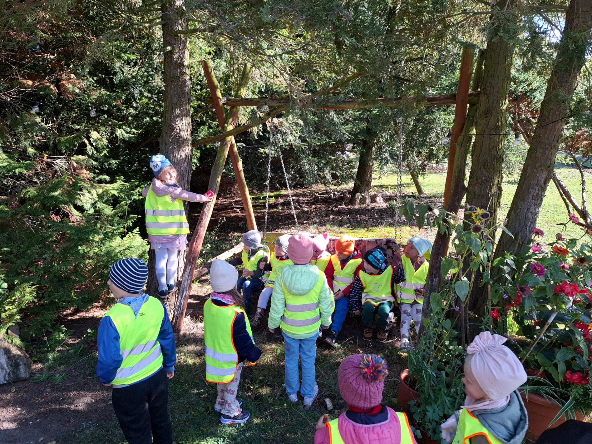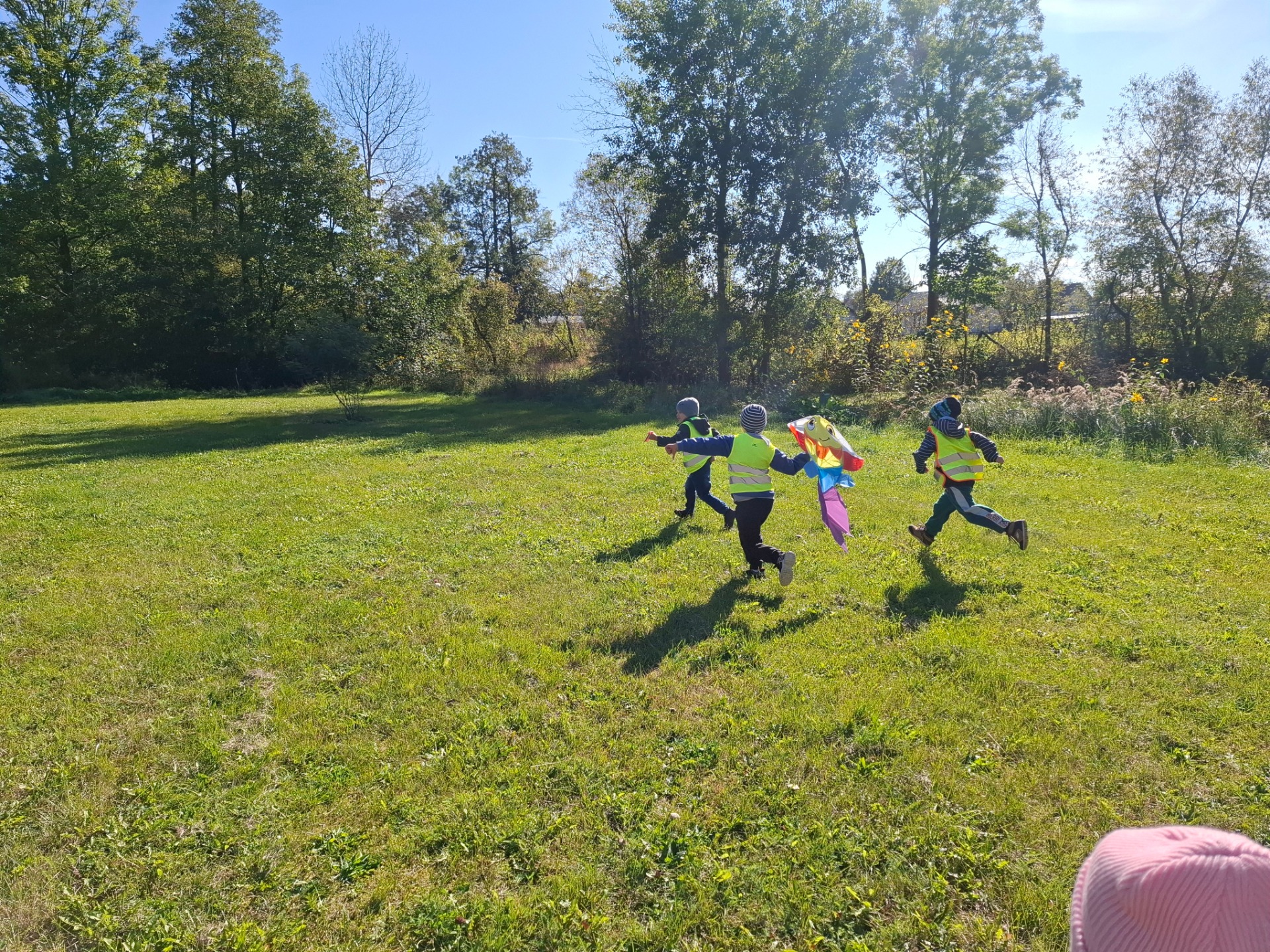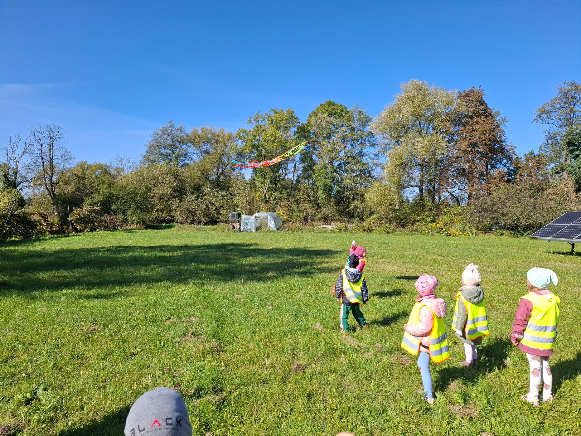 Po zajęciach dzieci spacerowały po najbliższej okolicy przedszkola i próbowały wyszukać i wskazać elementy OZE.
