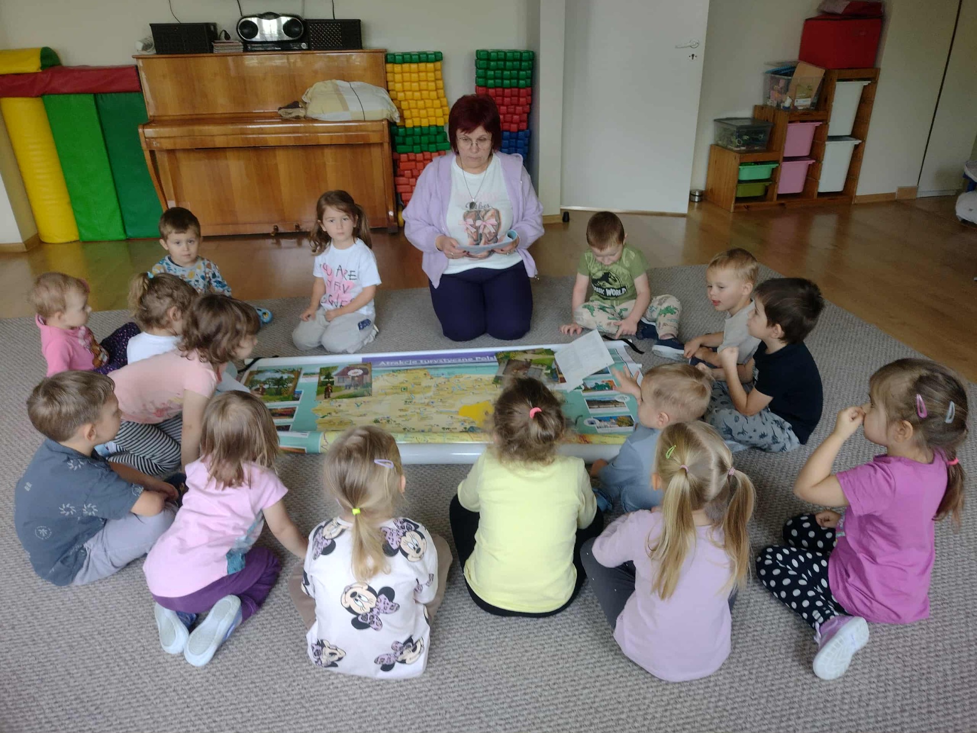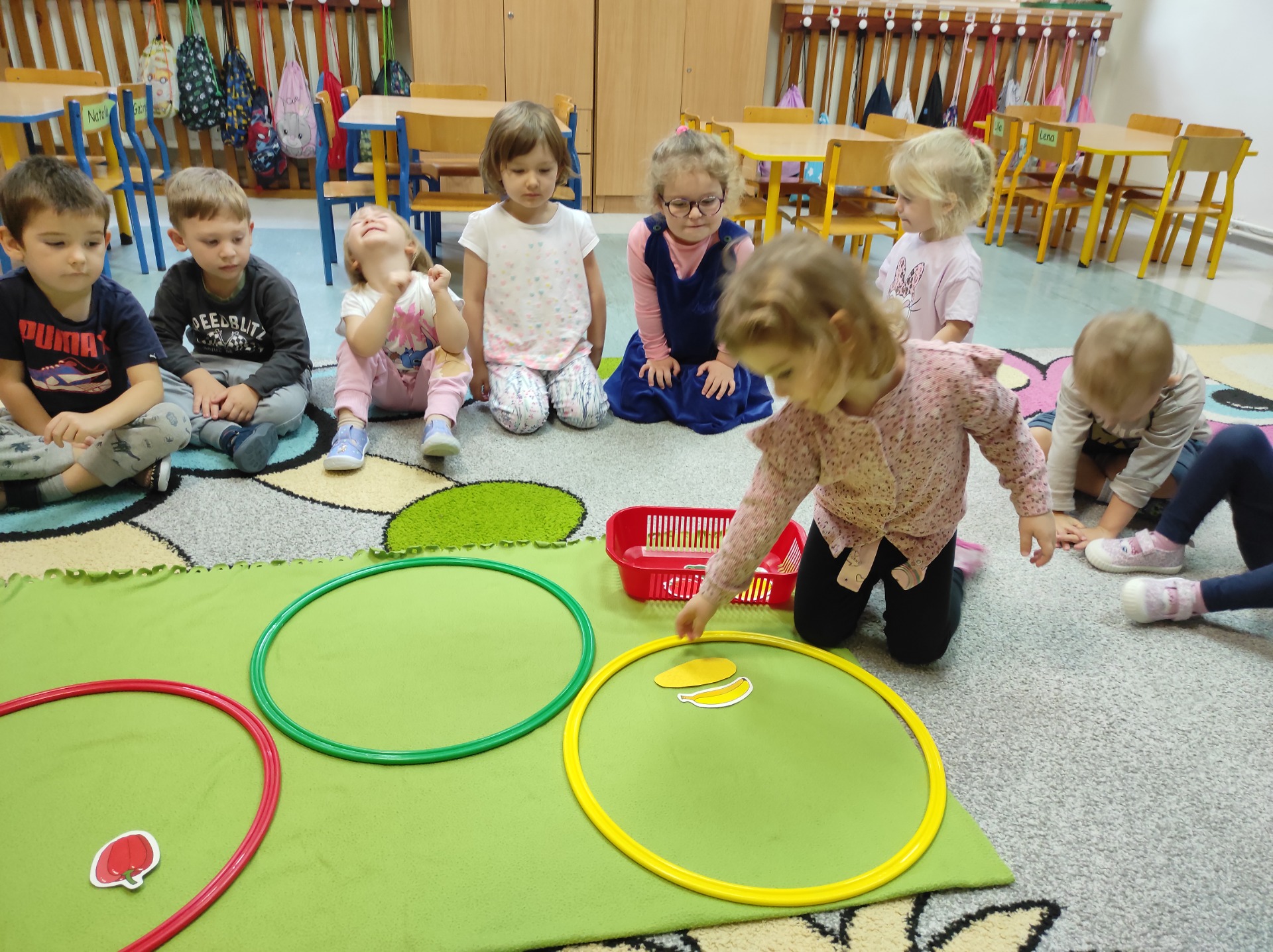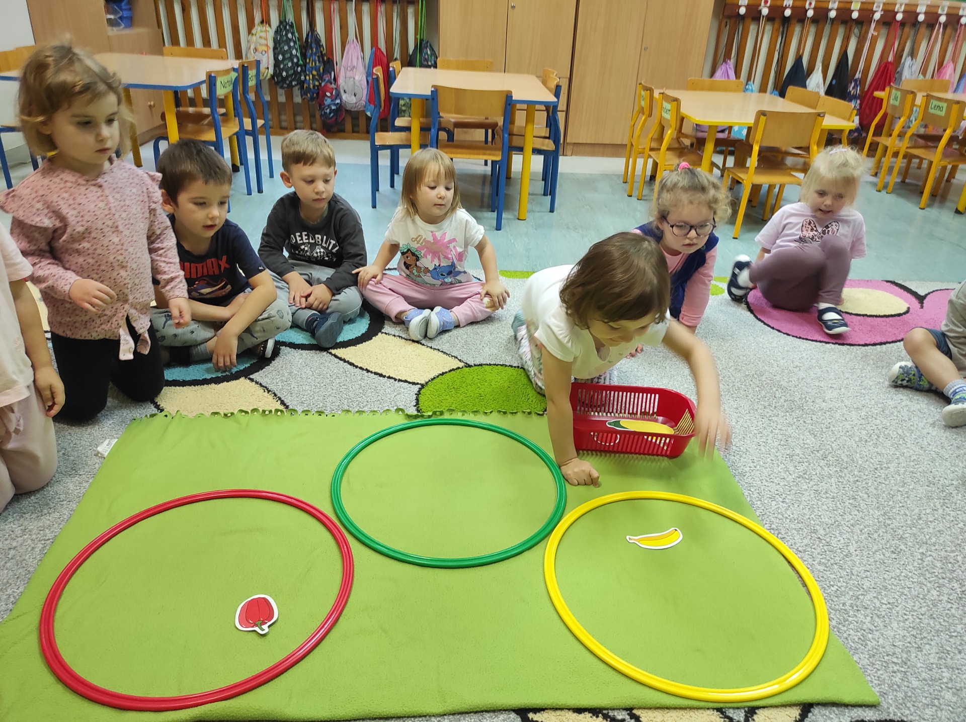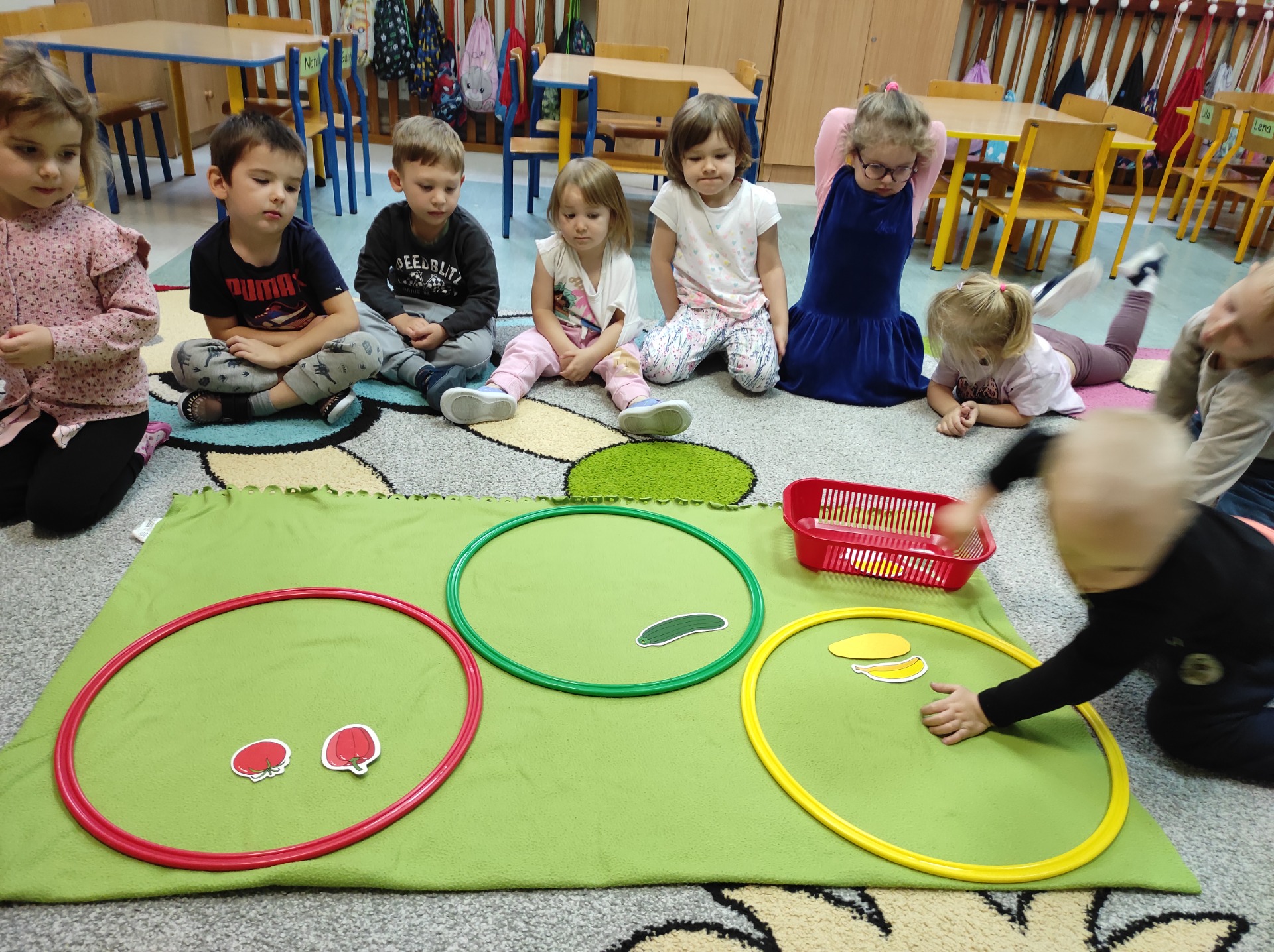 Październik upłynął Żabkom na aktywnościach związanych z tematyką jesienną. Przedszkolaki określały jesienne kolory, poznawały dary jesieni, wykonywały prace plastyczne z ich użyciem. W czasie zabaw matematycznych poznały figurę geometryczną - koło, ćwiczyły umiejętność przeliczania w zakresie trzech elementów. Gdy pogoda nie sprzyjała zabawom na dworze, Żabki rozwijały sprawność fizyczną w czasie zajęć gimnastycznych w sali. W ramach edukacji zdrowotnej obchodziliśmy "Dzień mycia rąk", podczas którego dzieci wykonały eksperyment pokazujący, jak roznoszą się zarazki oraz uczyły się prawidłowej techniki mycia rąk. W październiku odbyły się także pierwsze zajęcia z projektu patriotycznego pt. "Podróż przez Polskę".