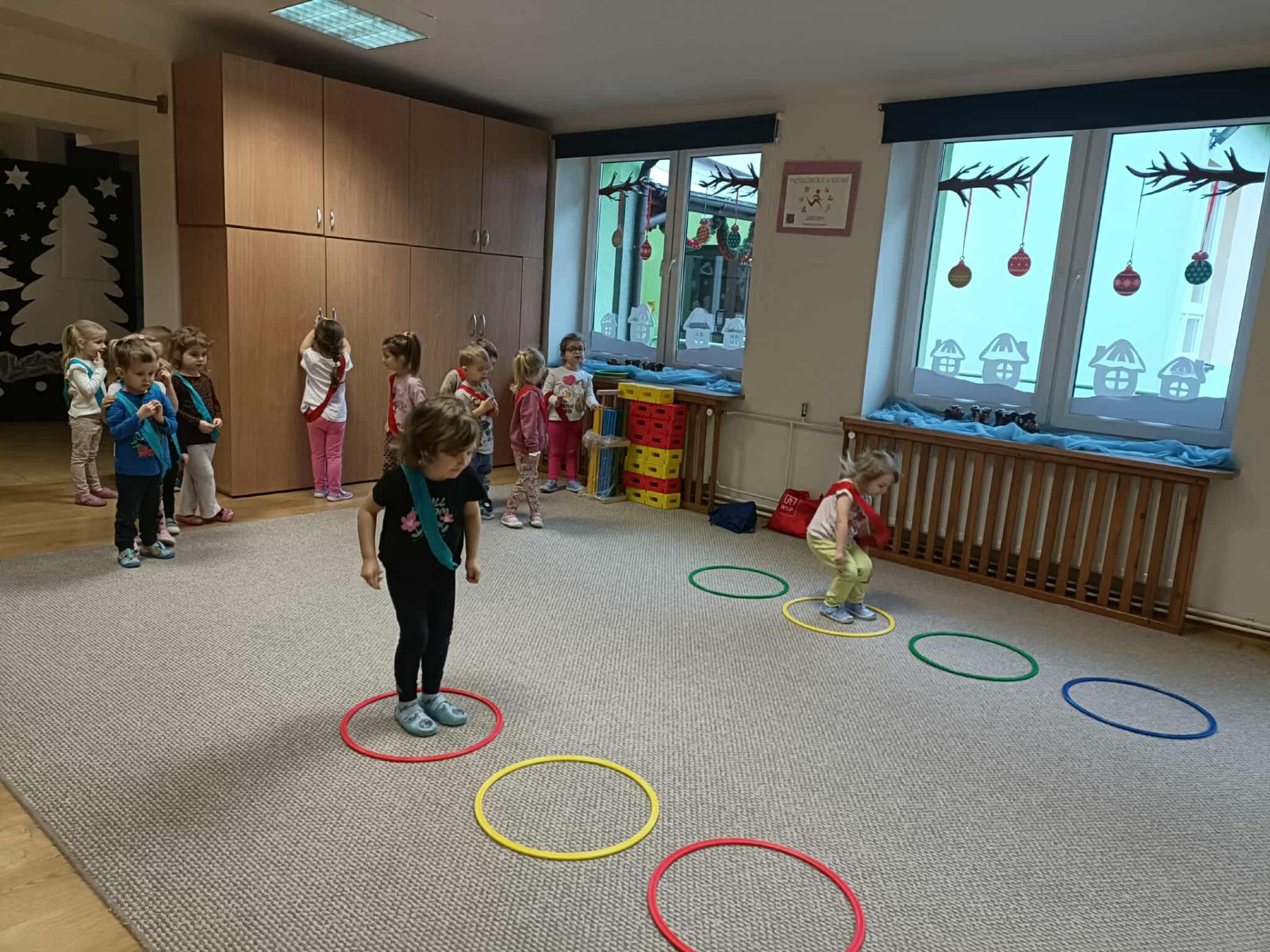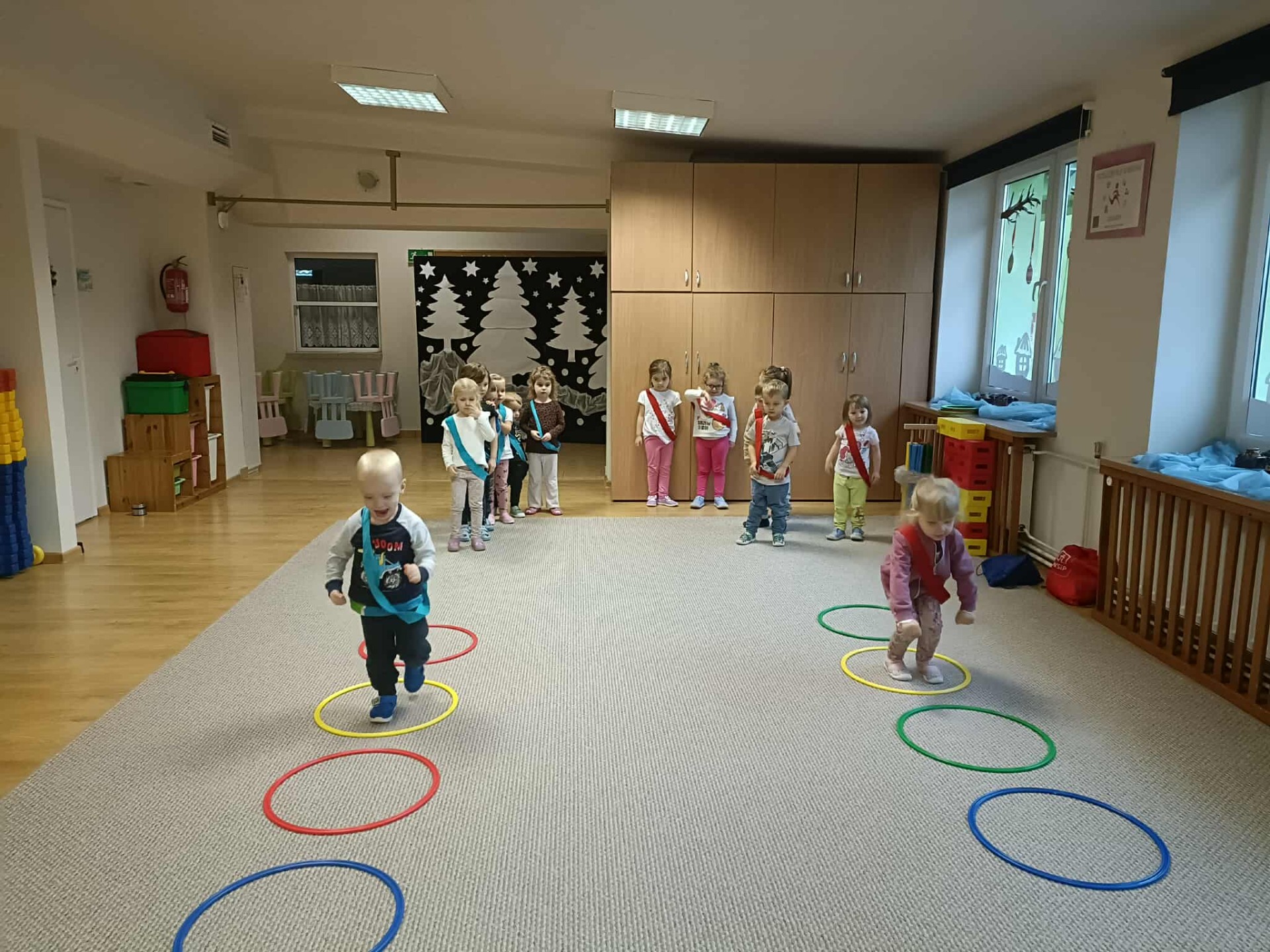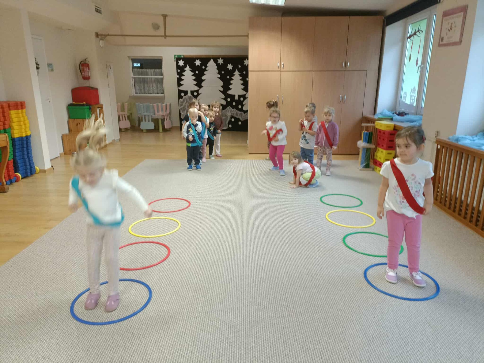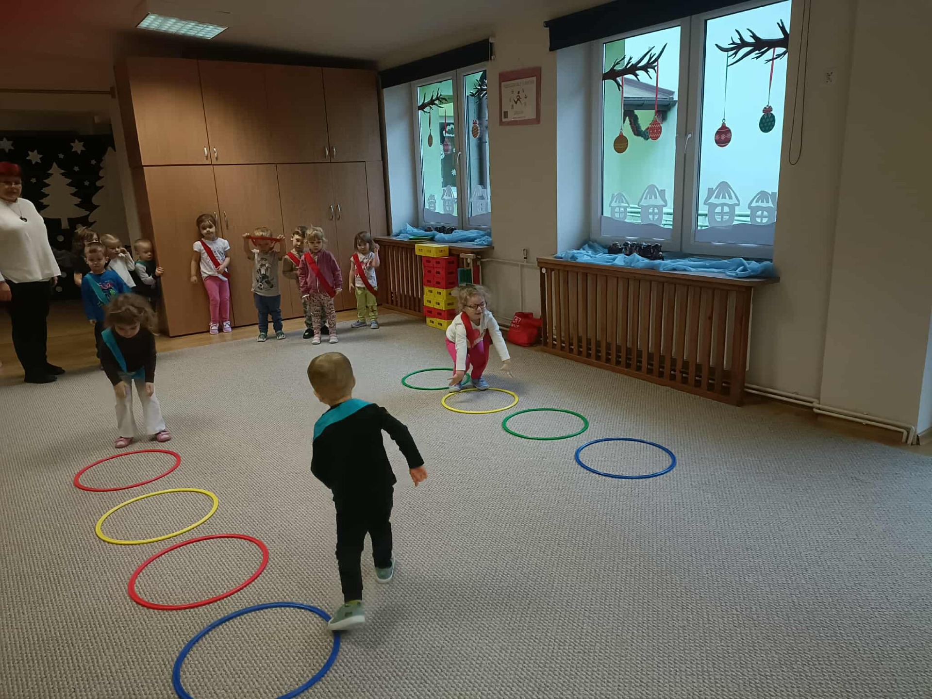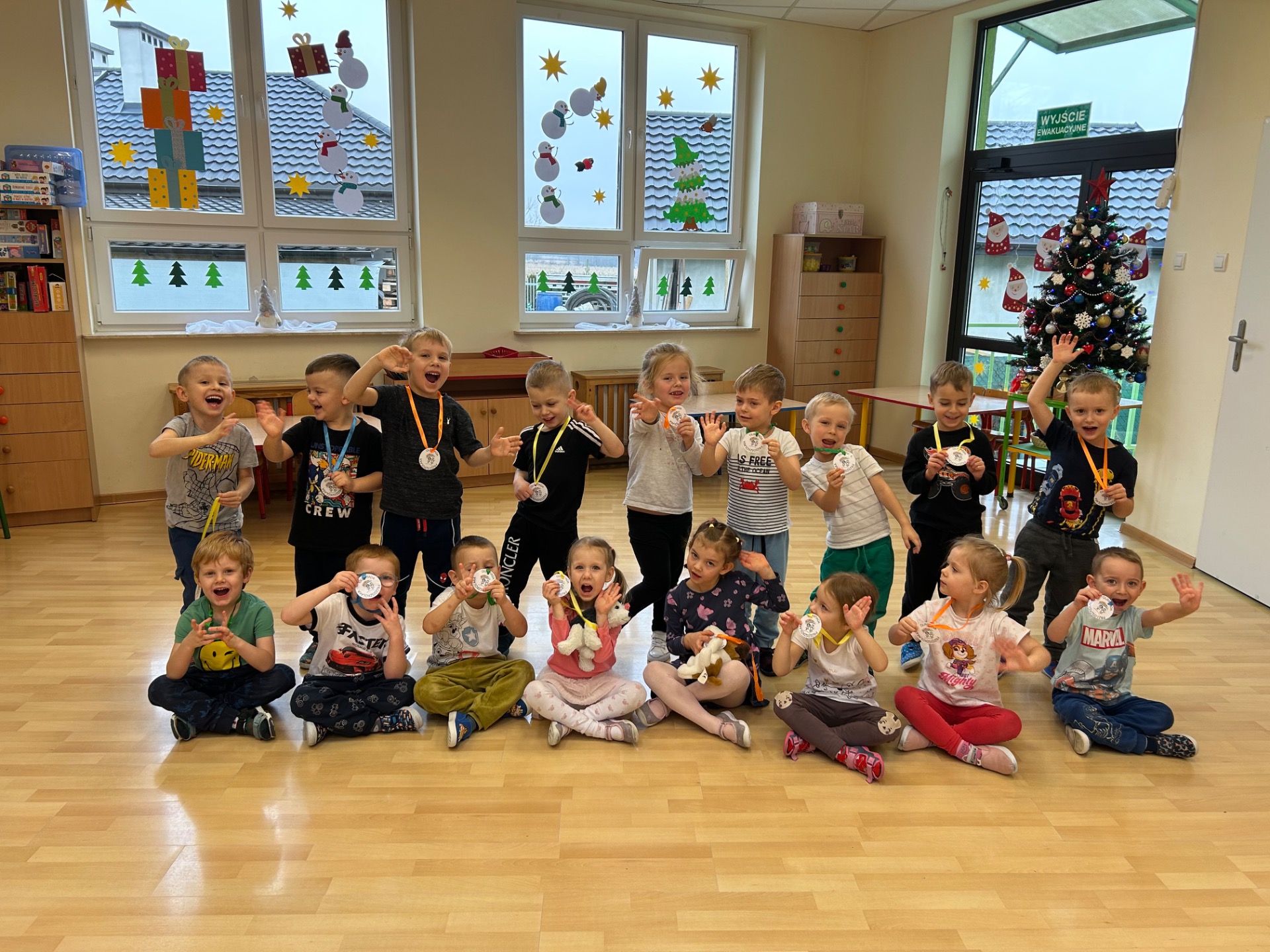 W grudniu w naszym przedszkolu odbył się maraton sportowy. Dzieci ze wszystkich grup miały możliwość spróbować swoich sił w wyścigach na wesoło, w skakaniu, w czworakowaniu, w rzutach do celu, a także w zabawach wymagających dobrej równowagi lub wspinania się. Przedszkolaki doskonaliły umiejętność współpracy w jednej drużynie, dopingowały się wzajemnie, poznały znaczenie słów: wygrany, przegrany, remis, rewanż. Nauczyły się, że od wygranej ważniejsza jest dobra zabawa. Za udział w maratonie otrzymały pamiątkowy dyplom (każda grupa) oraz medale. Dzieciom bardzo przypadła do gustu taka forma aktywności fizycznej i dbałości o zdrowie. Zapraszamy do obejrzenia galerii.