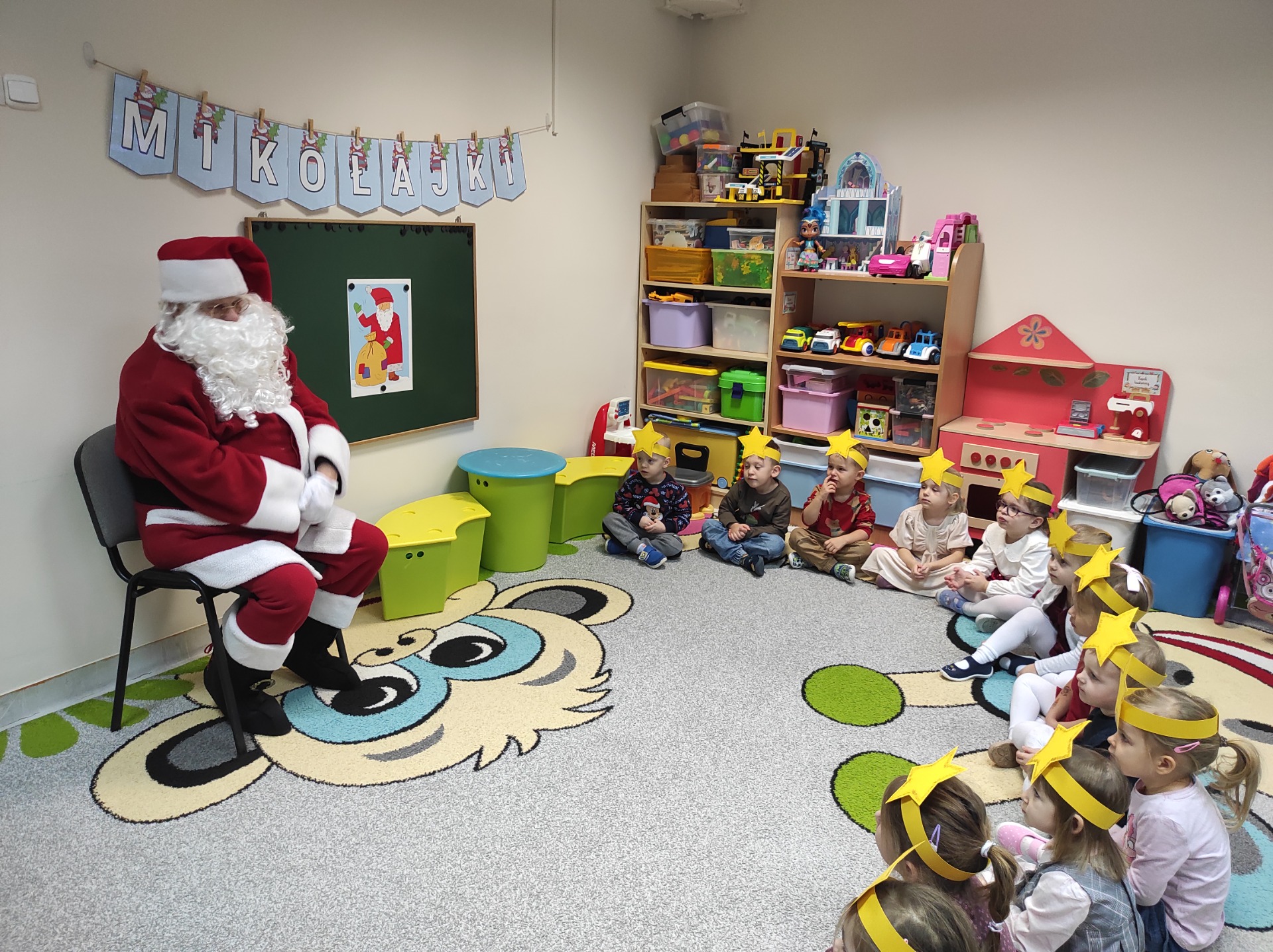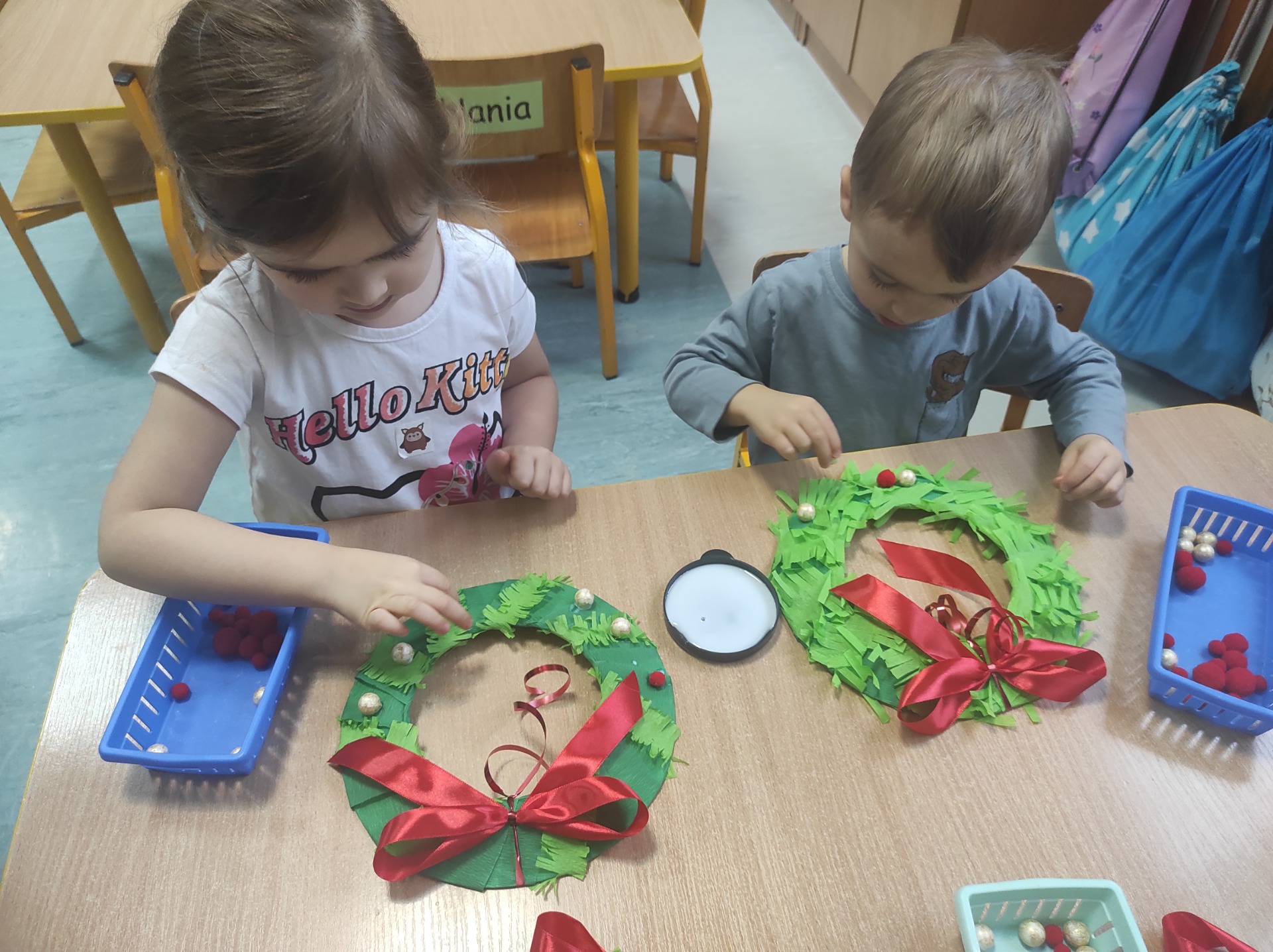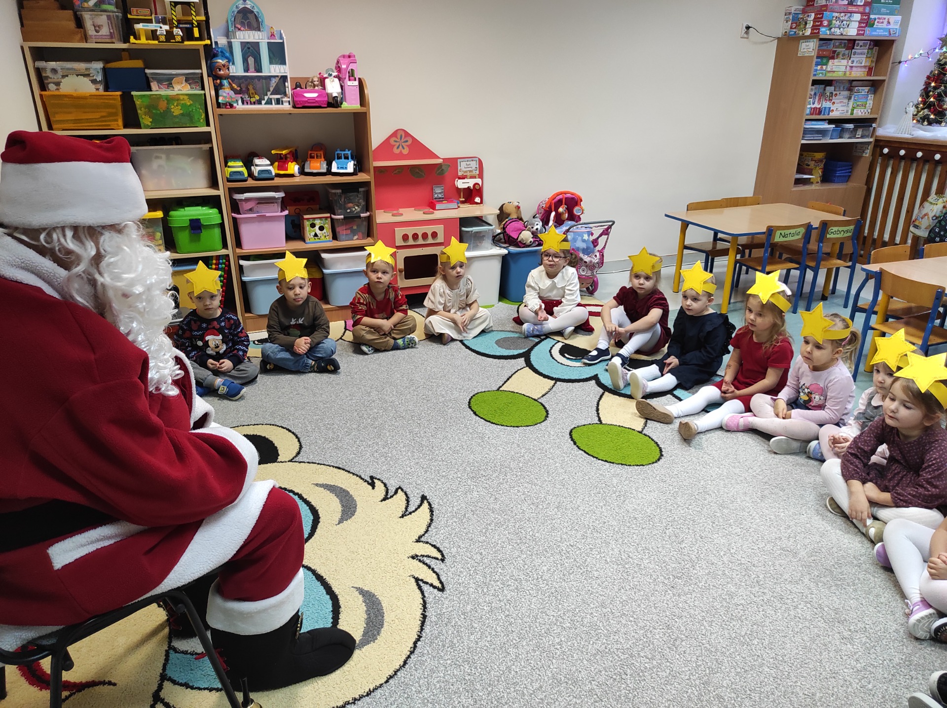 Tematyka Bożego Narodzenia i tradycje związane z tymi świętami to zagadnienia, które dzieci uwielbiają od najmłodszych lat. W grupie Żabek świąteczny nastrój panował już od początku grudnia. Dzieci z niecierpliwością wyczekiwały spotkania ze Świętym Mikołajem, któremu zaprezentowały się w utworze muzyczno-ruchowym. Gość obdarował nasze przedszkolaki prezentami, co było dla nich ogromnym przeżyciem. Natomiast podczas spotkania świątecznego z rodzicami to nasze Żabki stały się darczyńcami. Dzięki temu mogły przekonać się, że dużo radości można czerpać także obdarowując kogoś prezentem, a jego tworzenie jest świetną zabawą. Grudniowy czas był pełen wesołych zabaw, ciepłej atmosfery i świątecznej magii.