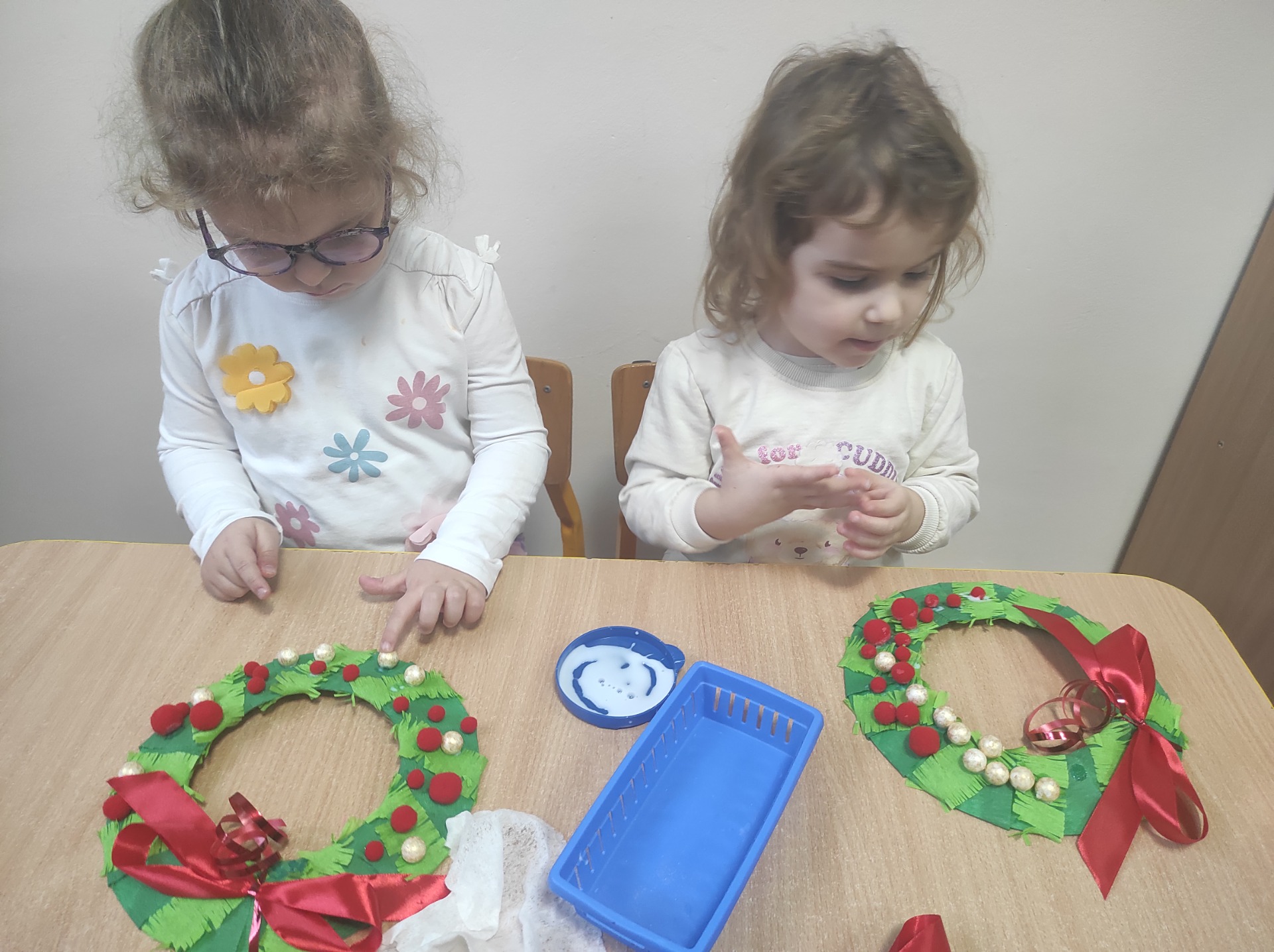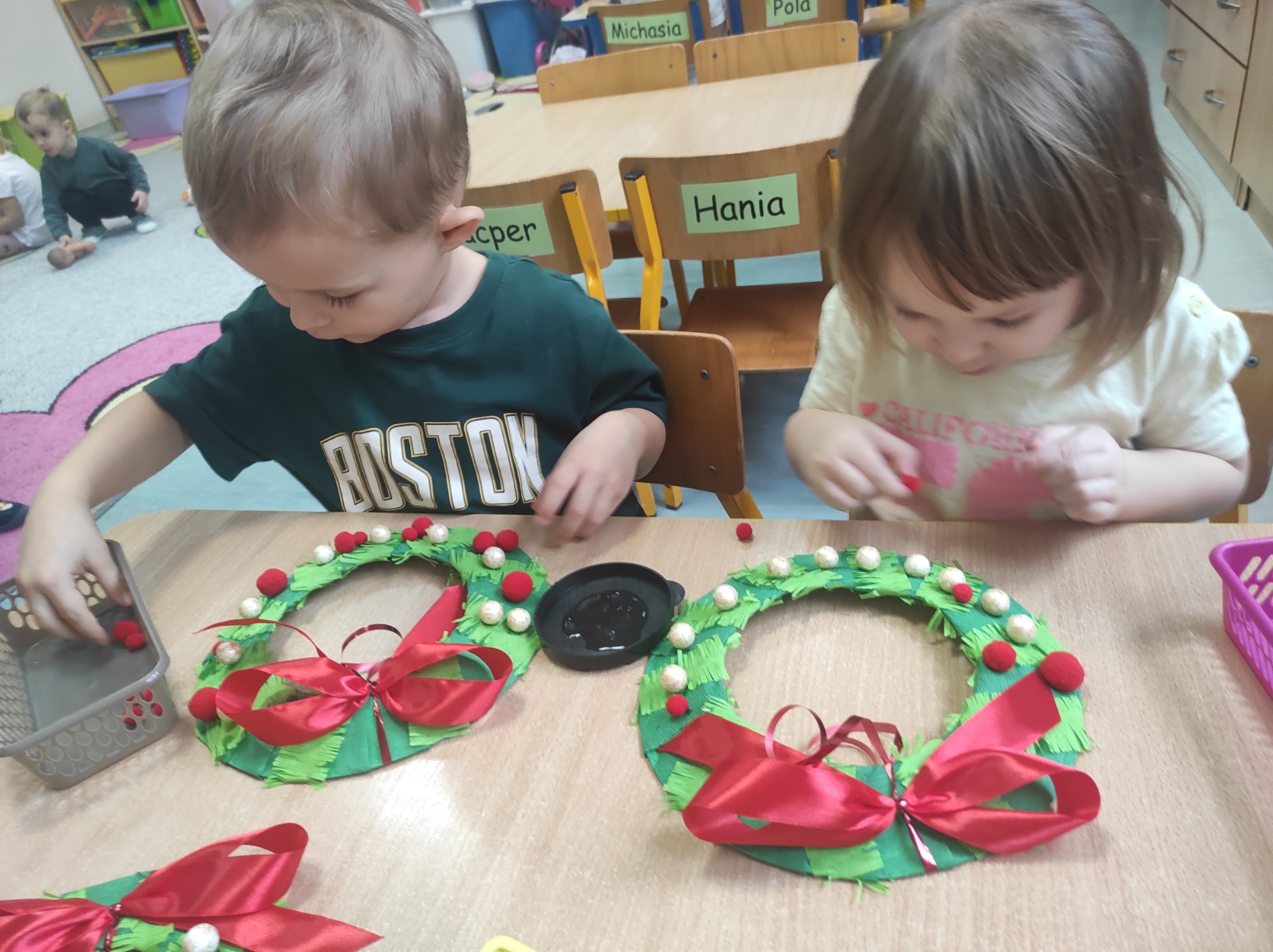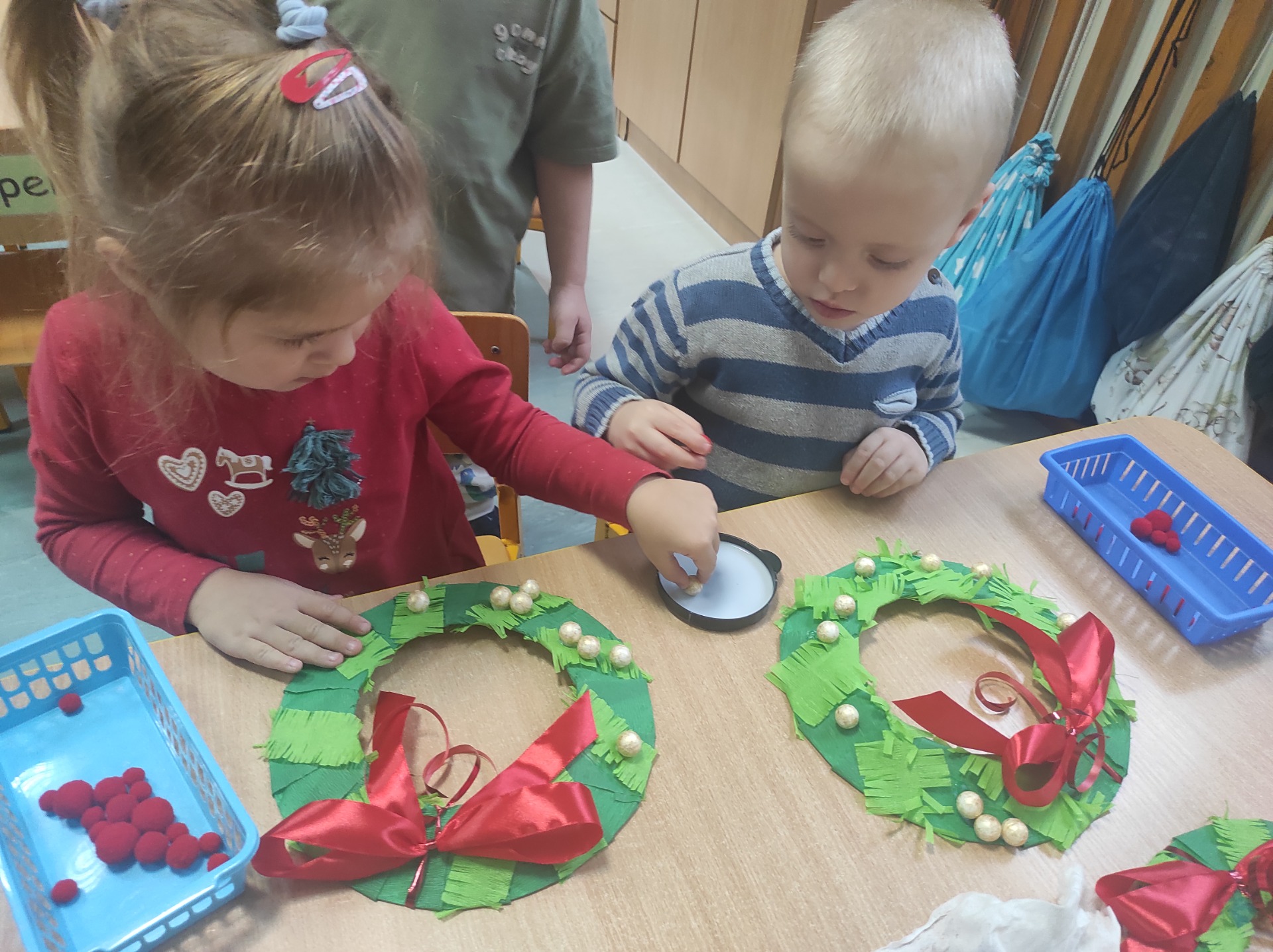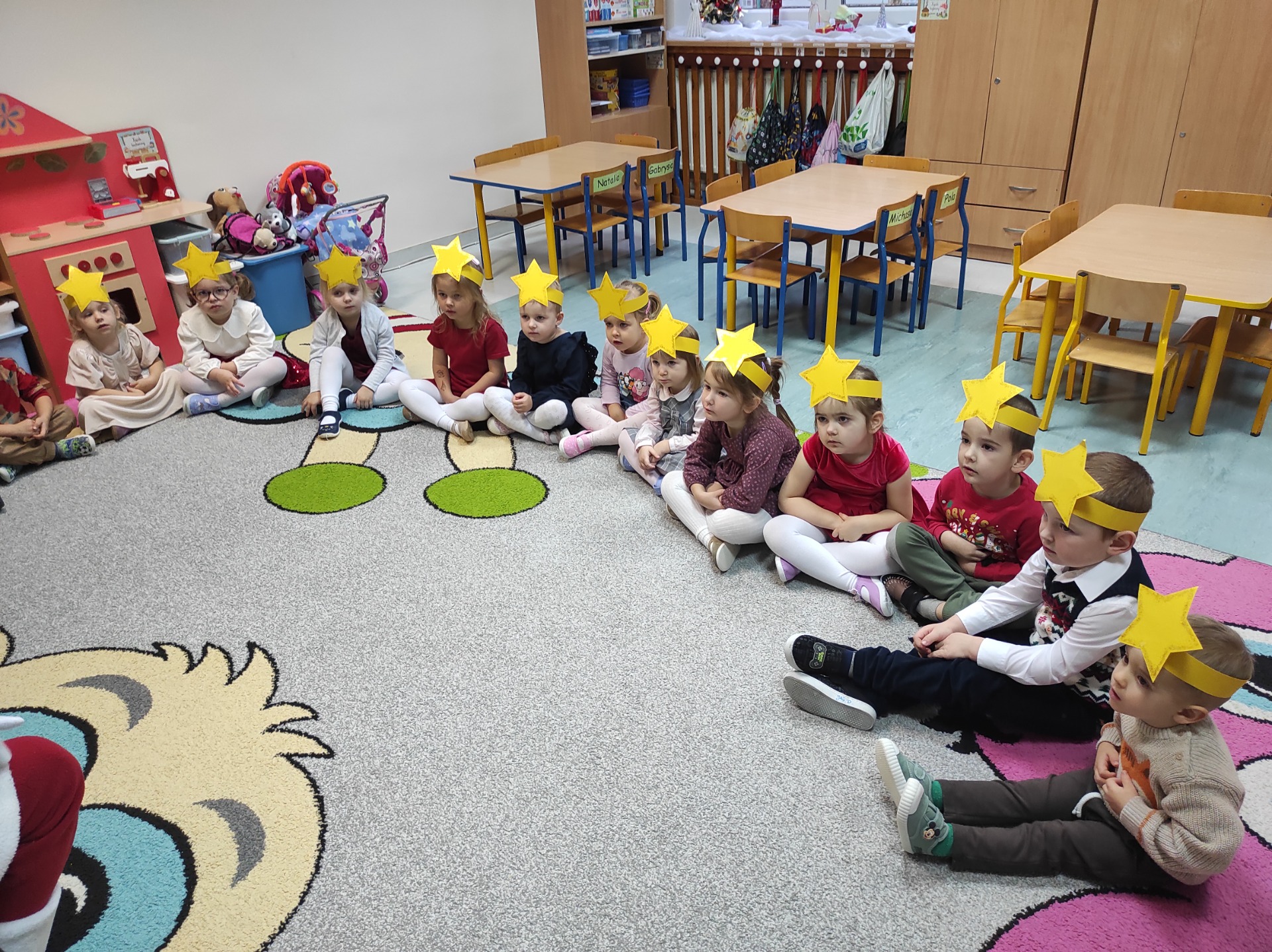 Tematyka Bożego Narodzenia i tradycje związane z tymi świętami to zagadnienia, które dzieci uwielbiają od najmłodszych lat. W grupie Żabek świąteczny nastrój panował już od początku grudnia. Dzieci z niecierpliwością wyczekiwały spotkania ze Świętym Mikołajem, któremu zaprezentowały się w utworze muzyczno-ruchowym. Gość obdarował nasze przedszkolaki prezentami, co było dla nich ogromnym przeżyciem. Natomiast podczas spotkania świątecznego z rodzicami to nasze Żabki stały się darczyńcami. Dzięki temu mogły przekonać się, że dużo radości można czerpać także obdarowując kogoś prezentem, a jego tworzenie jest świetną zabawą. Grudniowy czas był pełen wesołych zabaw, ciepłej atmosfery i świątecznej magii.